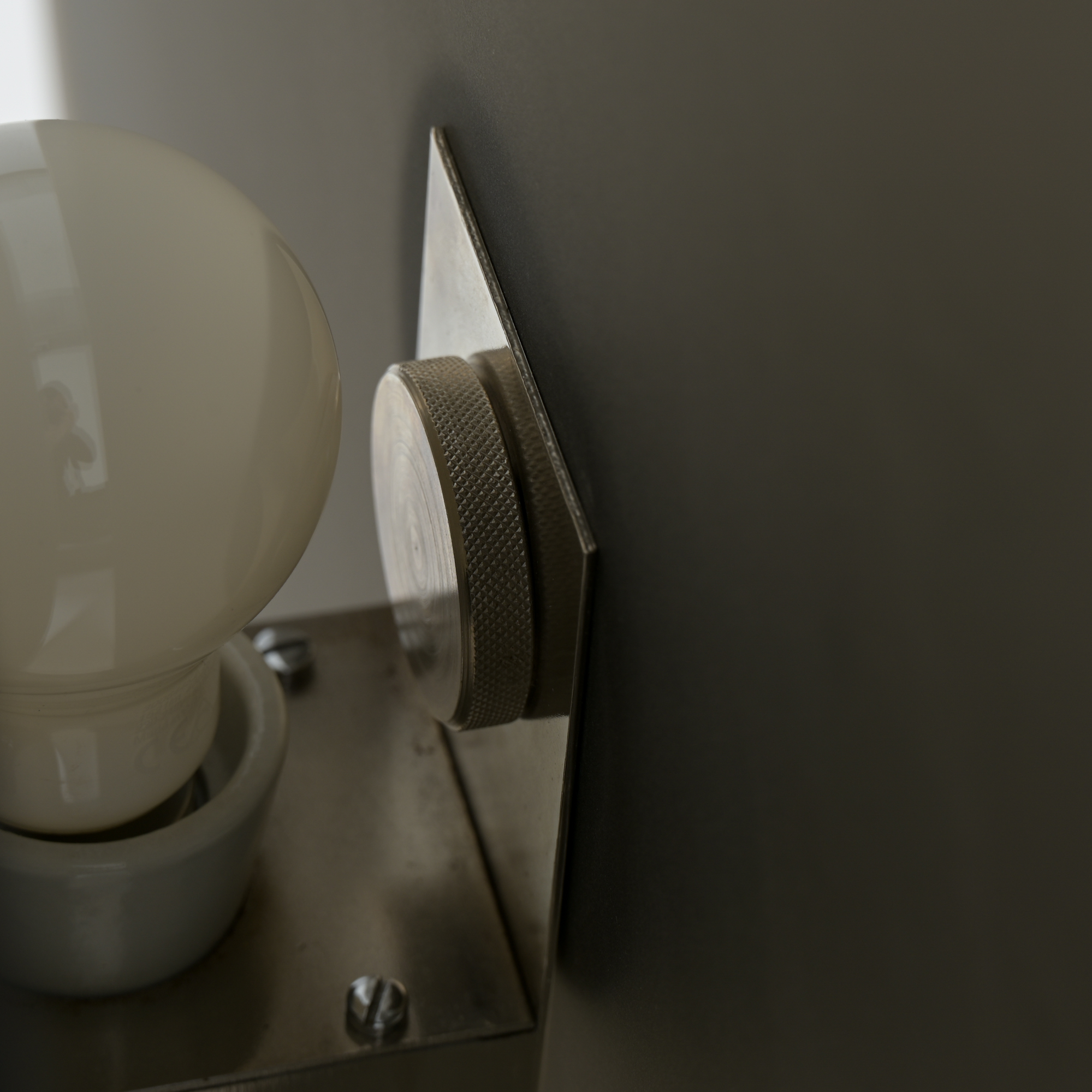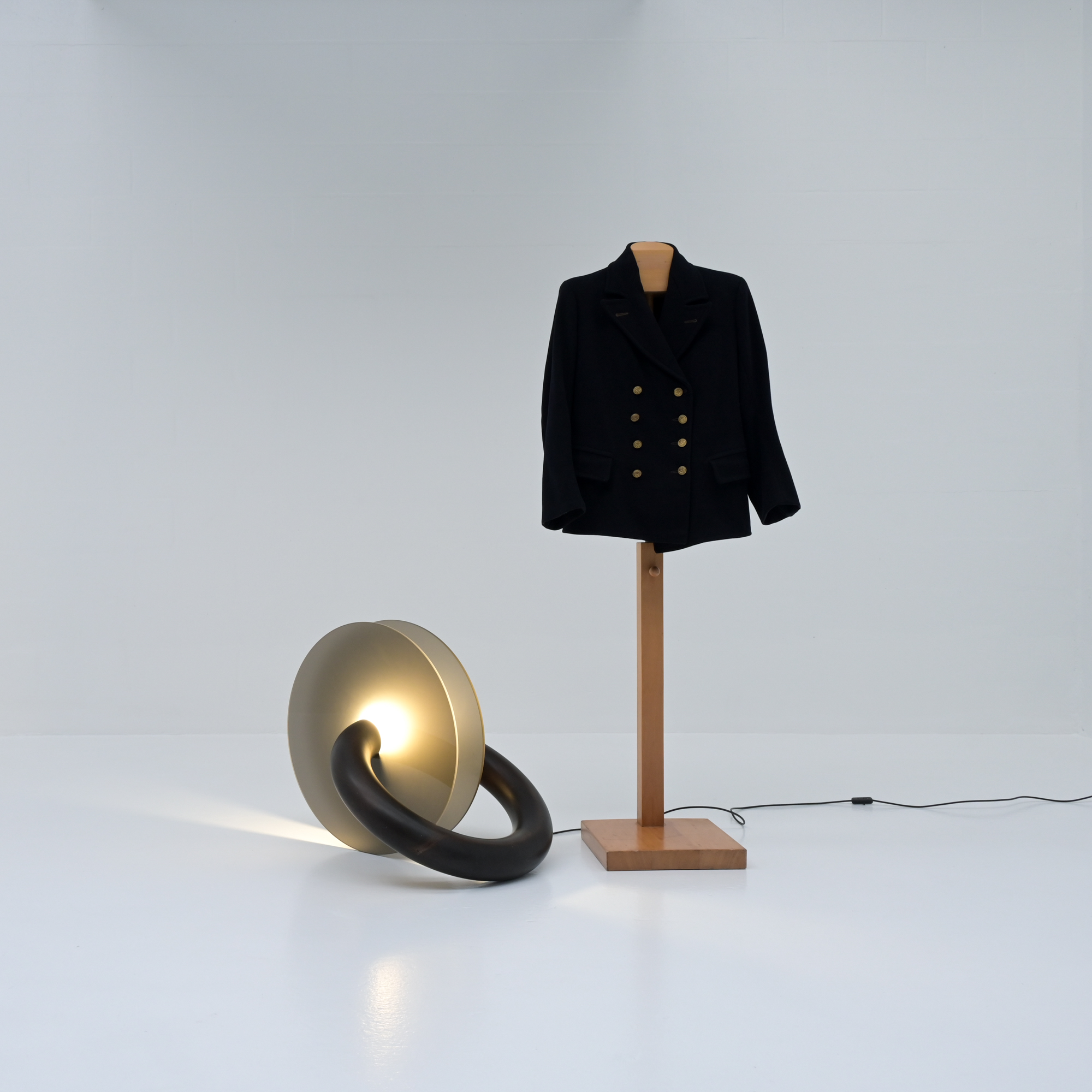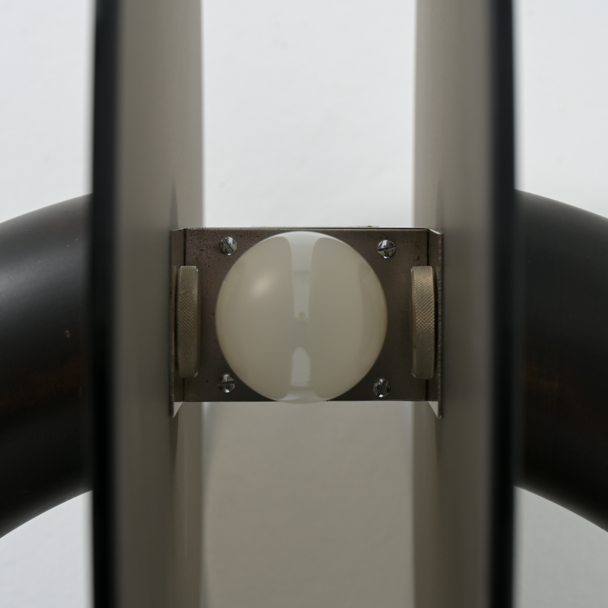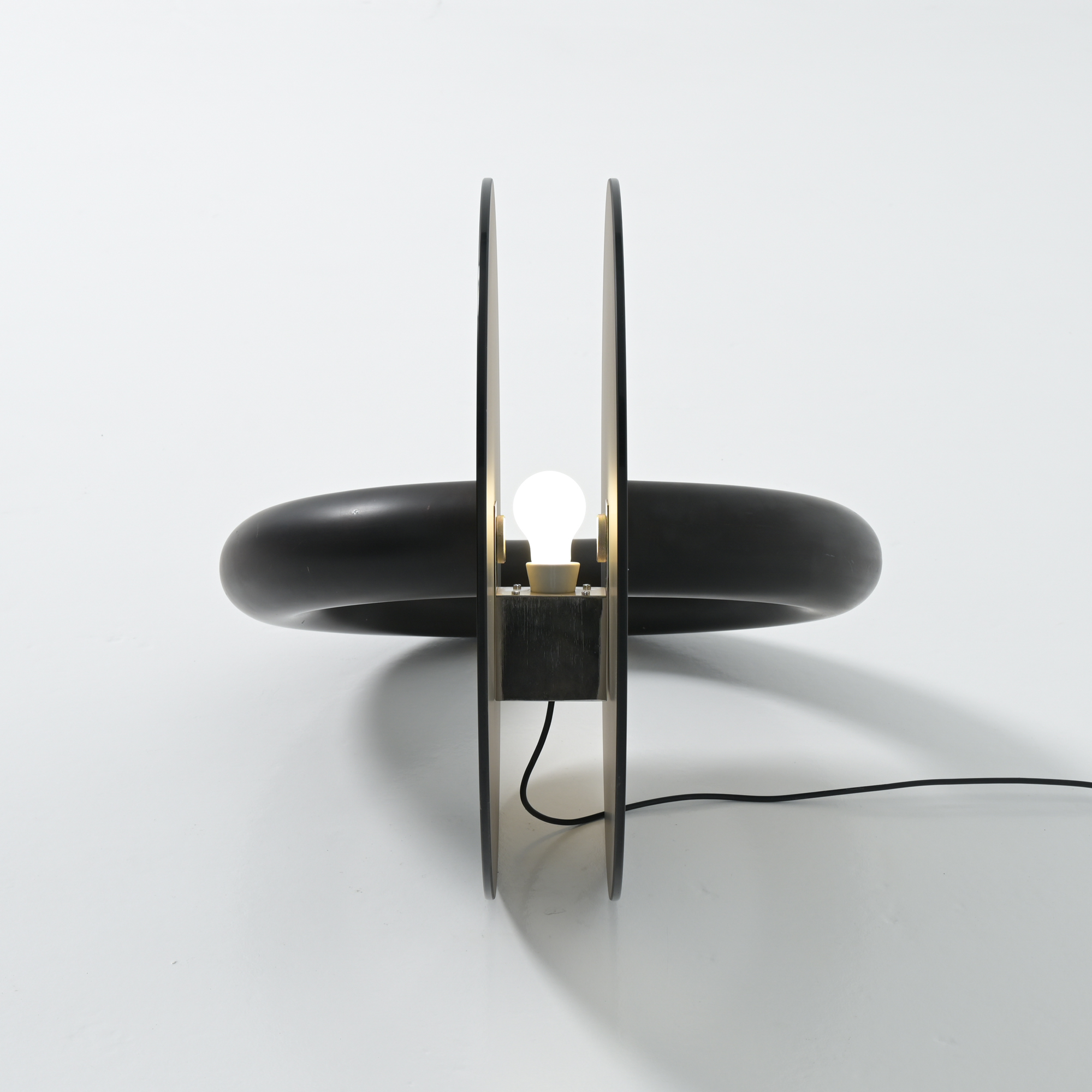 It consists of two bronzed glass discs with sandblasted finishes on the inside.