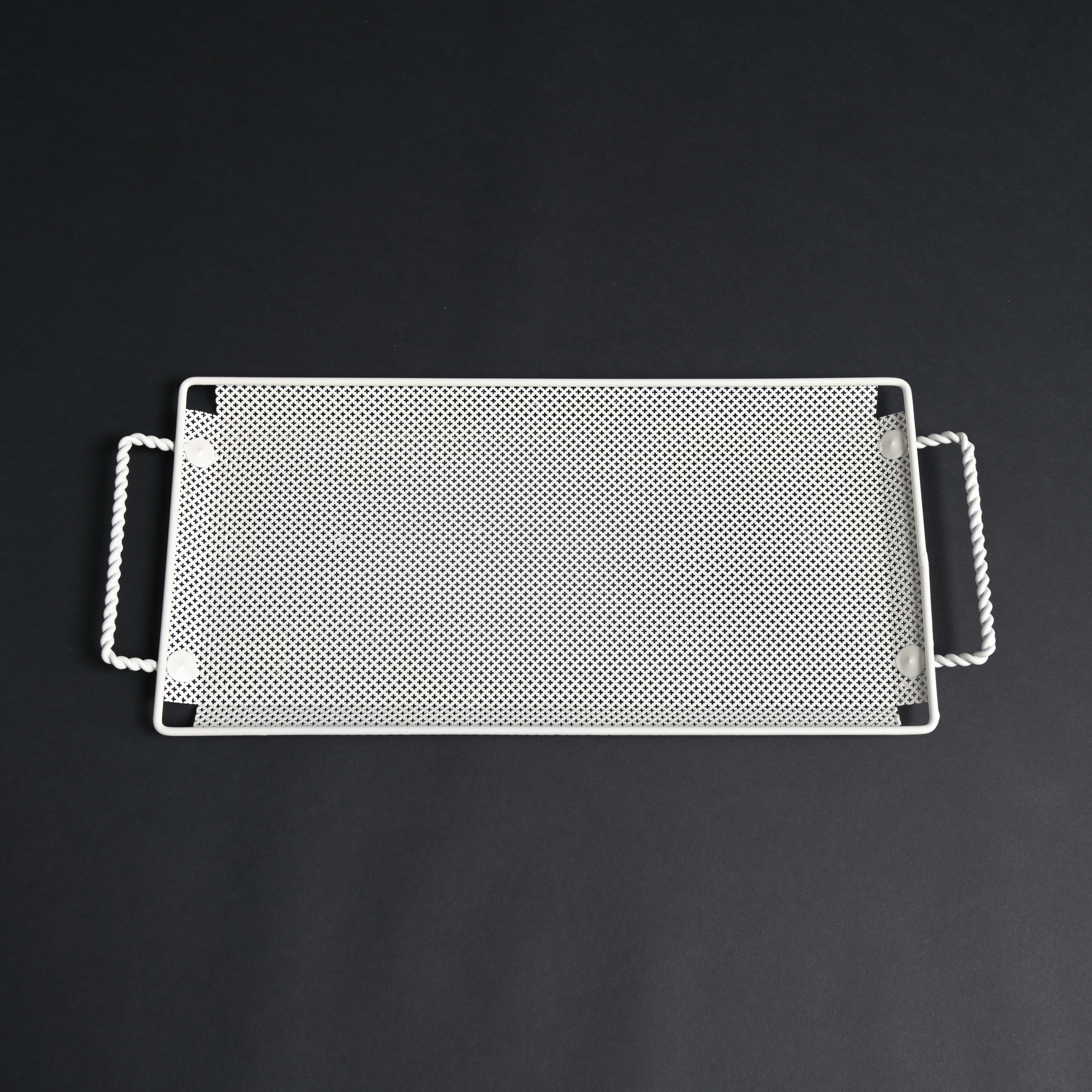 This white metal tray was designed by Mathieu Matégot in the 1950s.