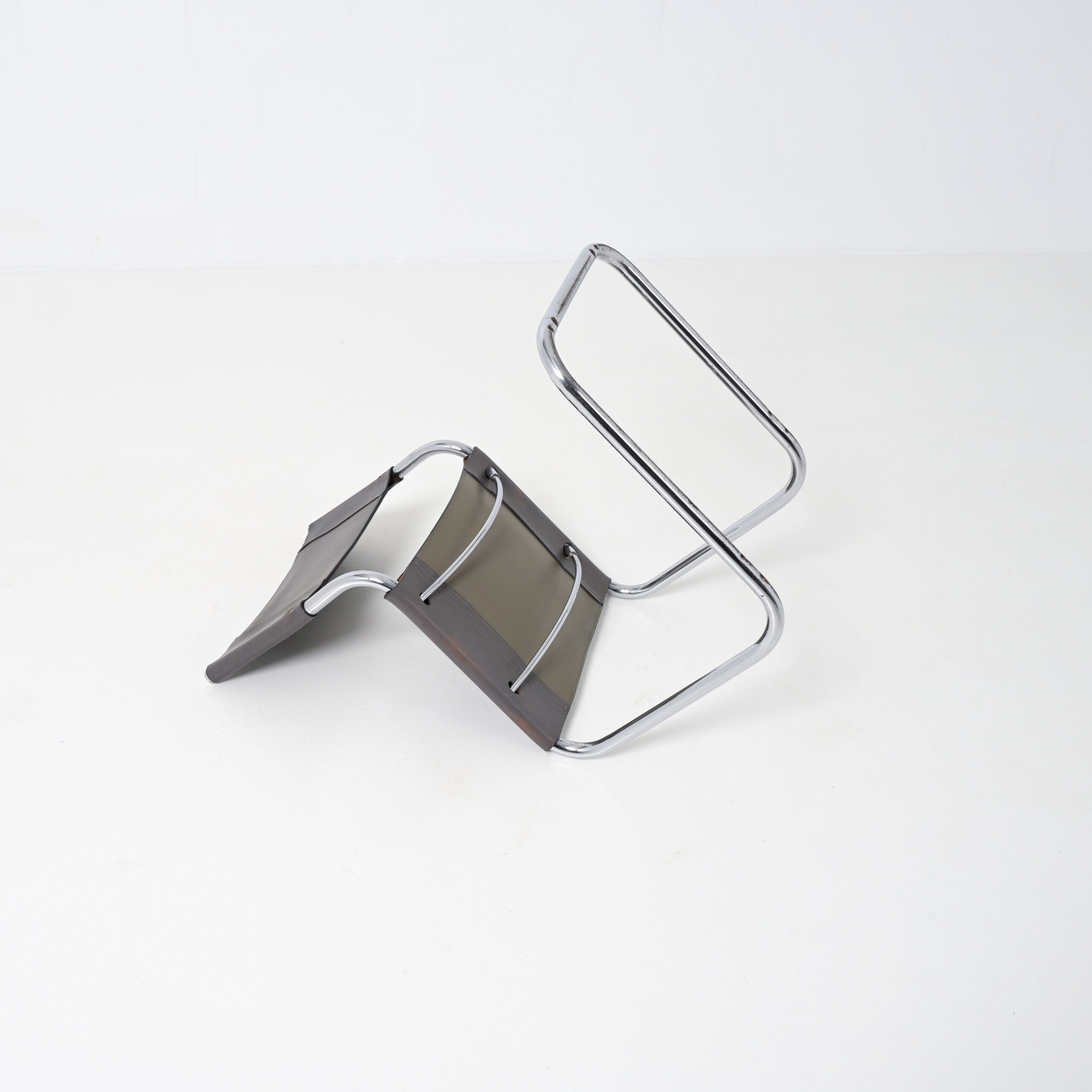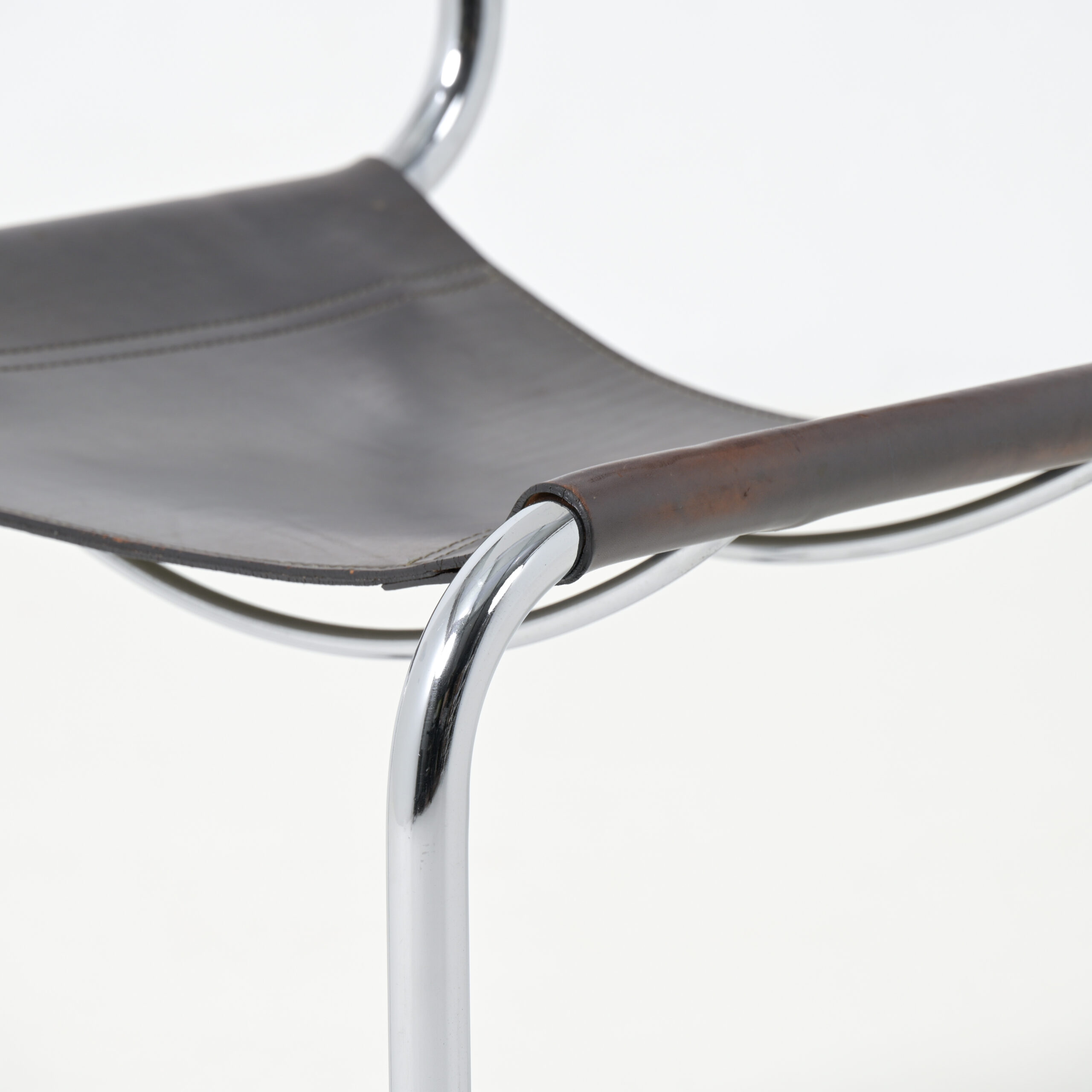 In the 1970s there was a revival of the tubular cantilever chair. These chrome cantilever chairs with grey leather seat and back can be dated in this period. They are made of high quality chrome and thick leather.