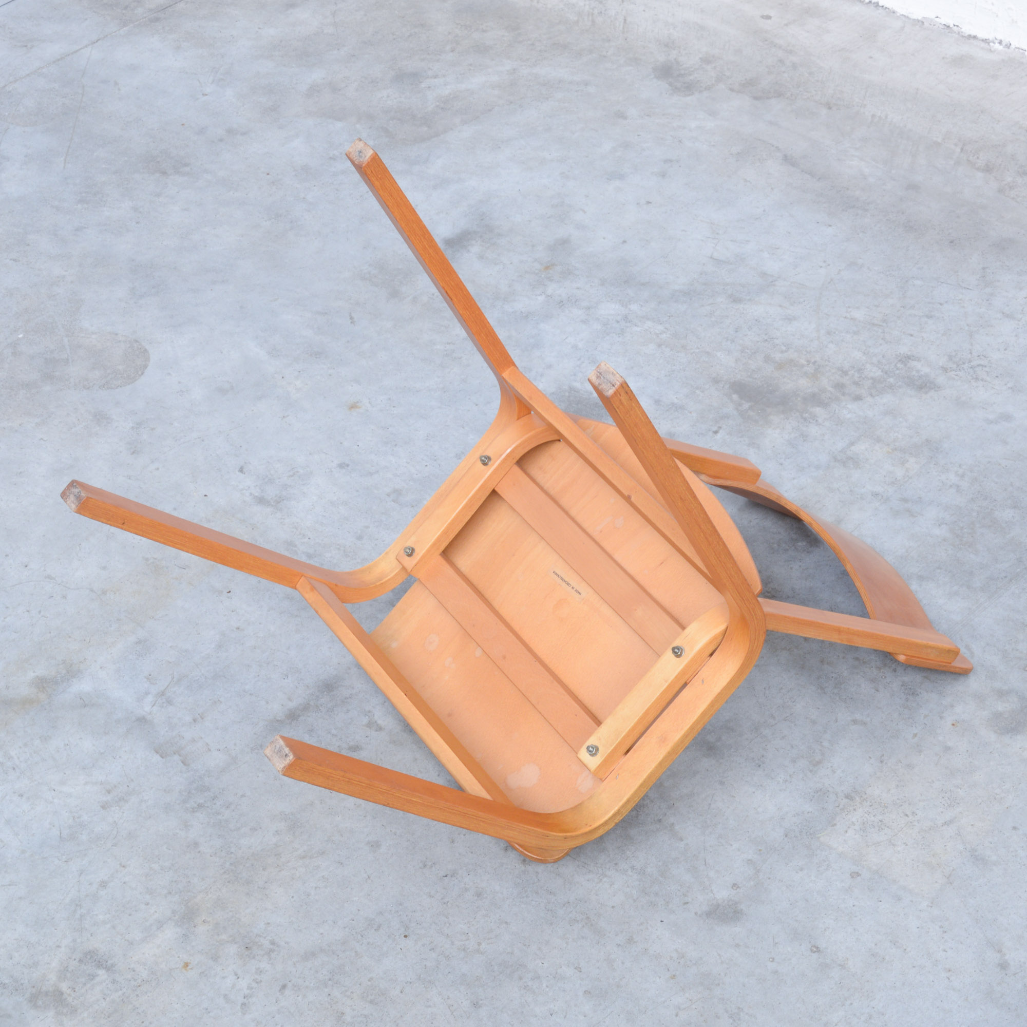 These Plywood dining chairs can be dated in the 1960s. They are marked Czechoslovakia.