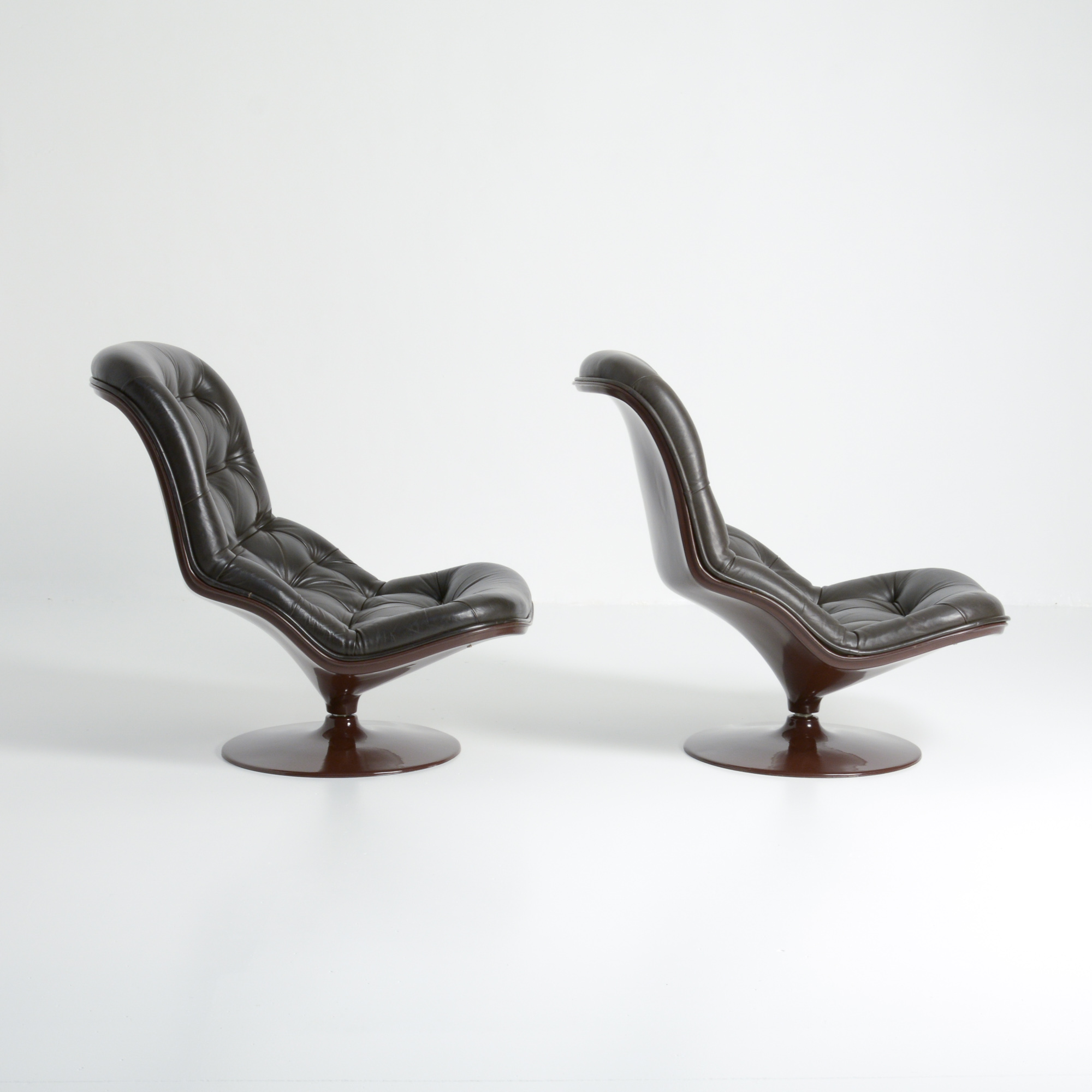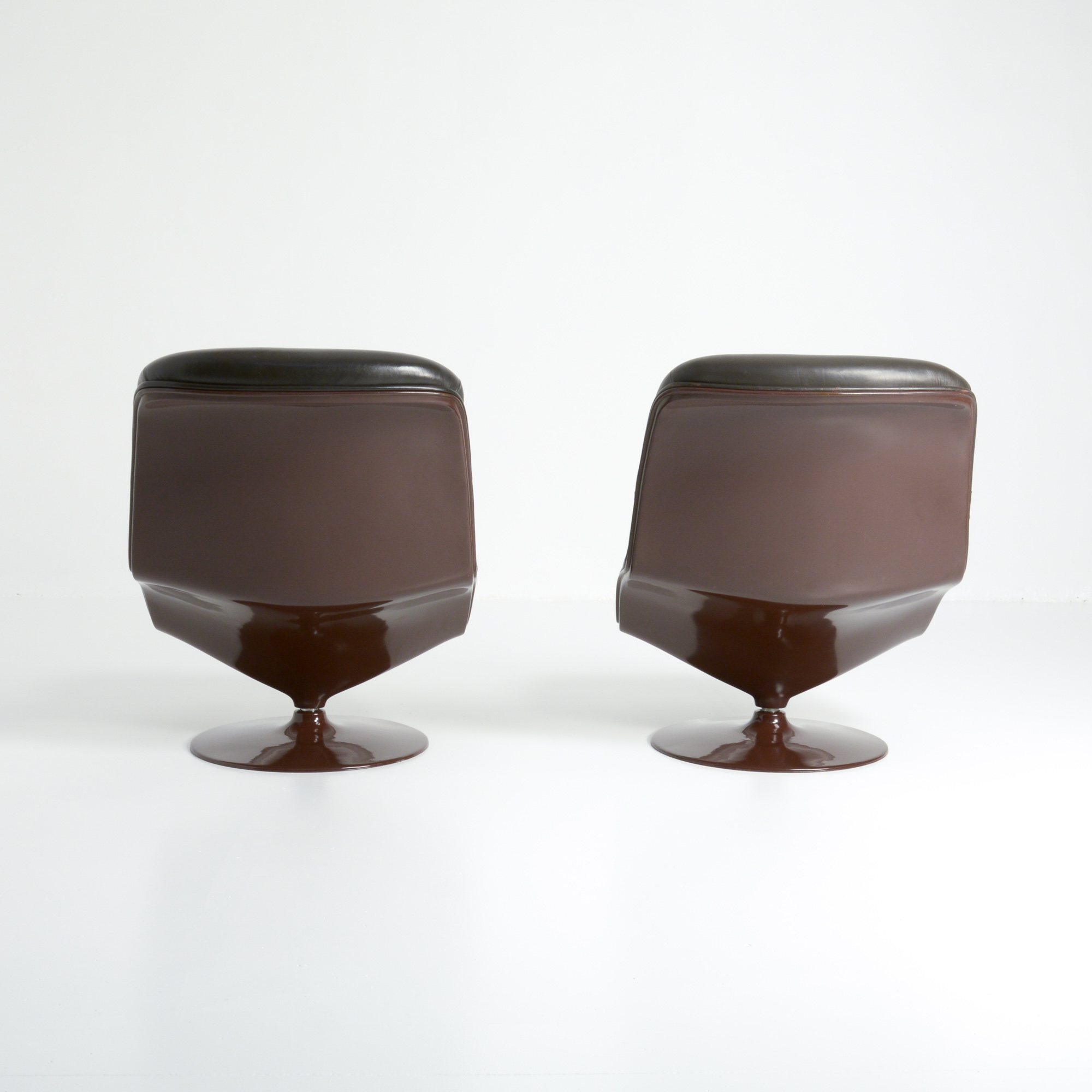 The chairs can swivel and have a tilt function. This set of warm brown colored chairs is very comfortable and attractive, it takes you back to the 1970s.