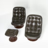 The Shelby lounge chair was designed by Georges Van Rijk for Beaufort. We offer you a set of 2 lounge chairs and 1 ottoman, made of chocolate brown polyester and dark brown leather.