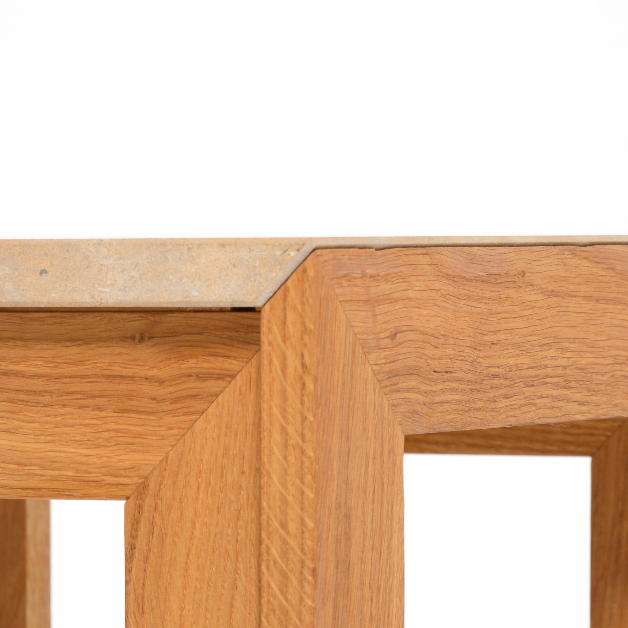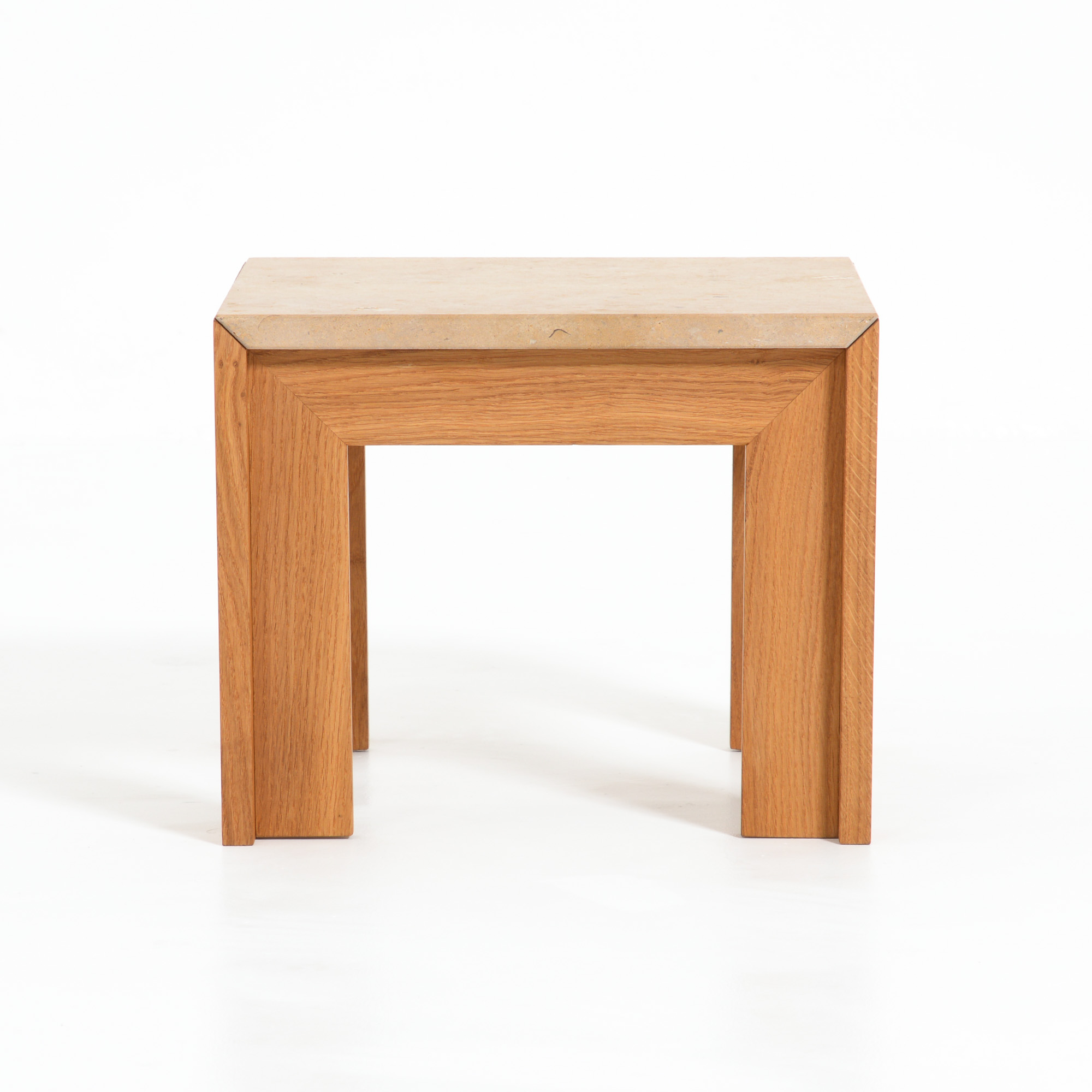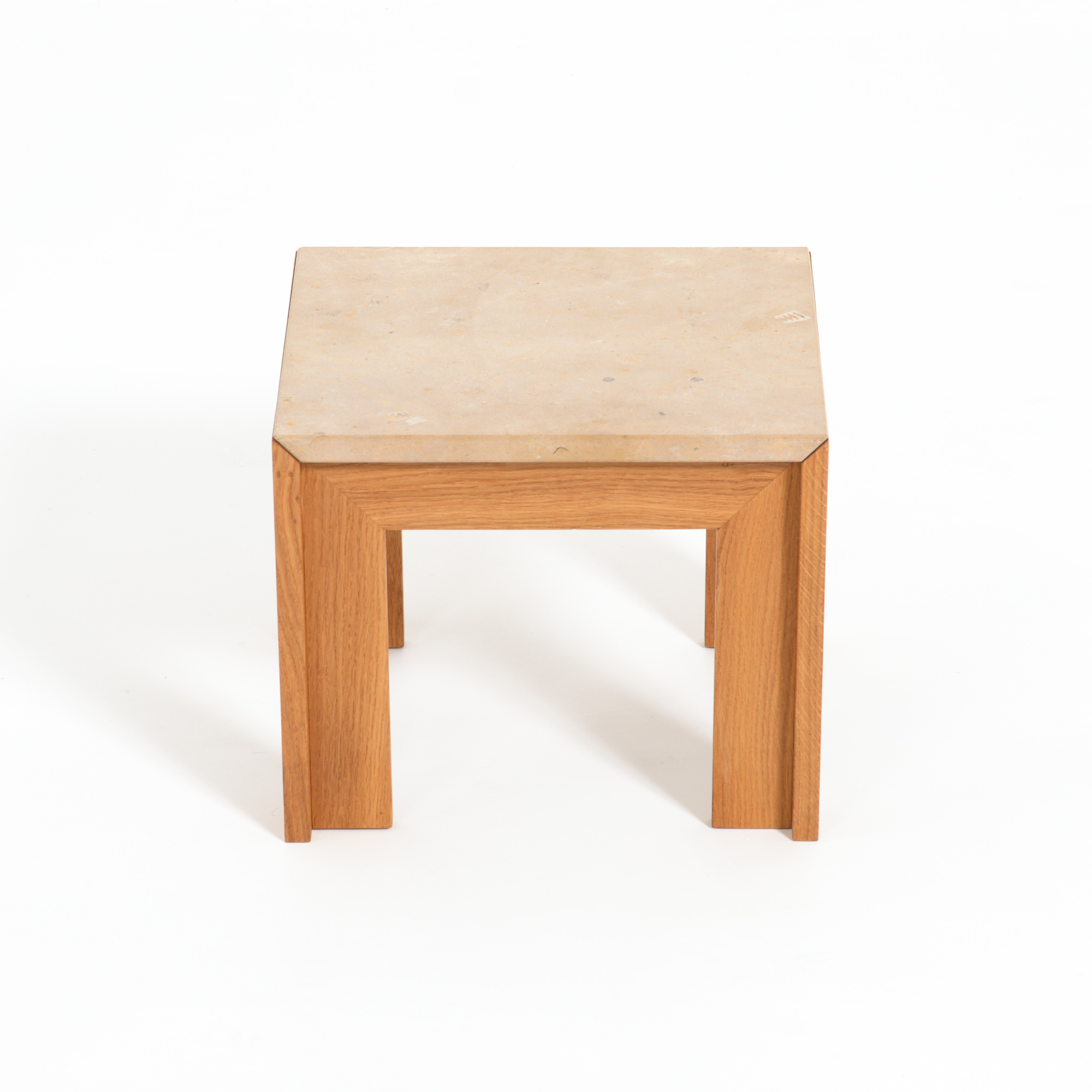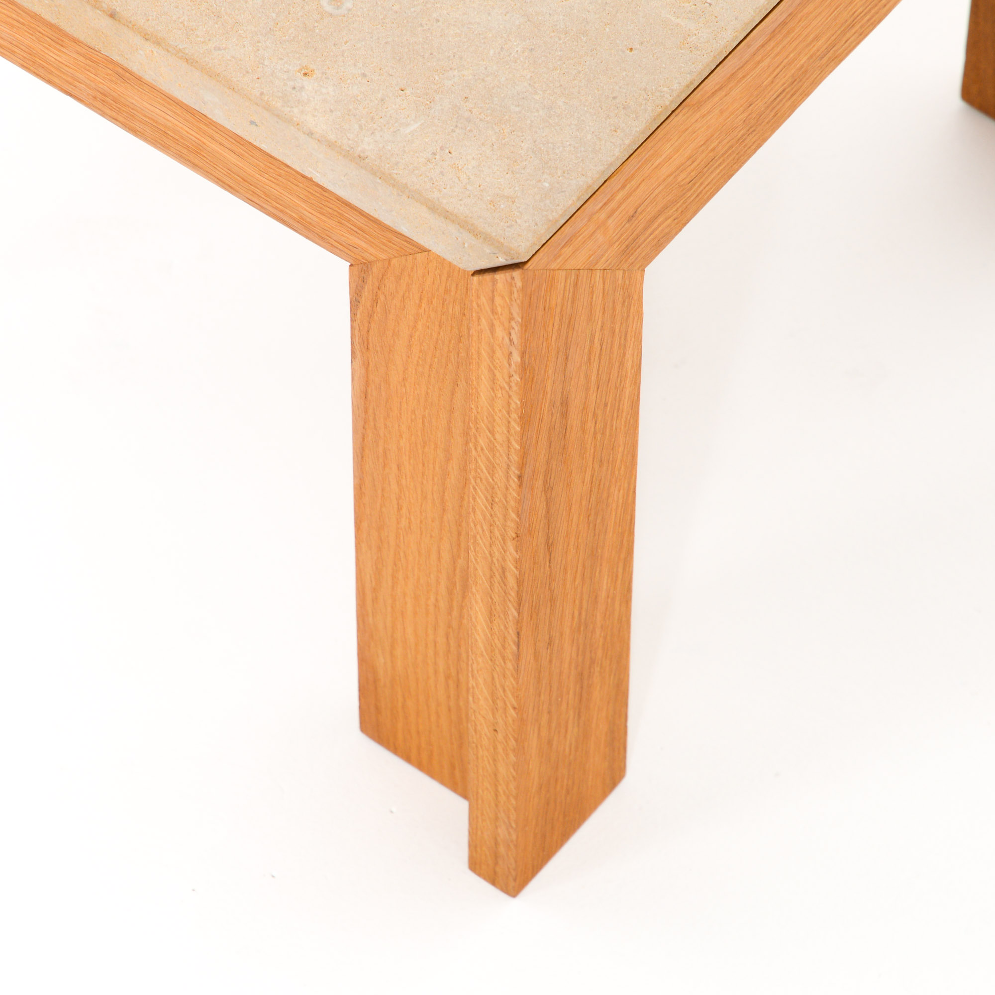 This Occasional table is designed by Philip Theys. The structure in solid oak wood has 2 sides finished in 45 degrees.