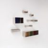 3 modules, perfectly shaped according to the golden ratio, set up the base for an endless range of possibilities. You can use one of them as an independent piece (on its own) or you can combine them in a big set-up: wall mounted, free standing or on wheels. Horizontal or vertical. With doors, shelves and backs in woolfelt, wood or wired glass. The outcome of the totem system is completely hand-made by you and only you.