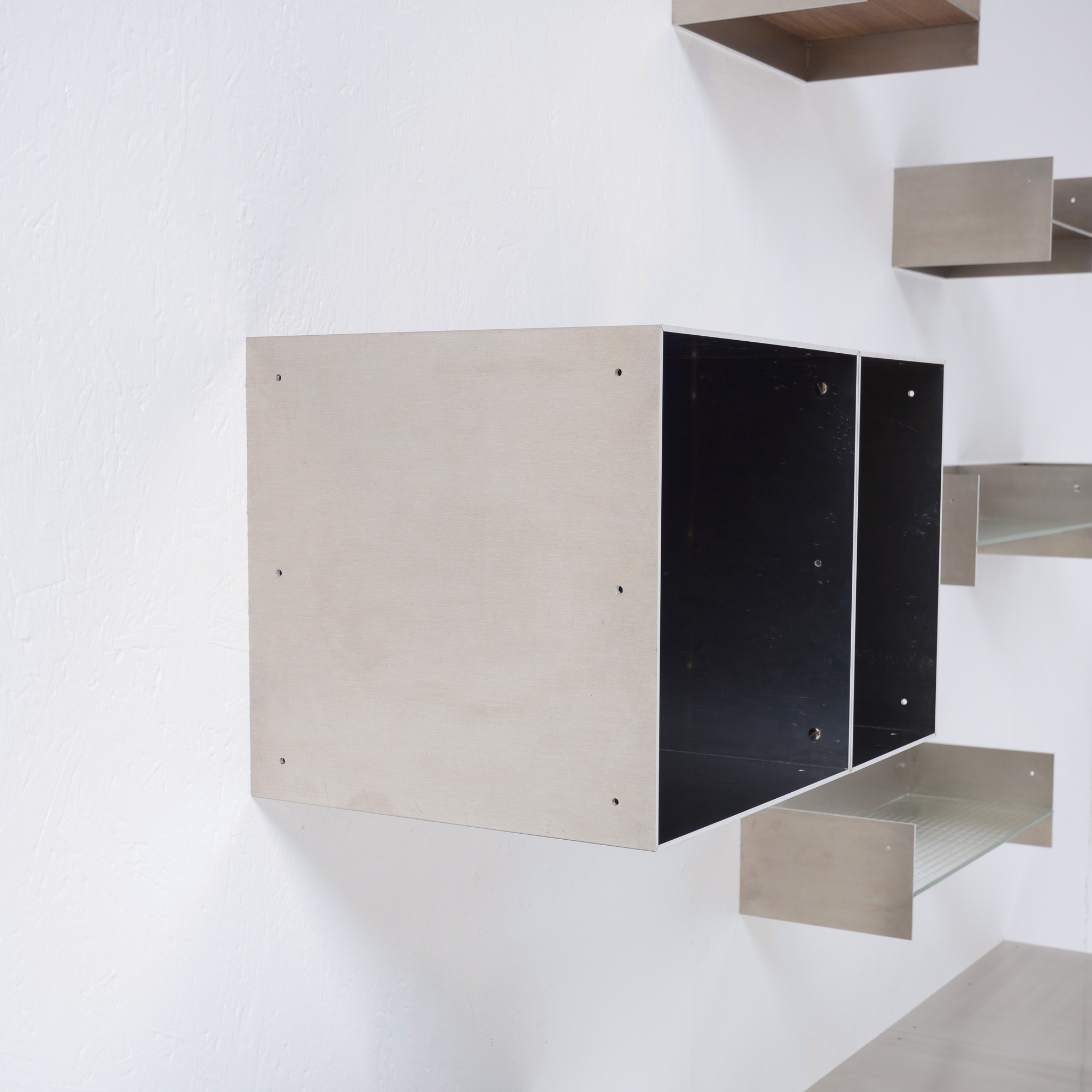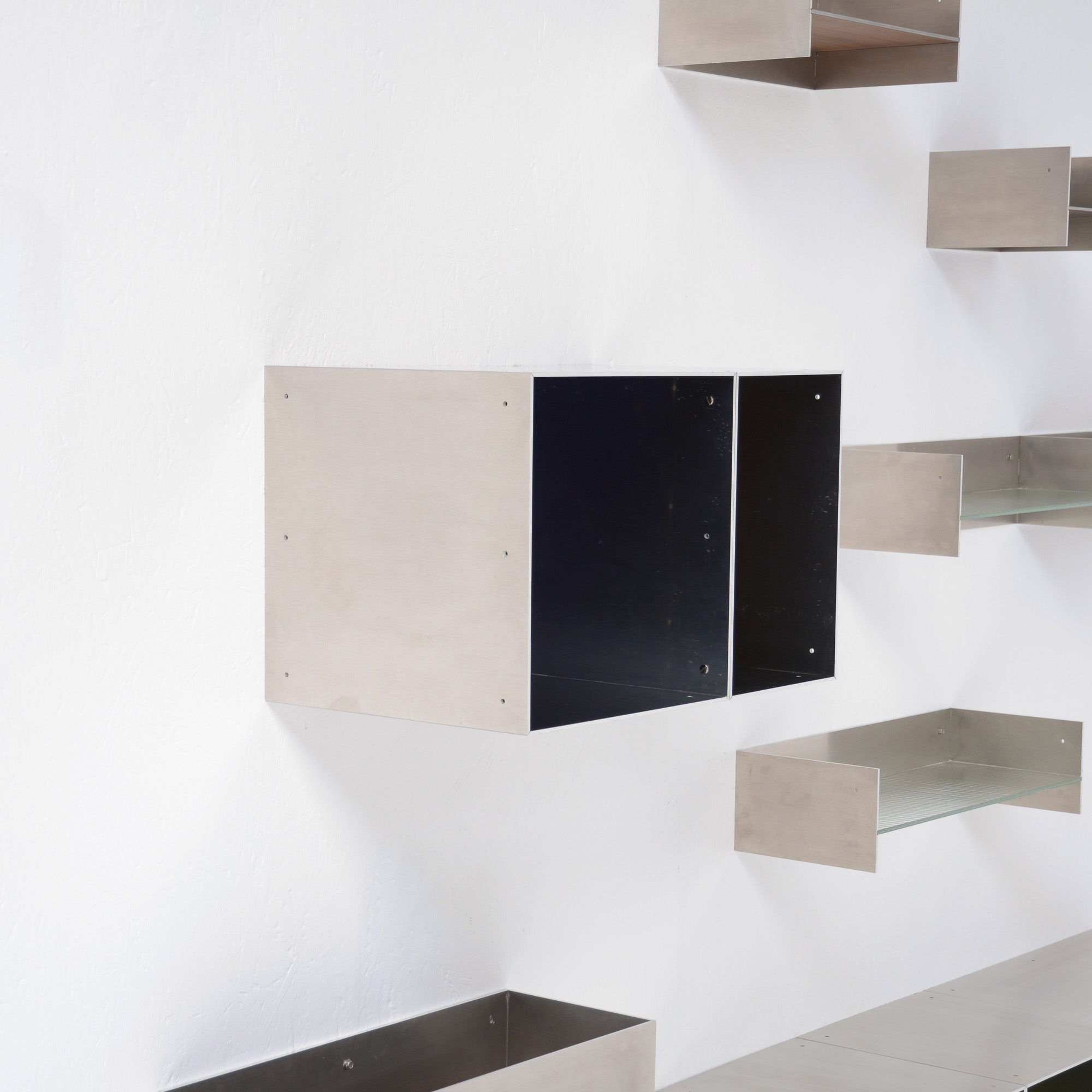 Totem is a minimalistic and customizable series of cabinet and shelving units in aluminum, created and made by Atelier Belge.