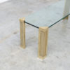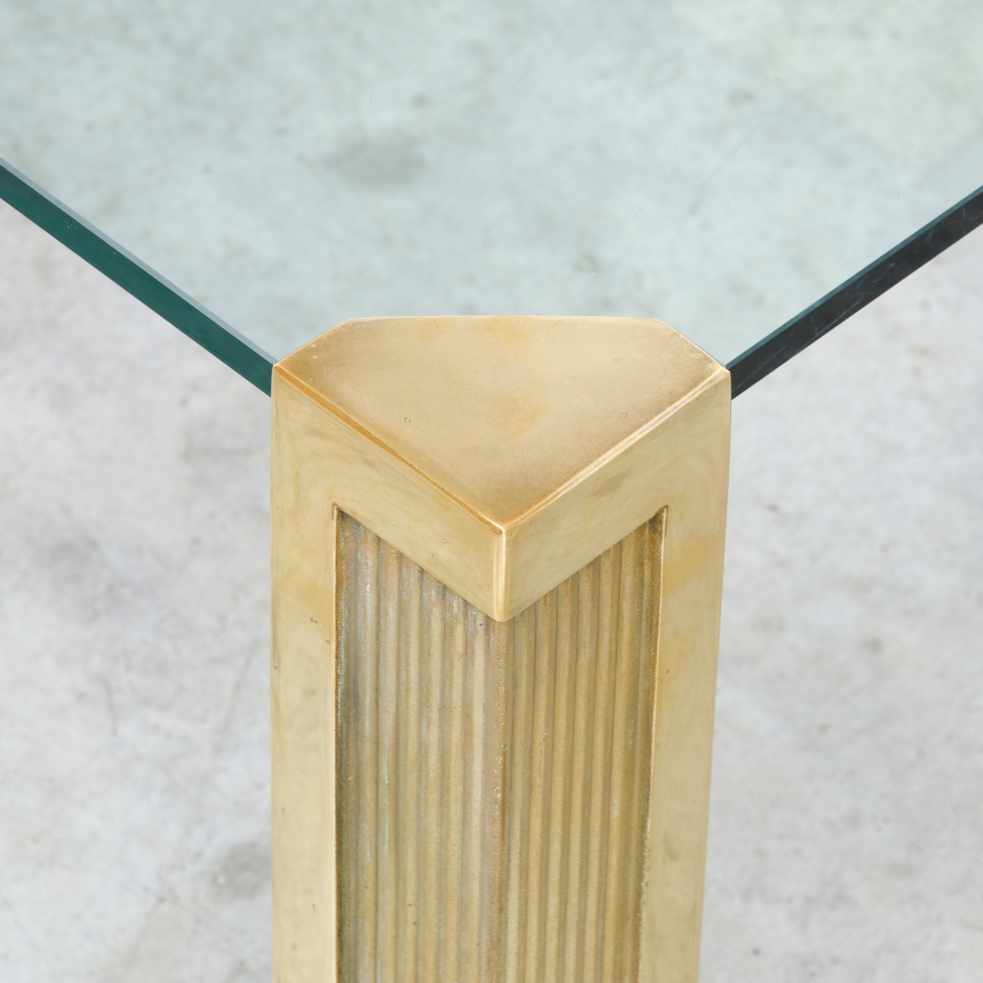 The 4 solitary massive sand cast bronze legs clamp on the thick glass top.