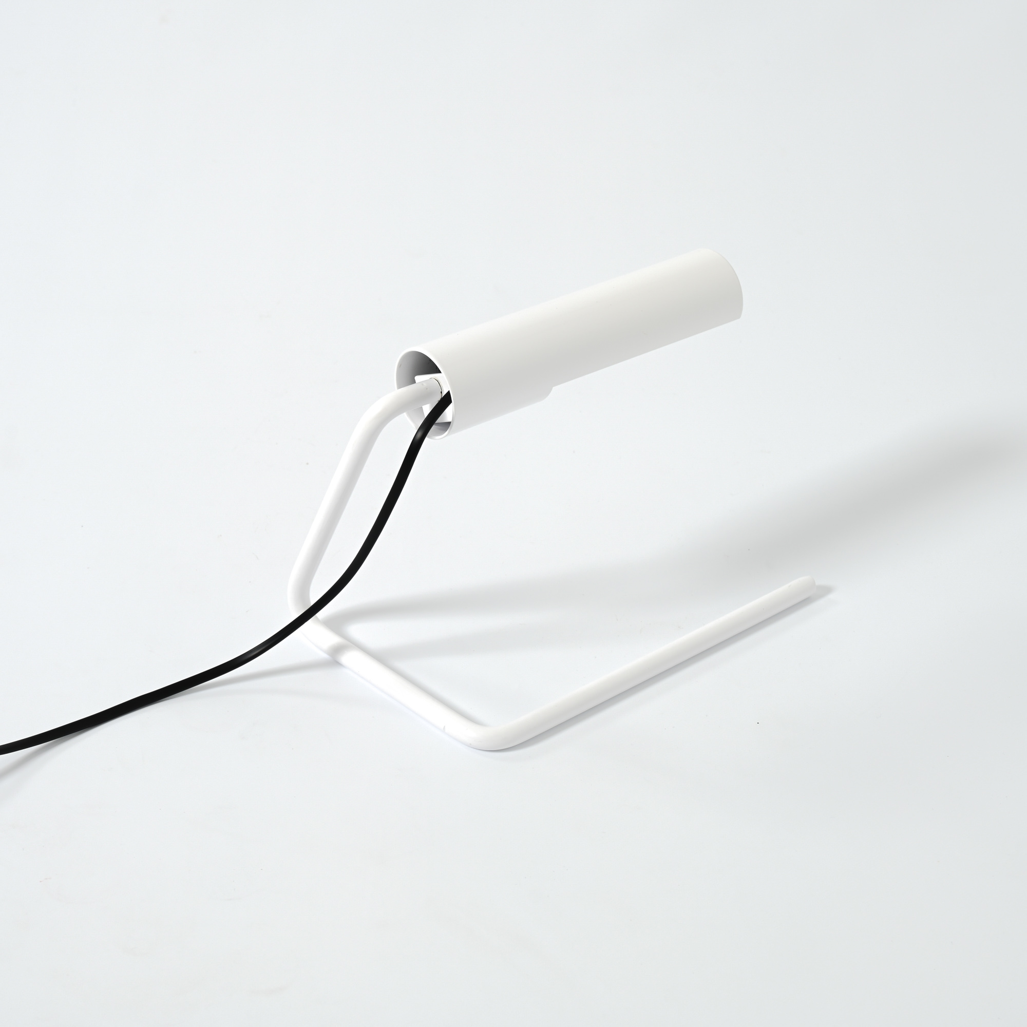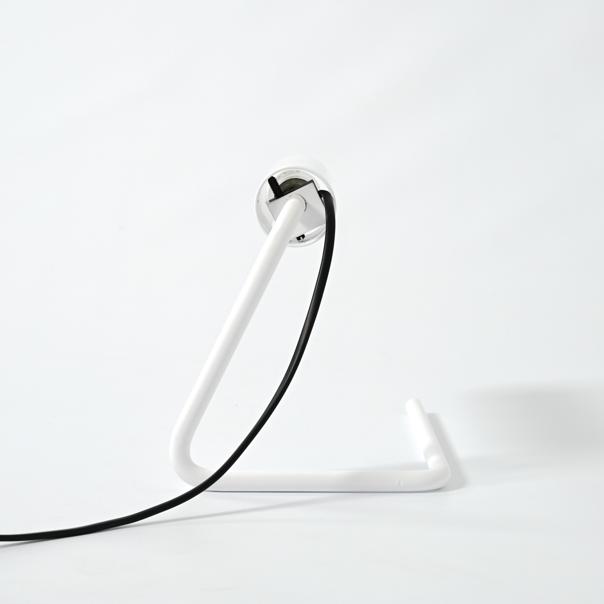 This lamp in white lacquered metal is in very good authentic condition. It is out of production, a collectible.