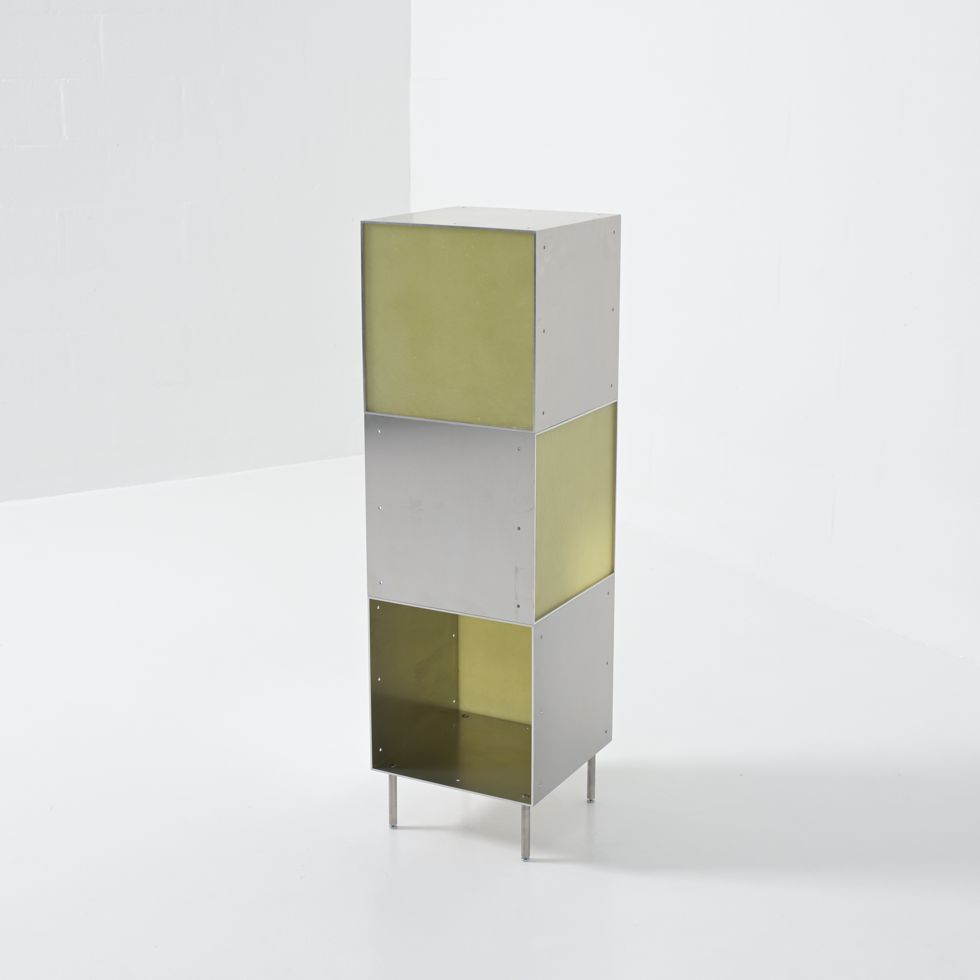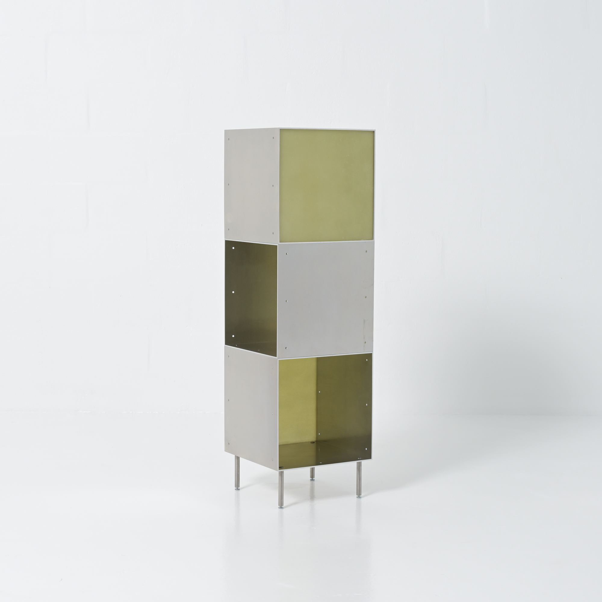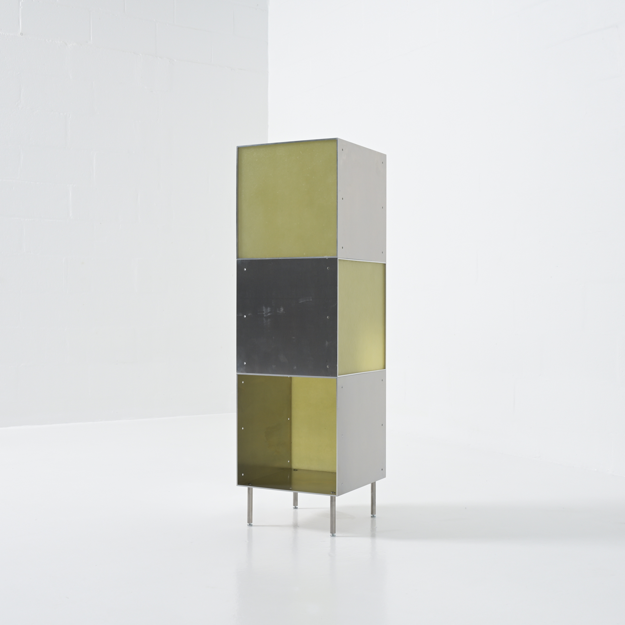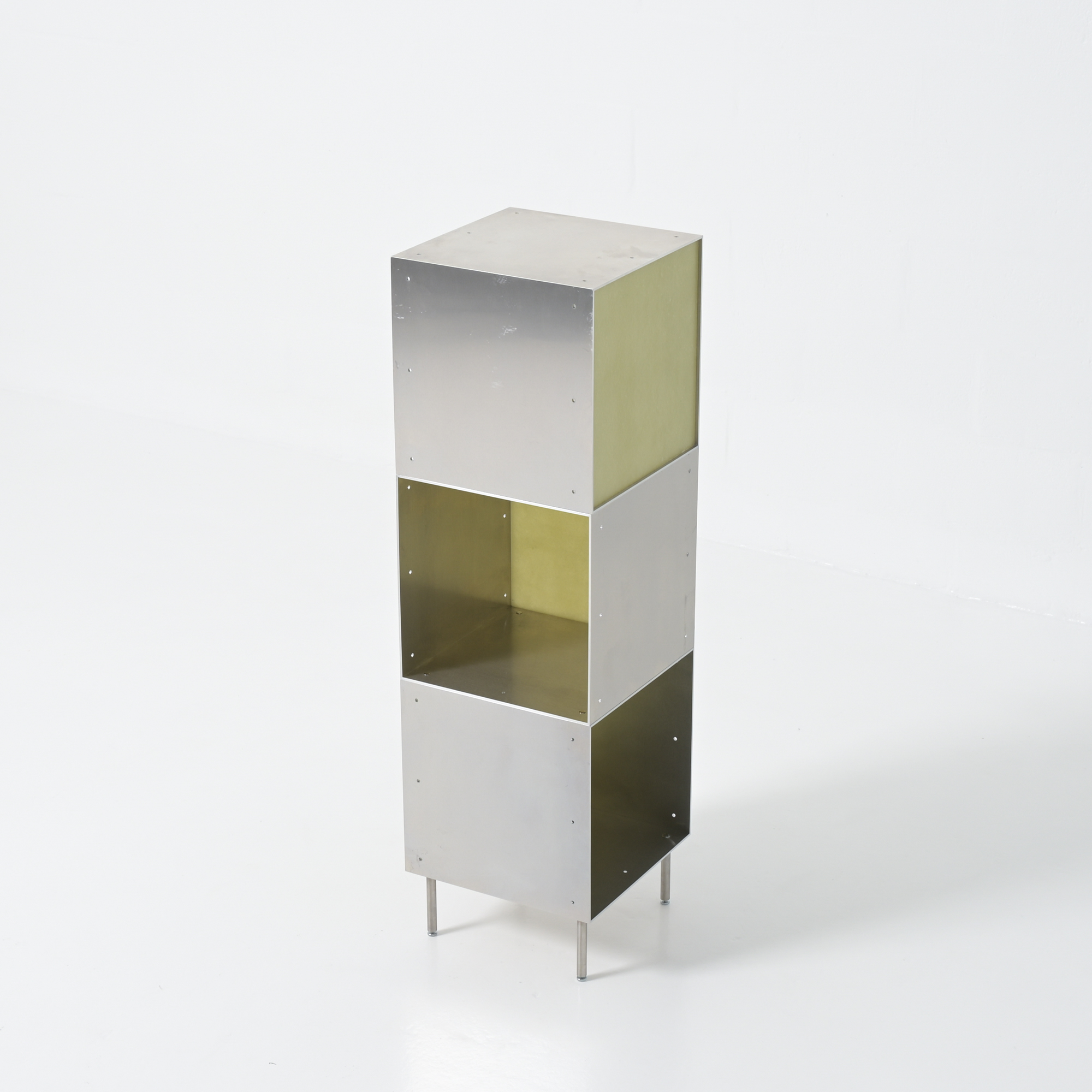 Totem is a minimalistic and customizable series of cabinet and shelving units in aluminum, created and made by Atelier Belge.