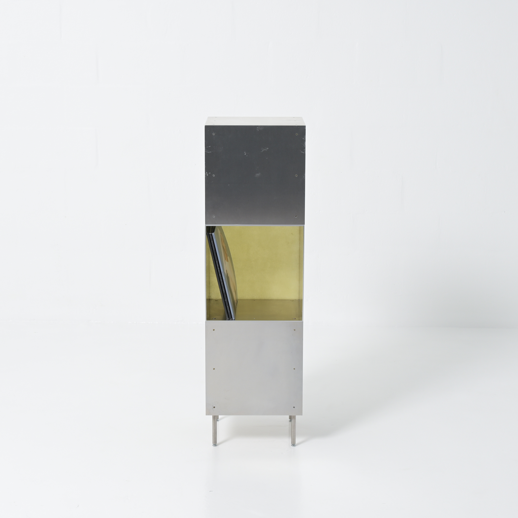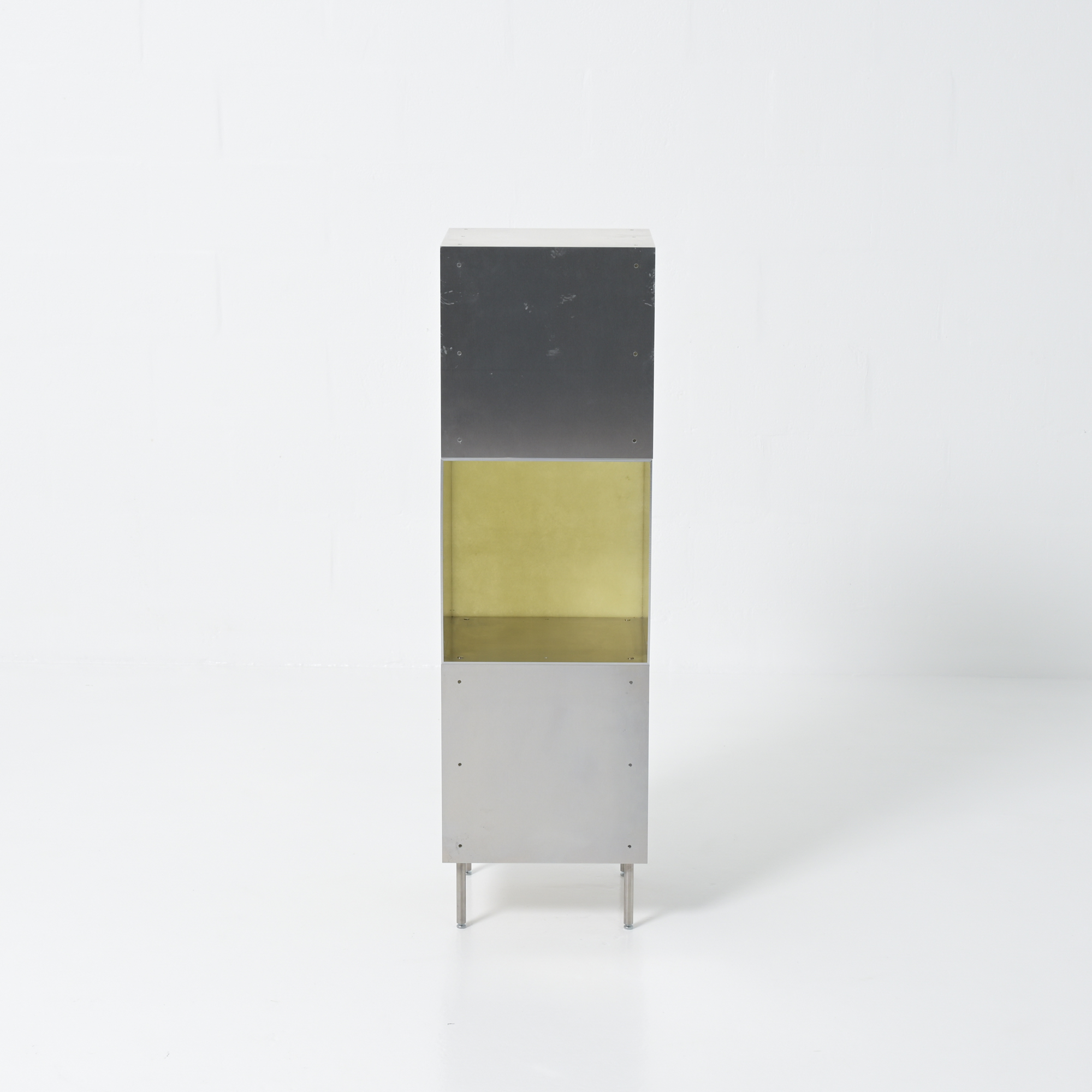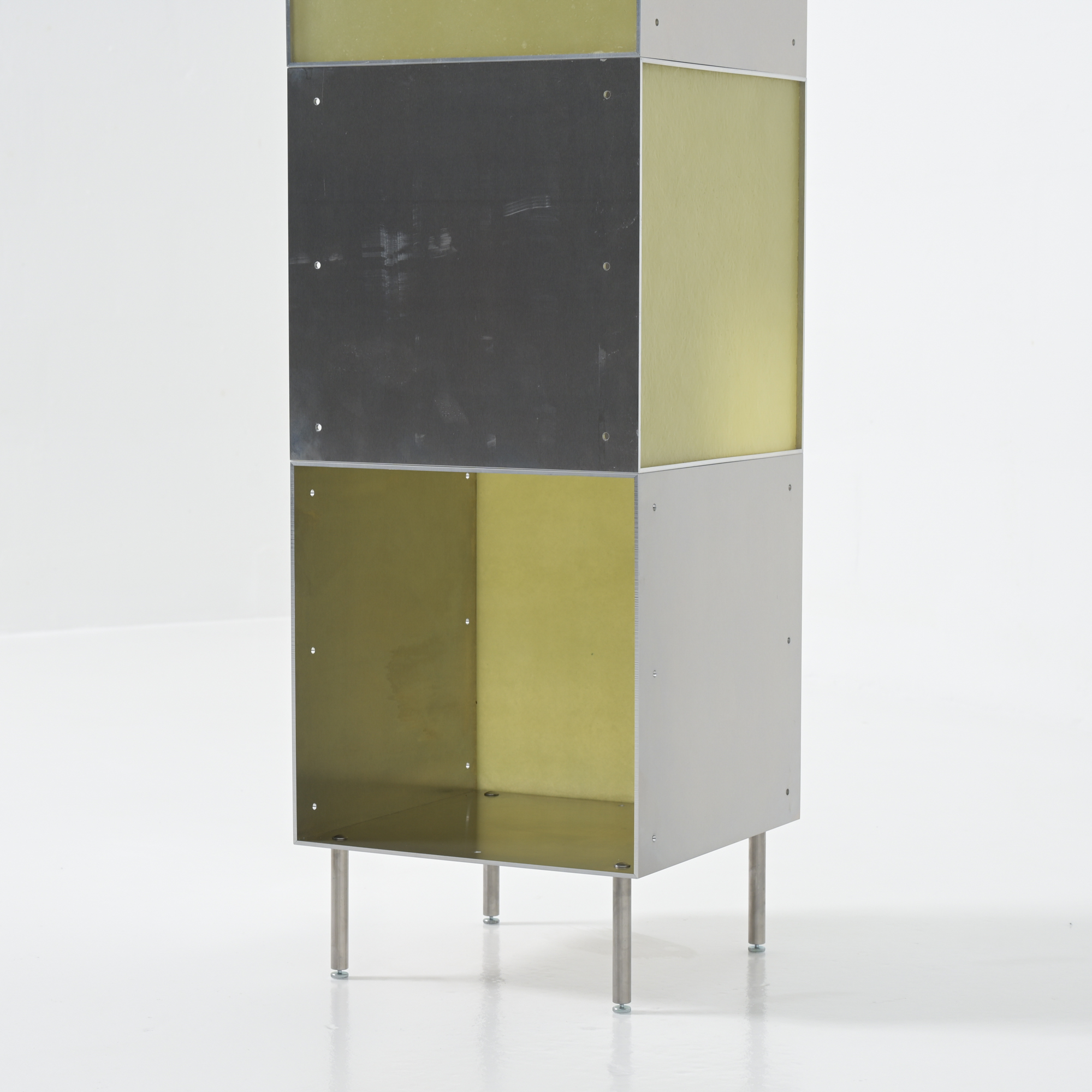 Totem is a minimalistic and customizable series of cabinet and shelving units in aluminum, created and made by Atelier Belge.