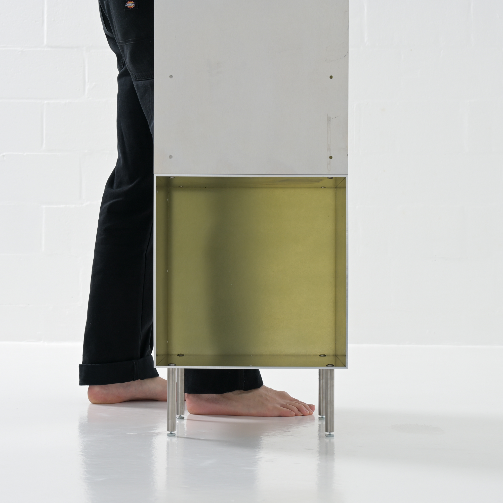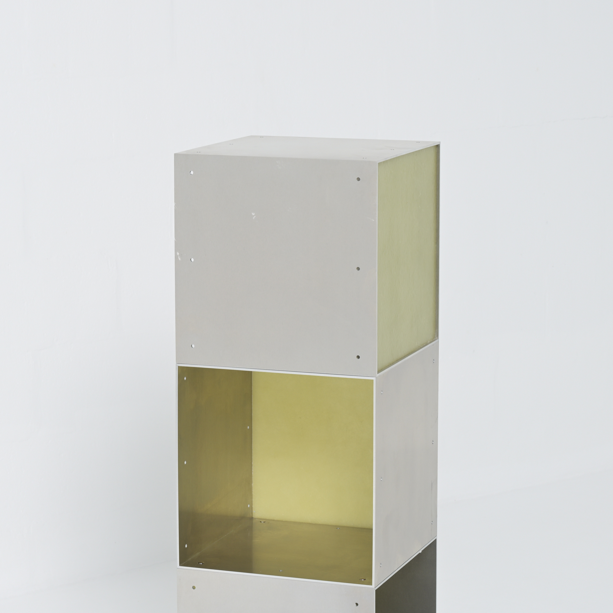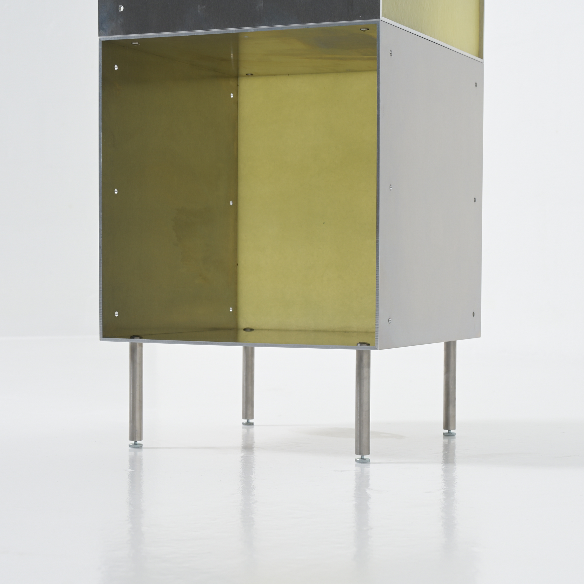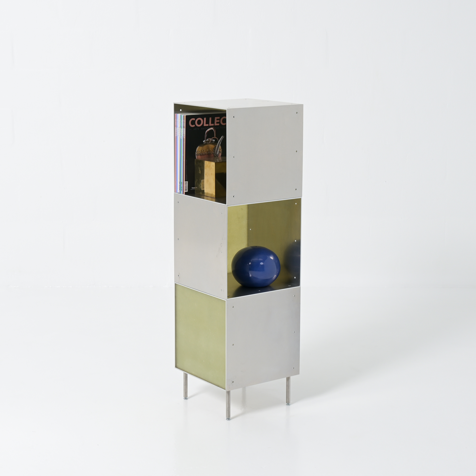 Totem is a minimalistic and customizable series of cabinet and shelving units in aluminum, created and made by Atelier Belge.