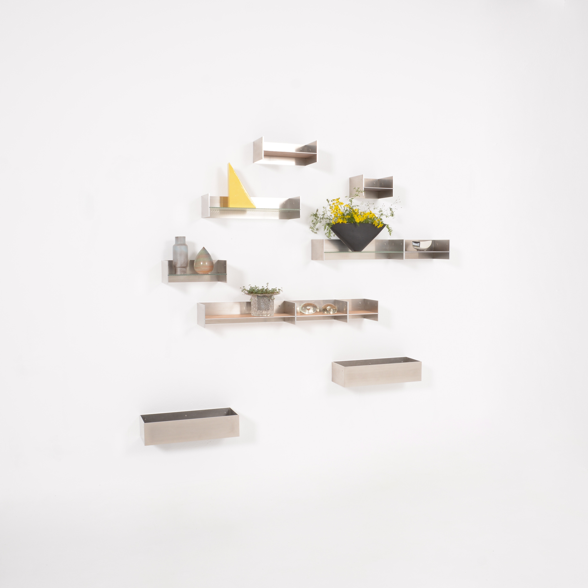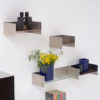3 modules, perfectly shaped according to the golden ratio, set up the base for an endless range of possibilities. You can use one of them as an independent piece (on its own) or you can combine them in a big set-up: wall mounted, free standing or on wheels. Horizontal or vertical. With doors, shelves and backs in woolfelt, wood or wired glass. The outcome of the totem system is completely hand-made by you and only you.