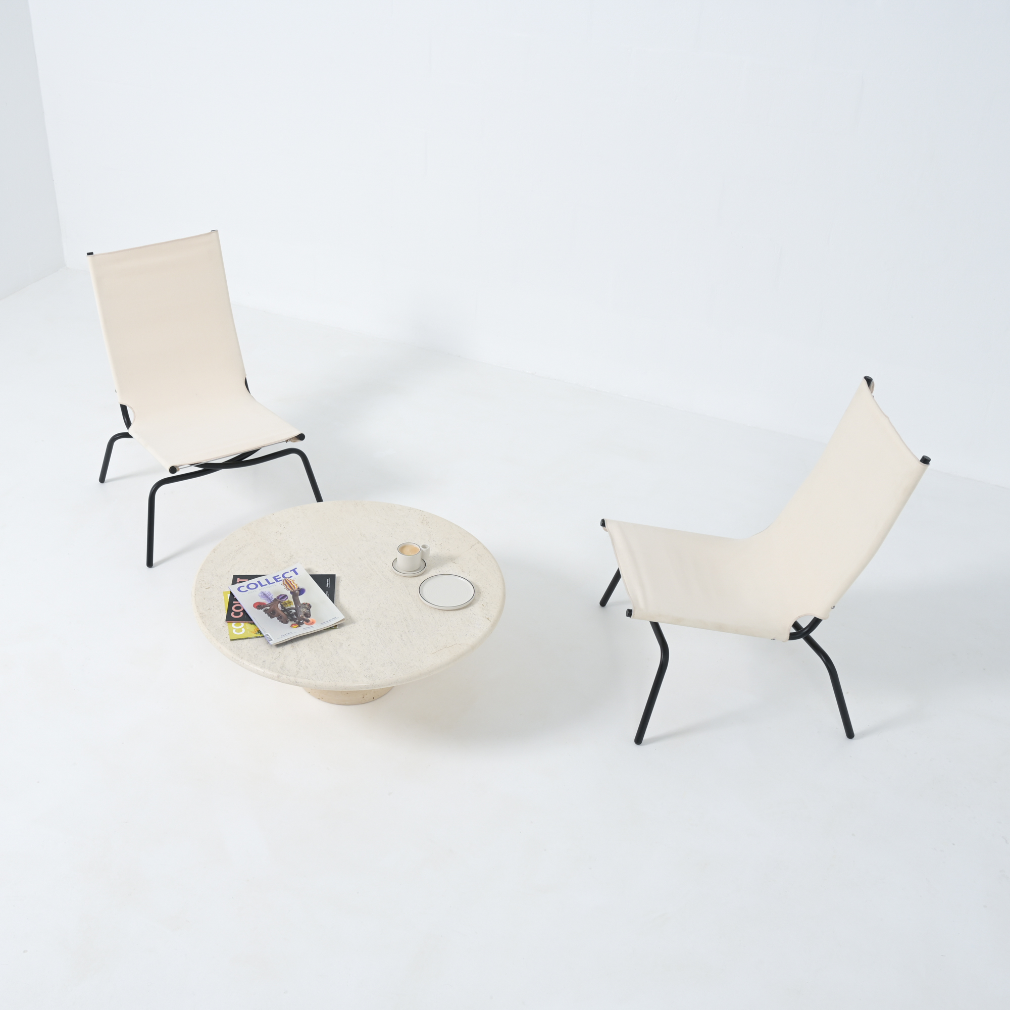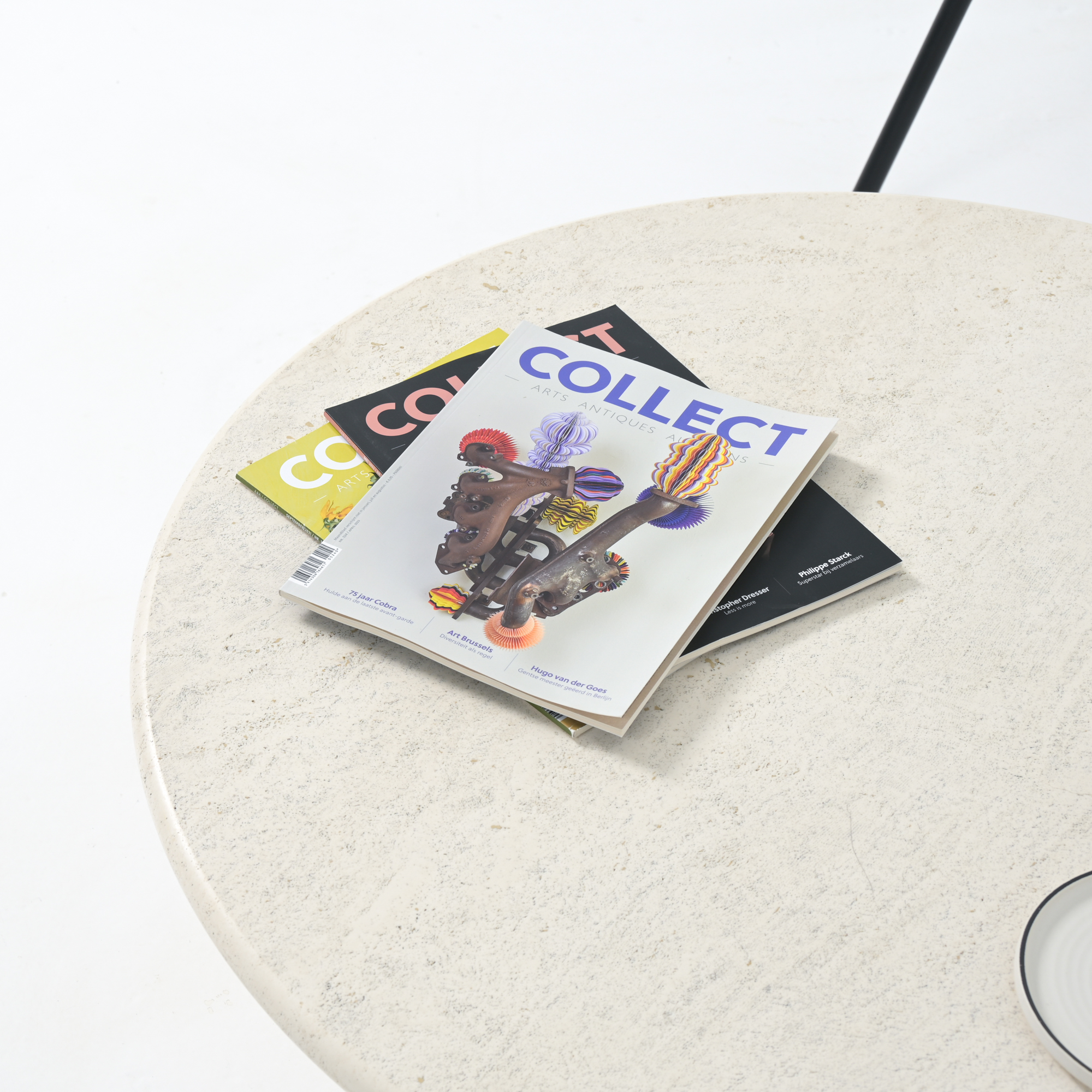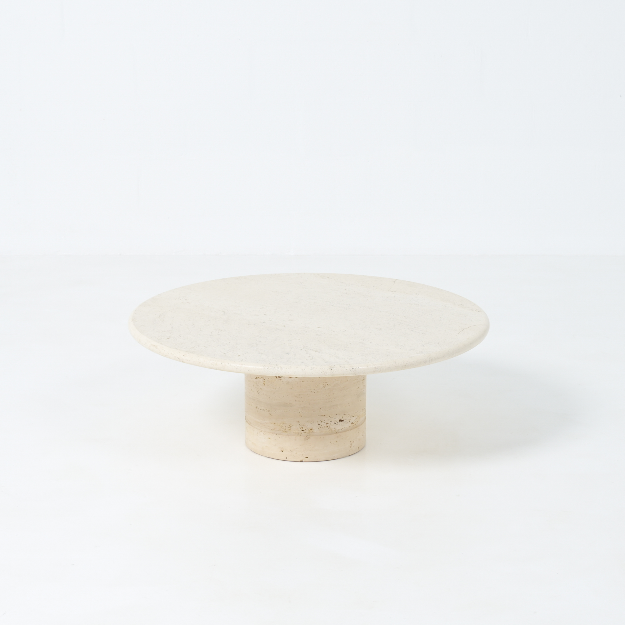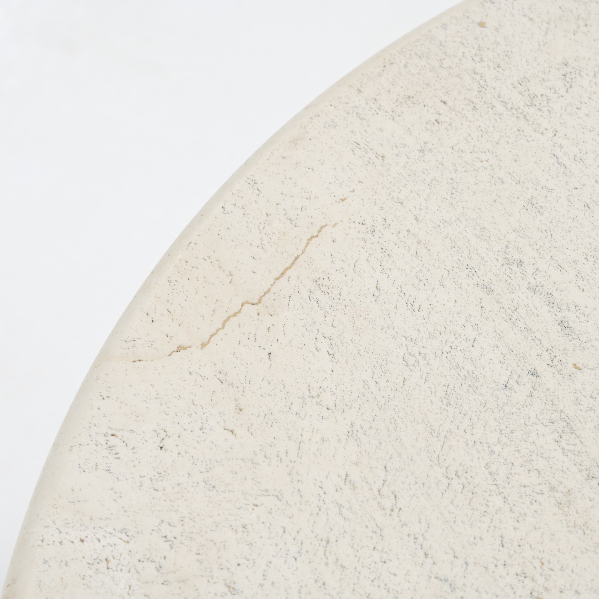 This travertine table was made in the style of Angelo Mangiarotti for Up & Up.