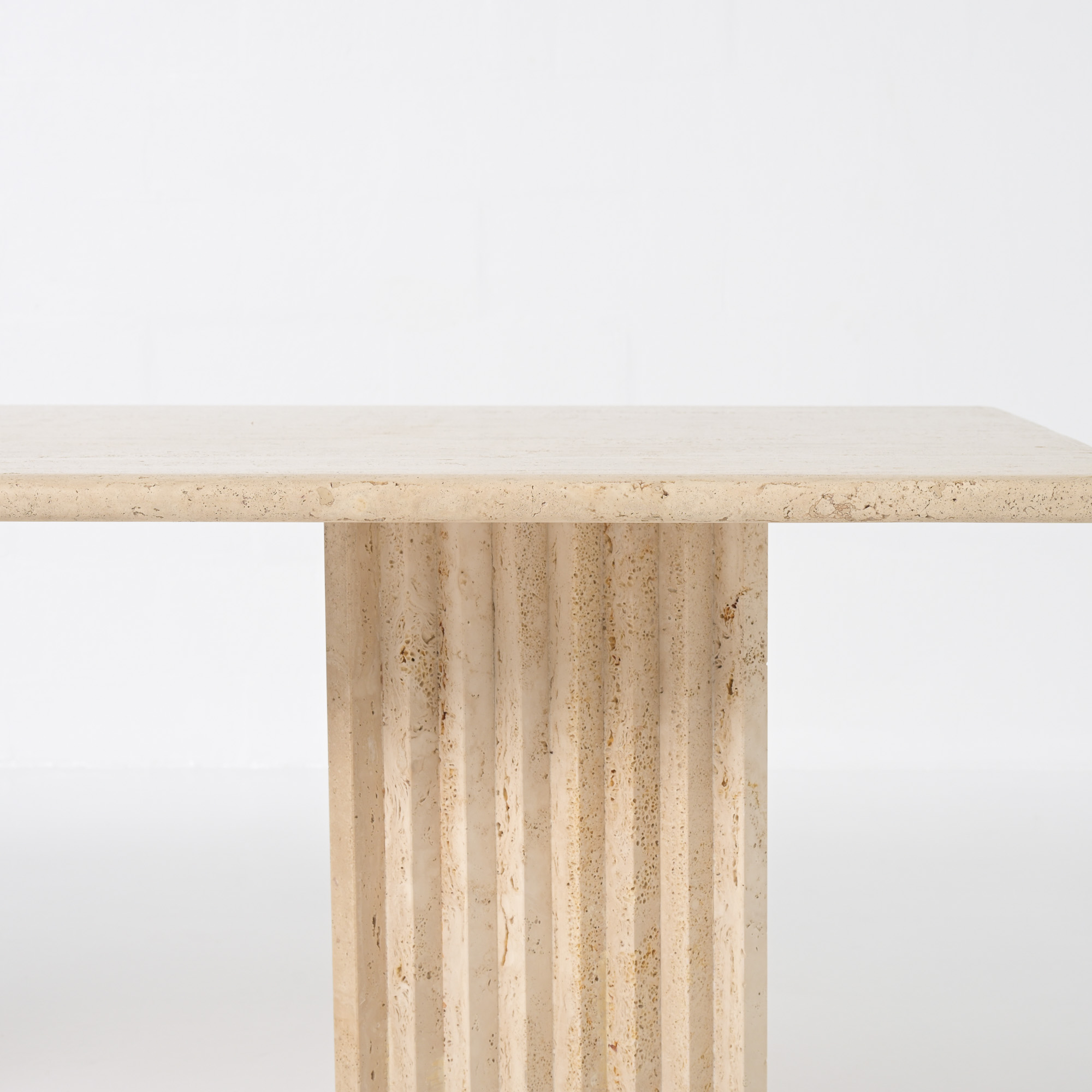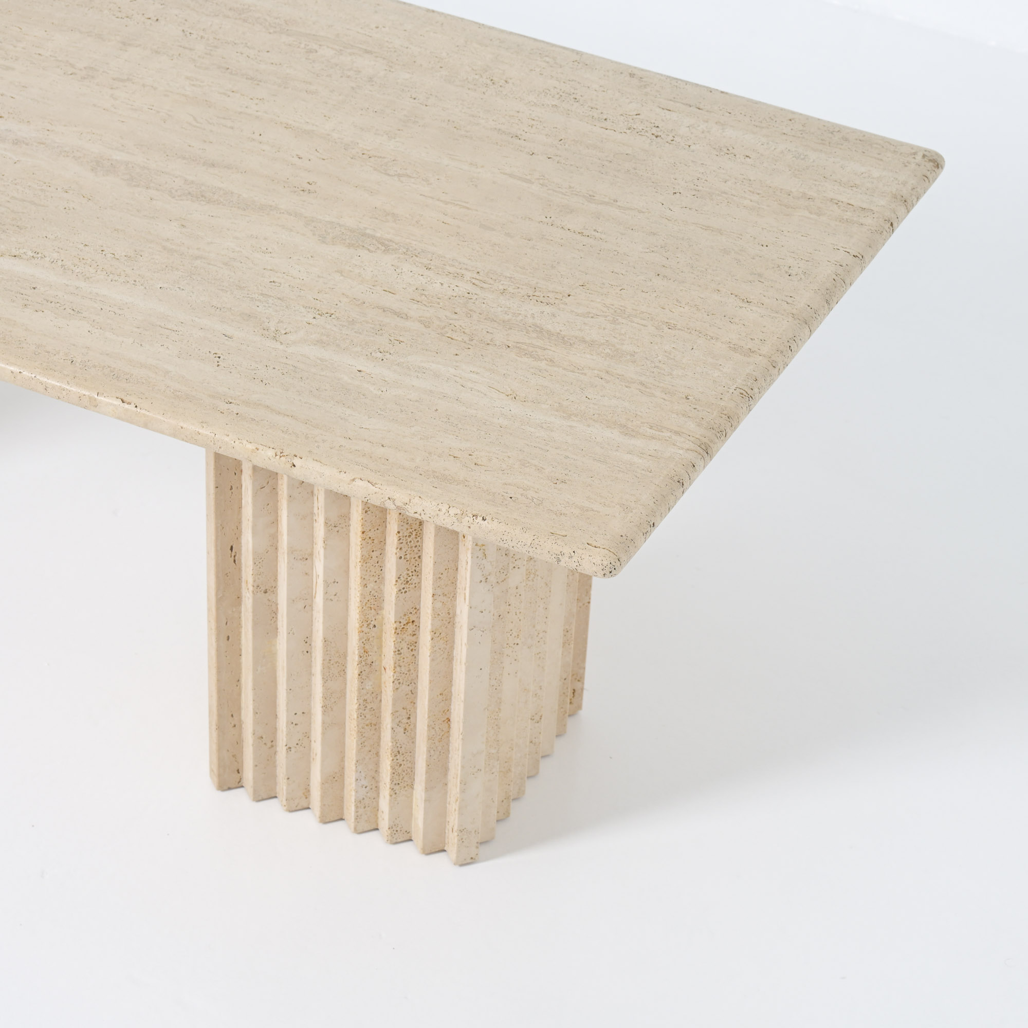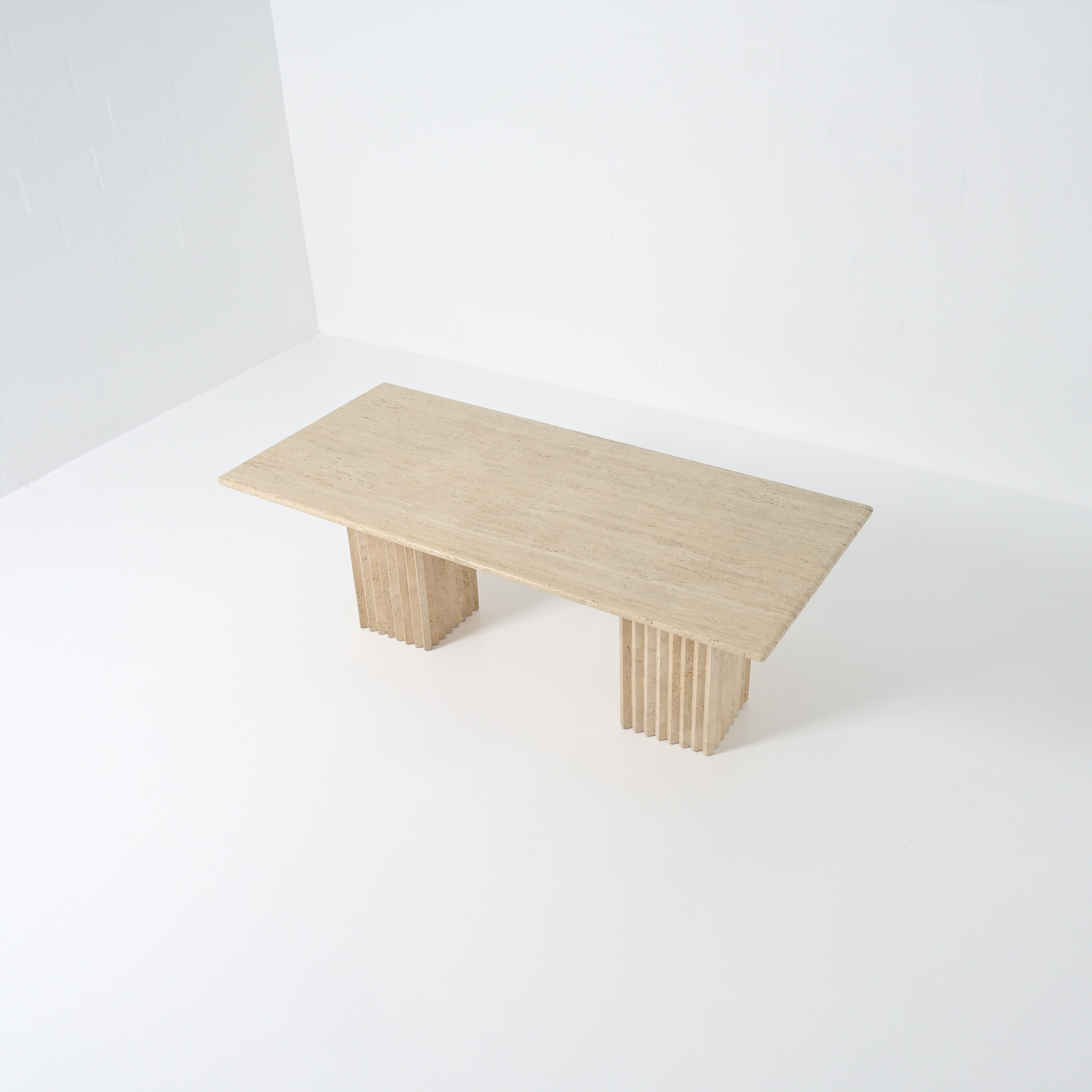 This beautiful table was made in the 1970s and is fully crafted from travertine, a natural stone with warm tones and unique texture. Its simple and graphic design gives it a timeless and elegant look.