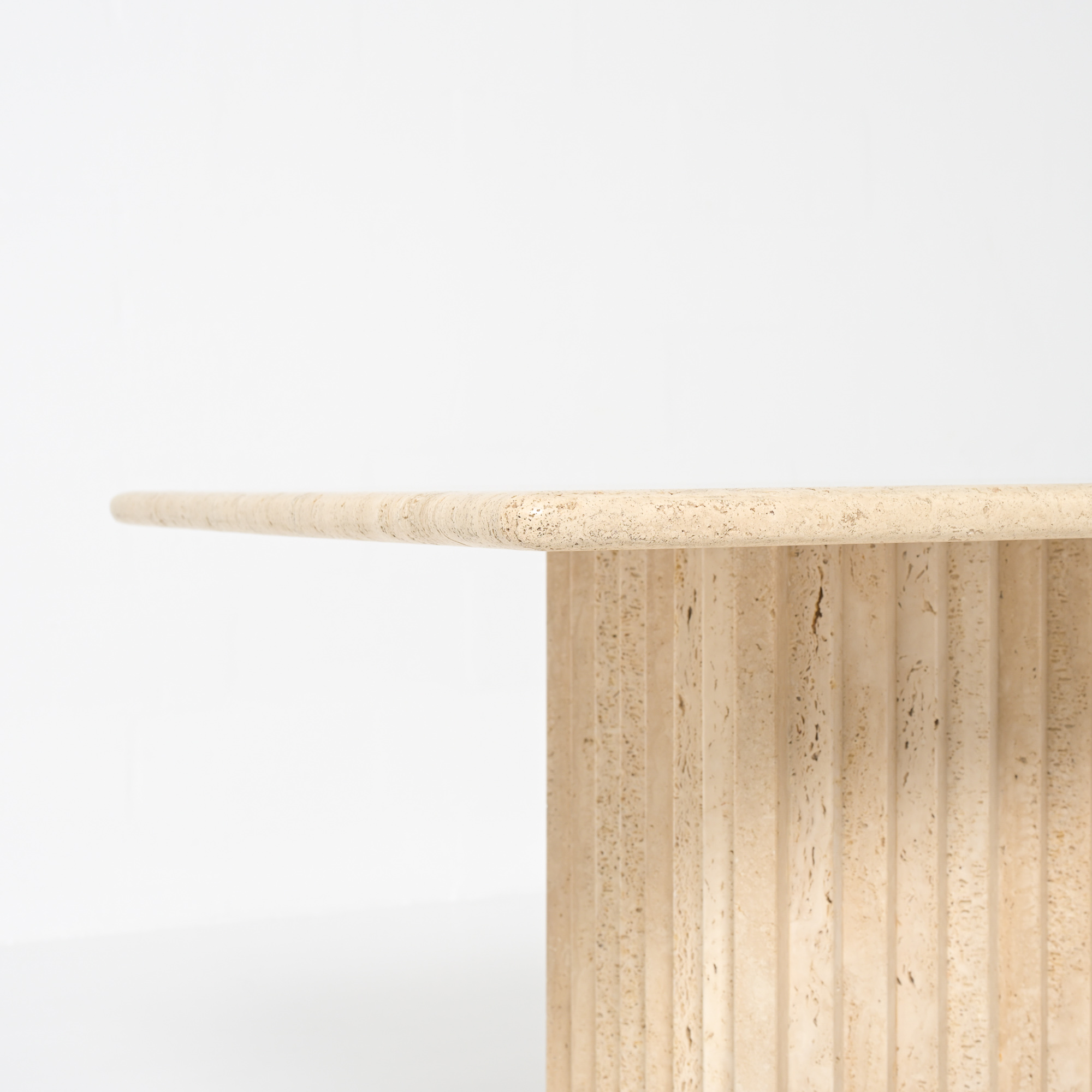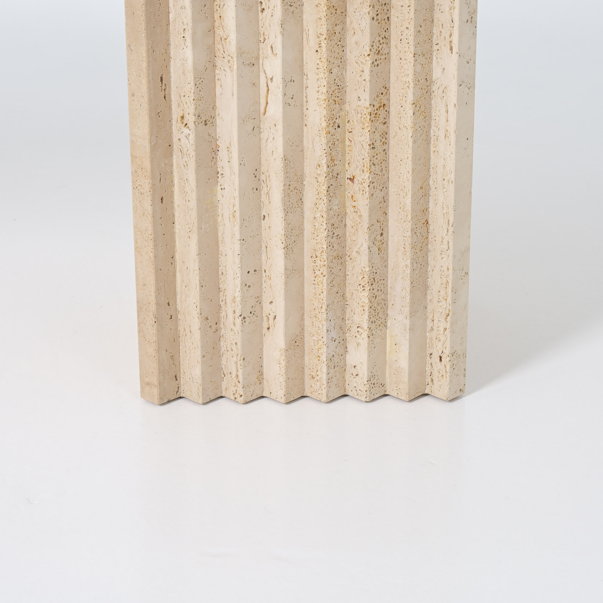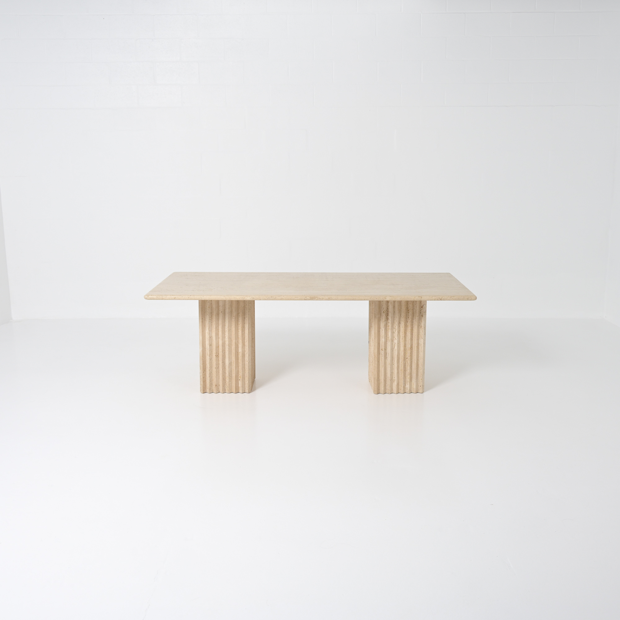 This beautiful table was made in the 1970s and is fully crafted from travertine, a natural stone with warm tones and unique texture. Its simple and graphic design gives it a timeless and elegant look.