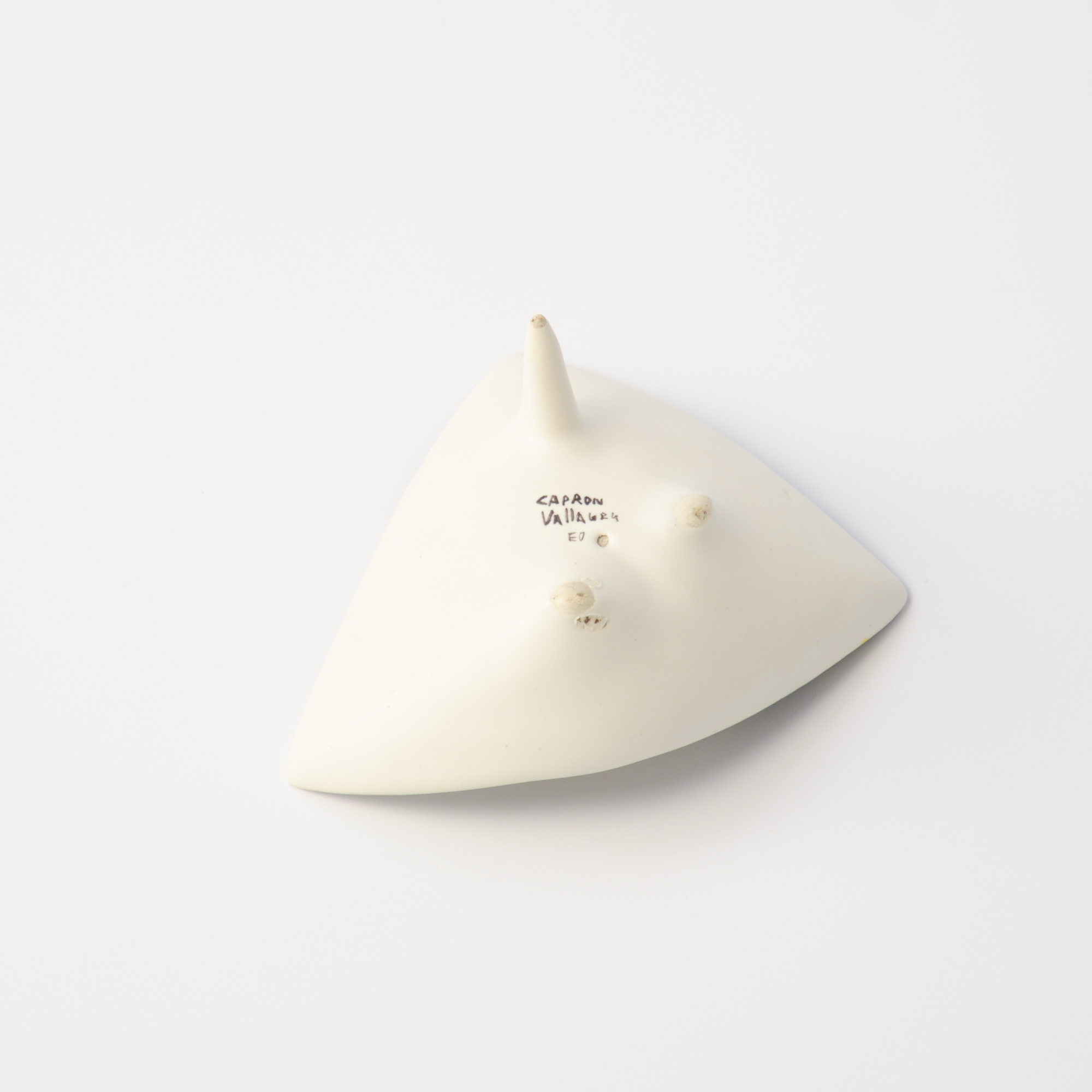 This small triangular shaped ceramic bowl was made by Roger Capron in his studio in Vallauris. It can be dated in the 1950s.