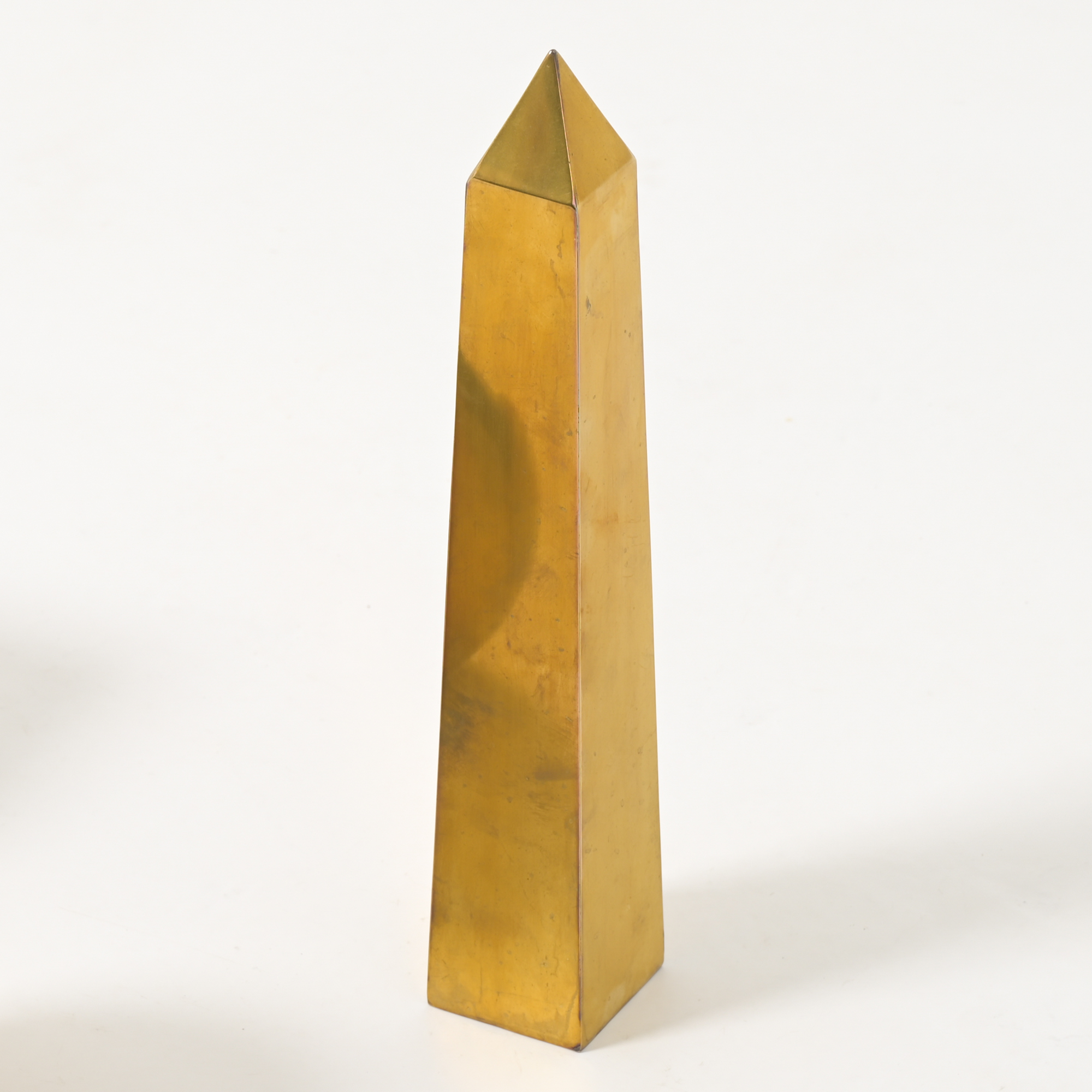 The obelisk and cube were both made by Sarreid and have the same look and finish. Both are in good condition.
