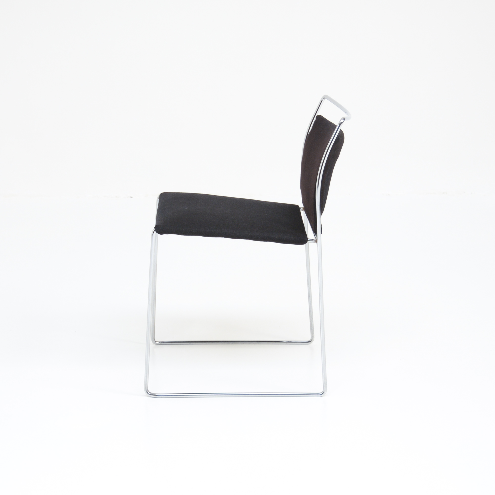 The rod makes it possible to produce softly curved, extremely rounded structures. The frame is chrome-plated. The back and seat are made of black high quality wool fabric upholstery, completely removable.