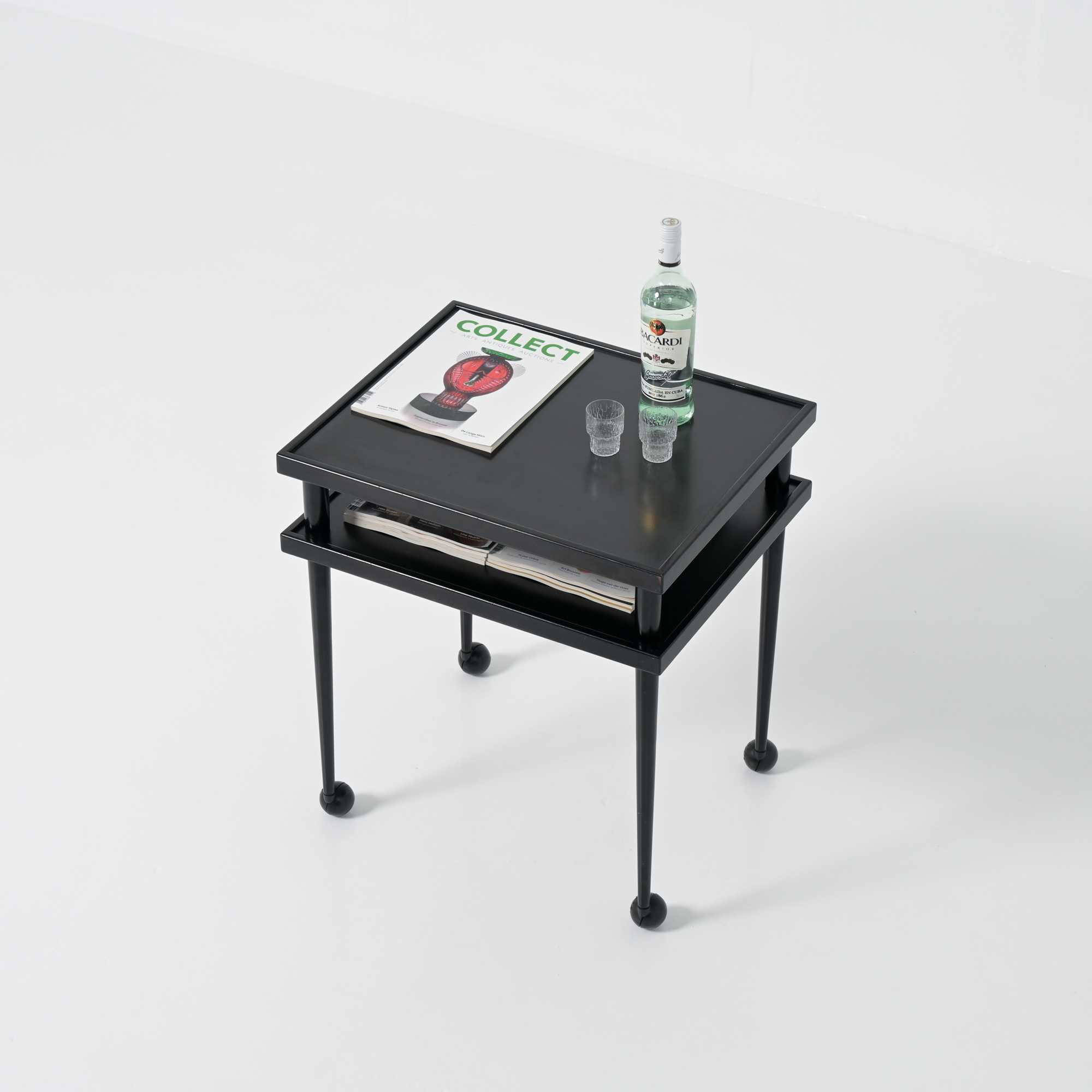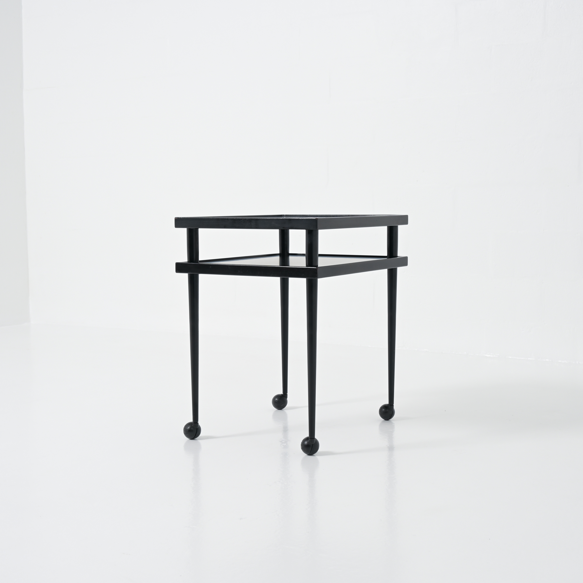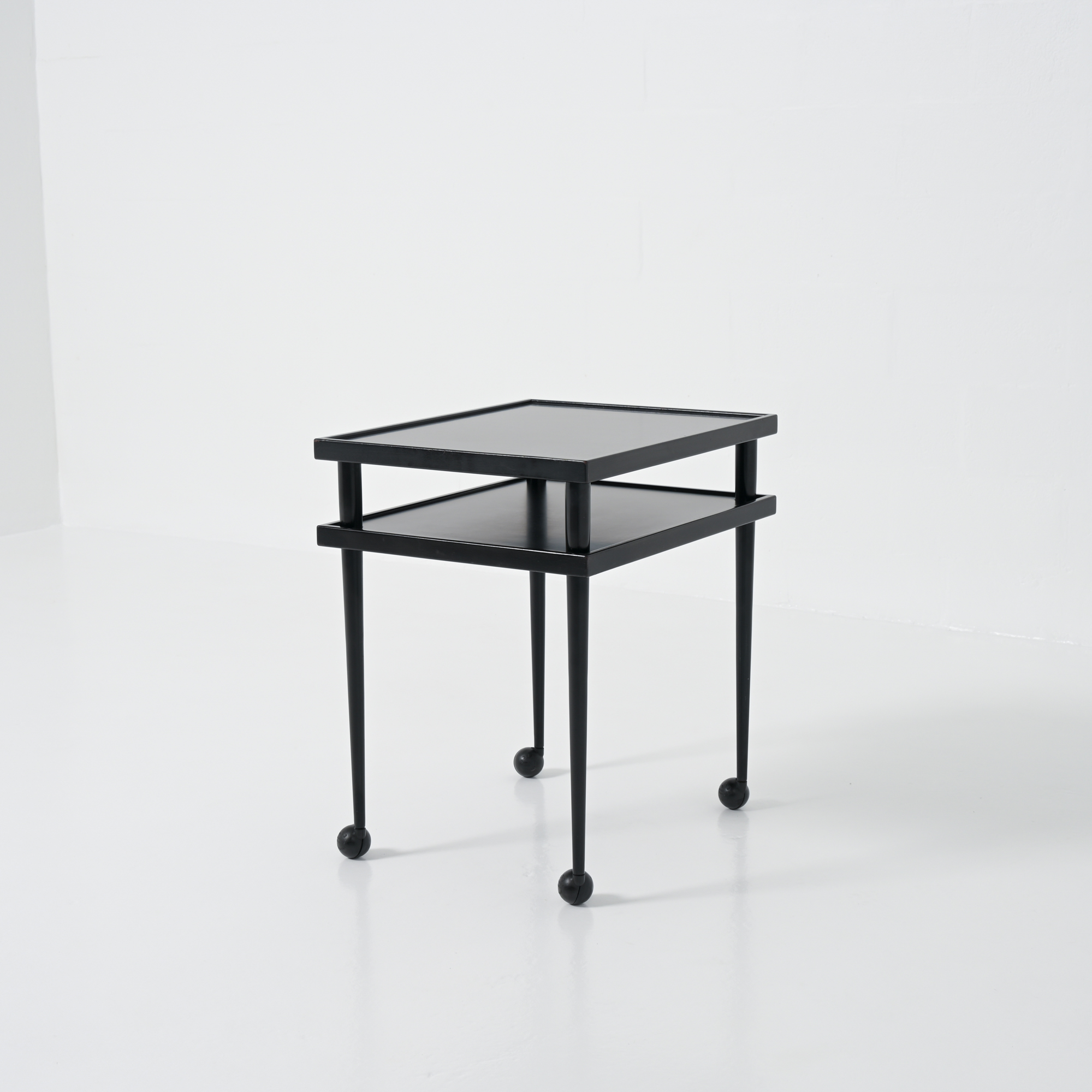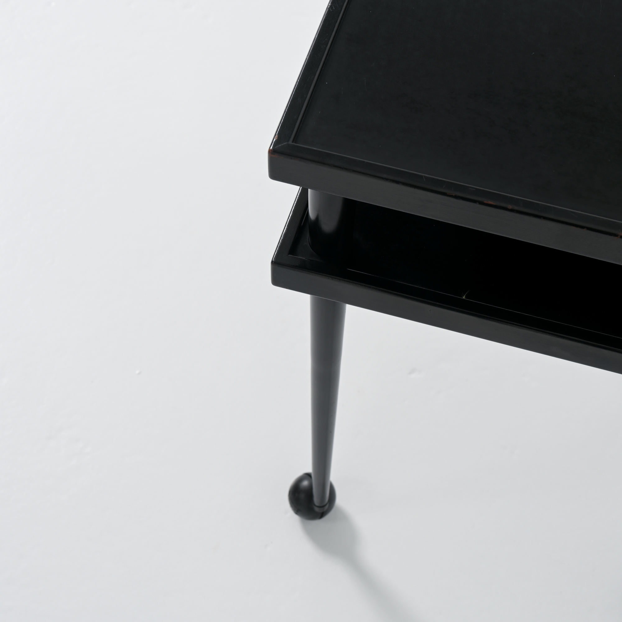 It features both black laminated wood and black lacquered wood.