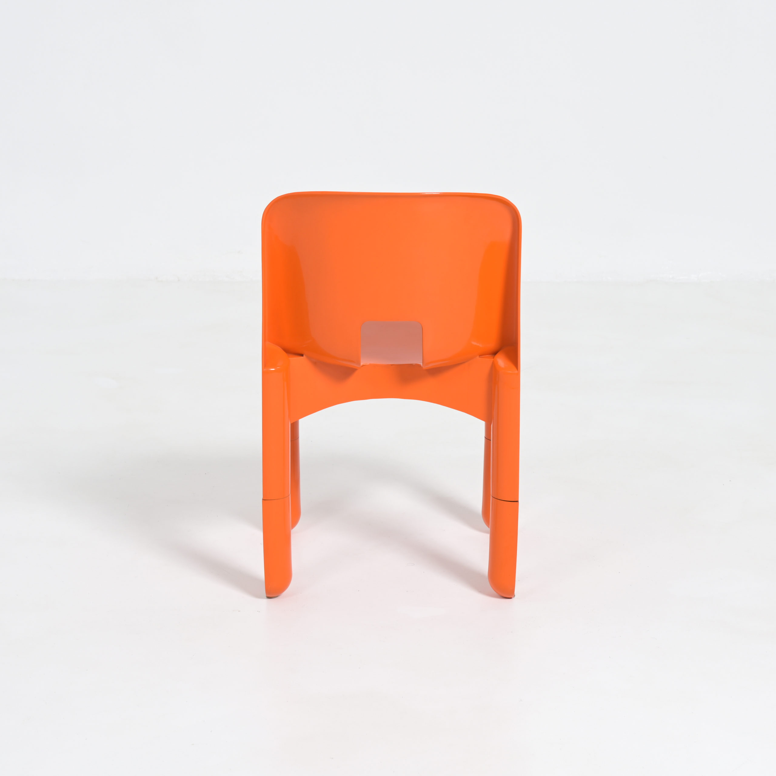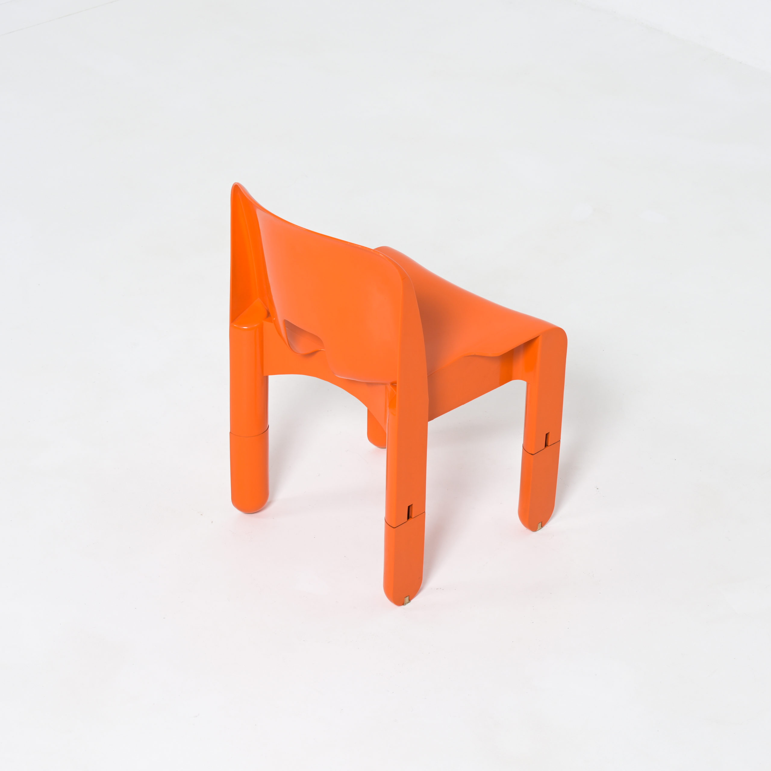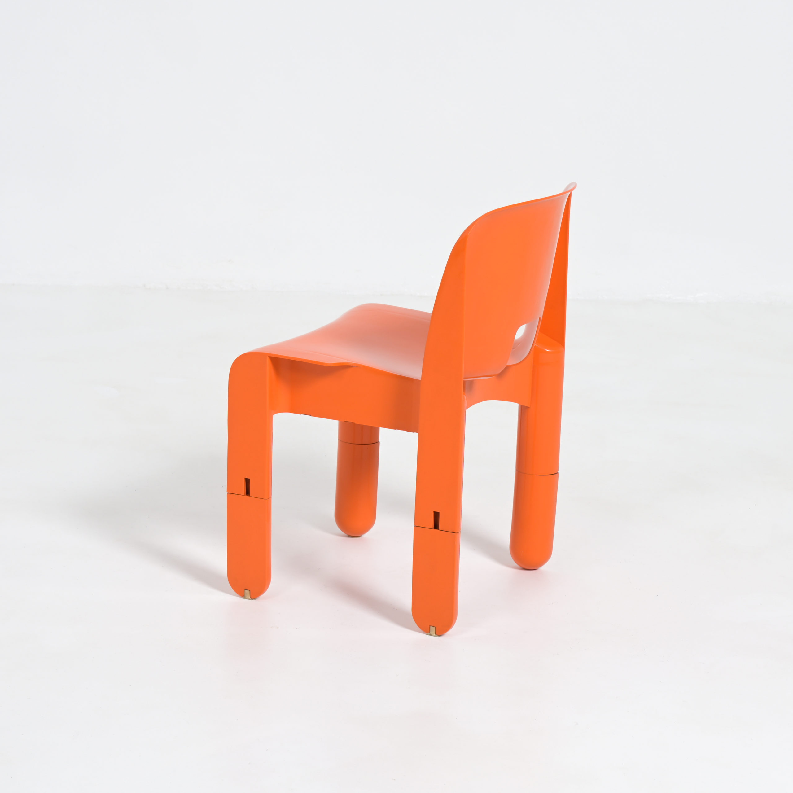 Joe Colombo designed the Universale chair in 1965. In 1967 is was published by Kartell. This orange chair is from the late 1960s, visible on the legs.
