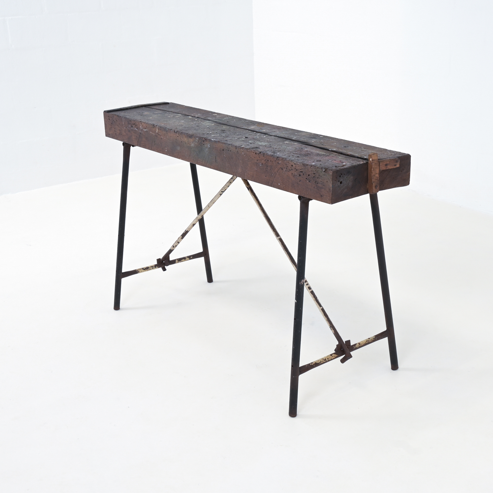 This vintage foldable work table comes from an old workplace. It is created in the 1940s, adapted and used over the years.