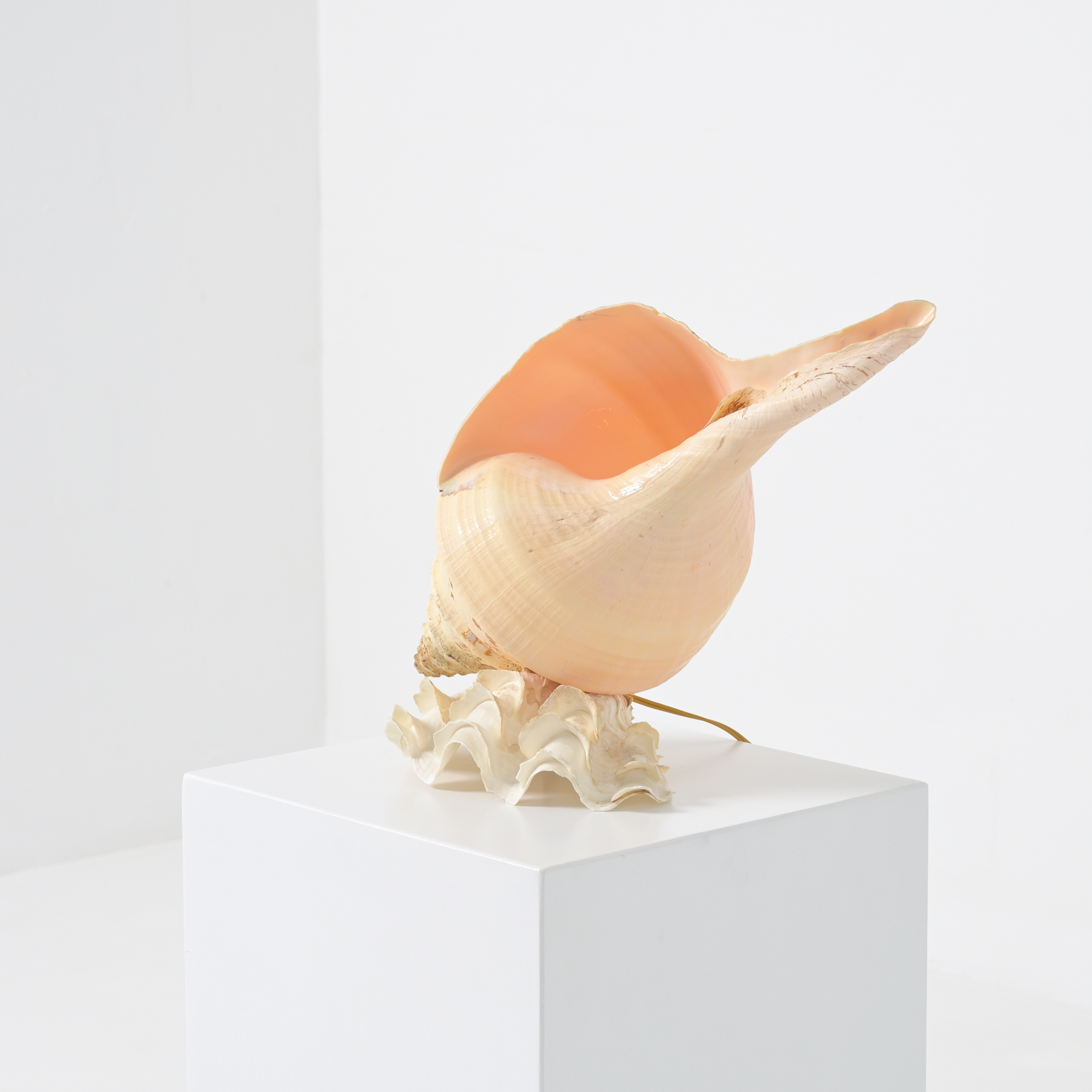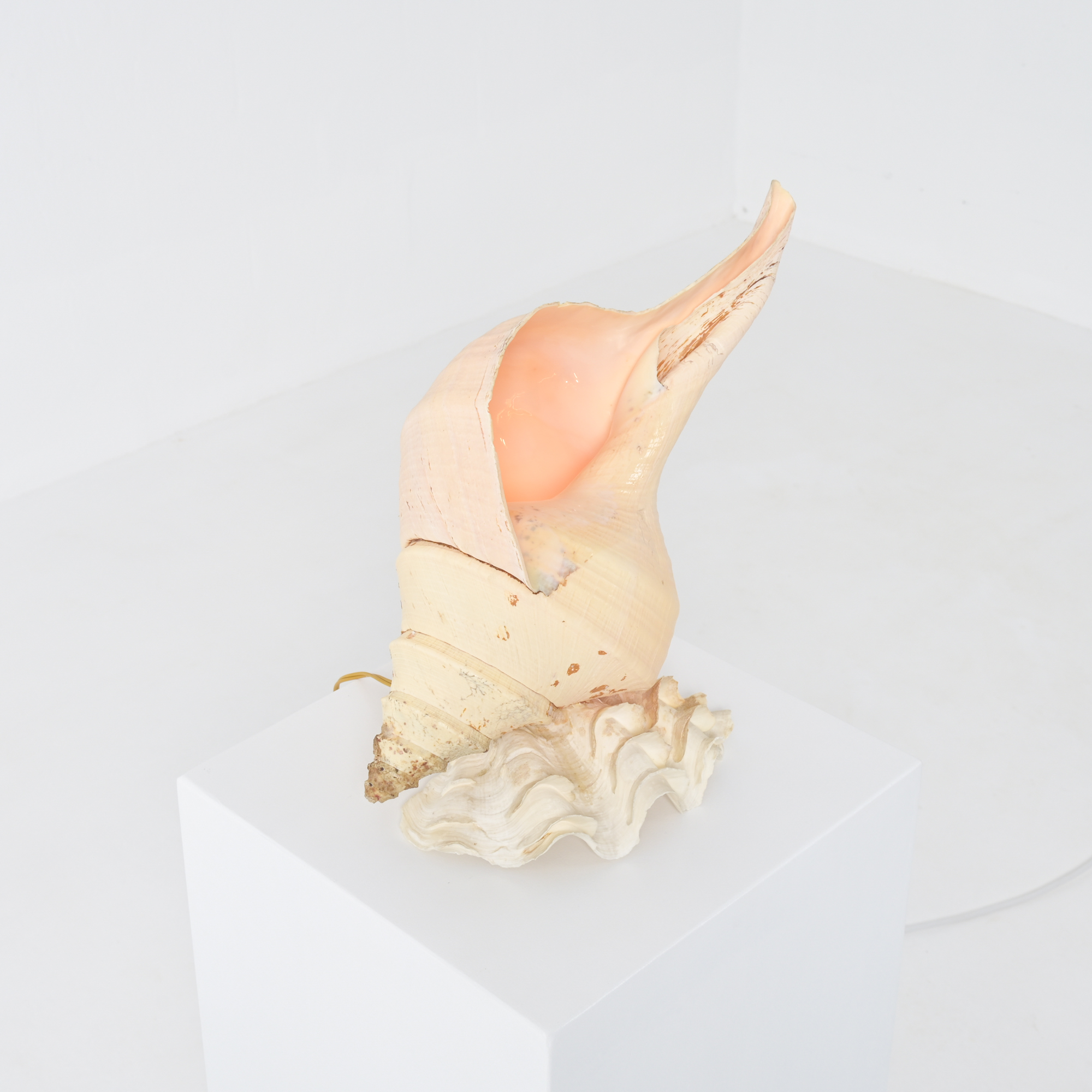 This vintage lamp is made from a large Syrinx Aruanus specimen.