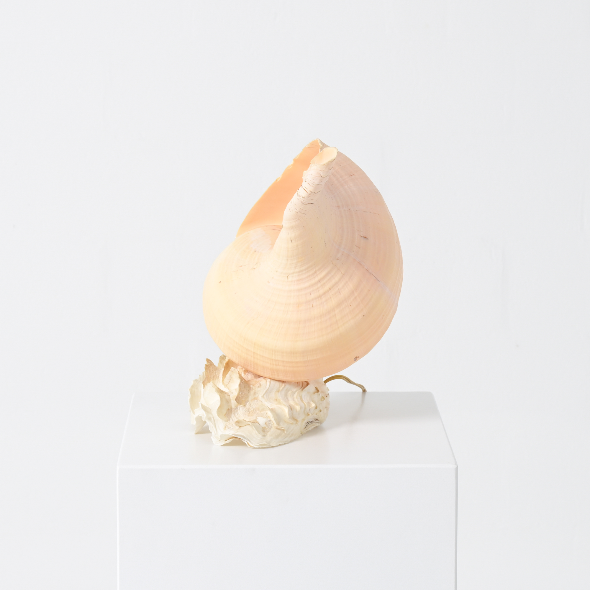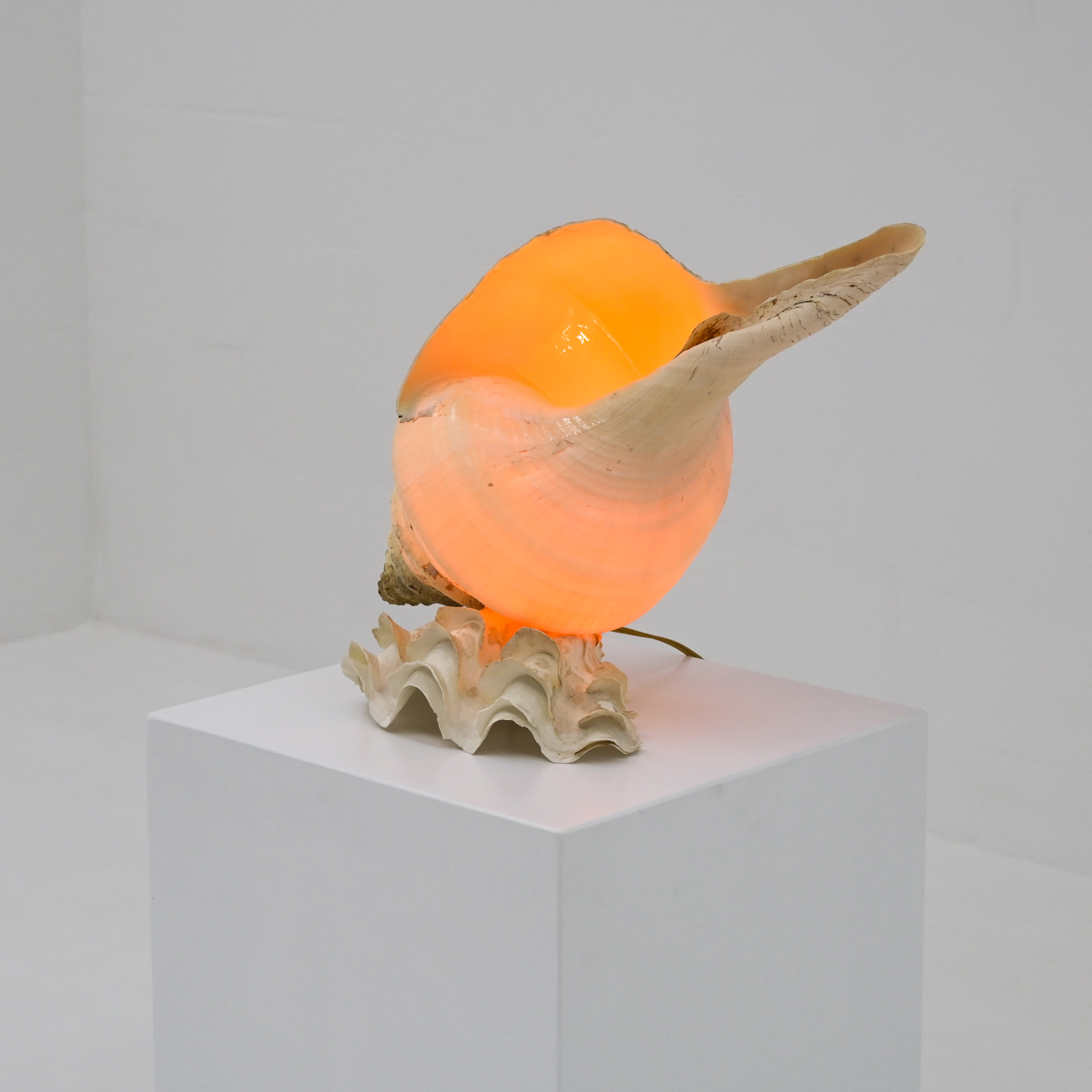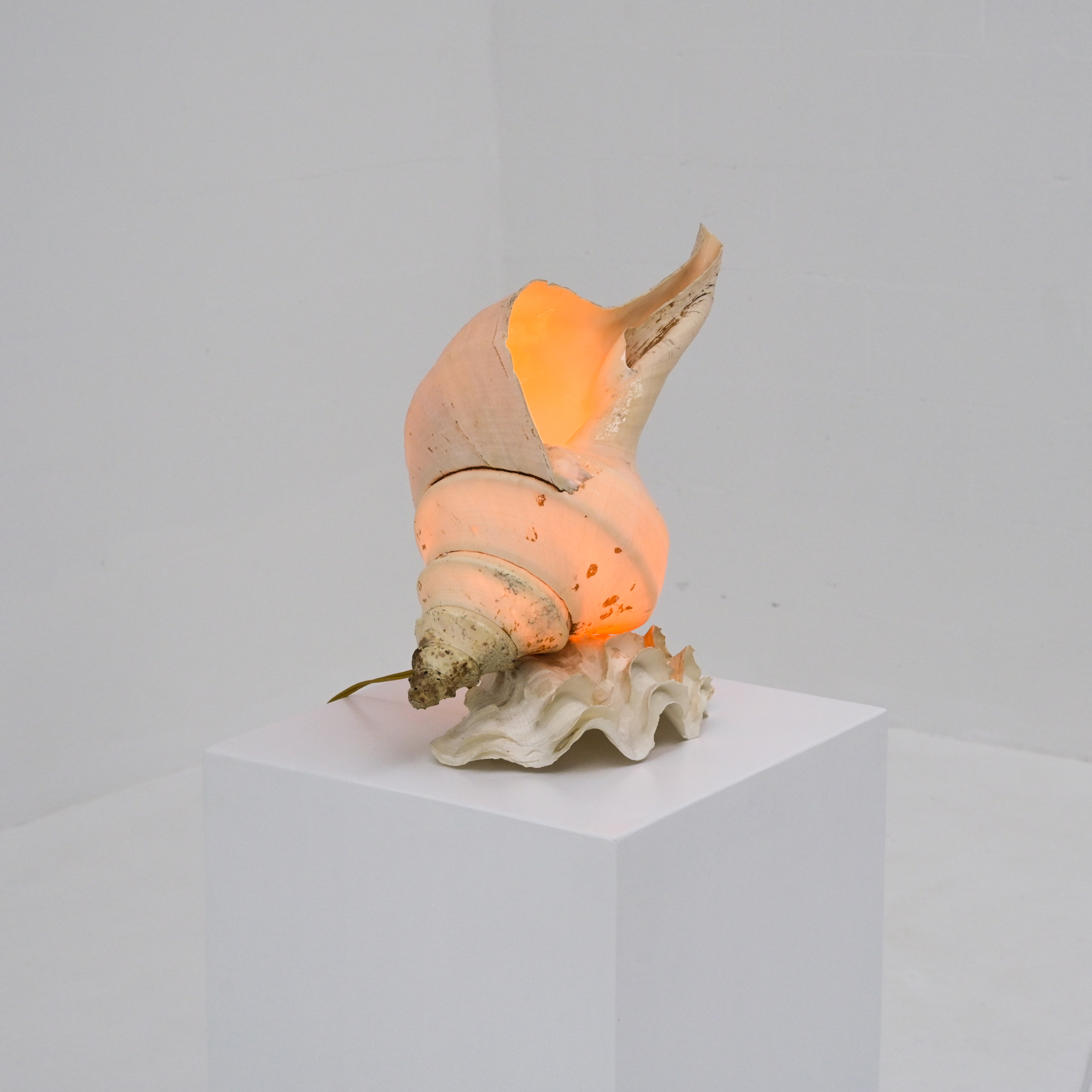 The light interacts with the organic patterns of the shells. The lamp is completely handmade.
