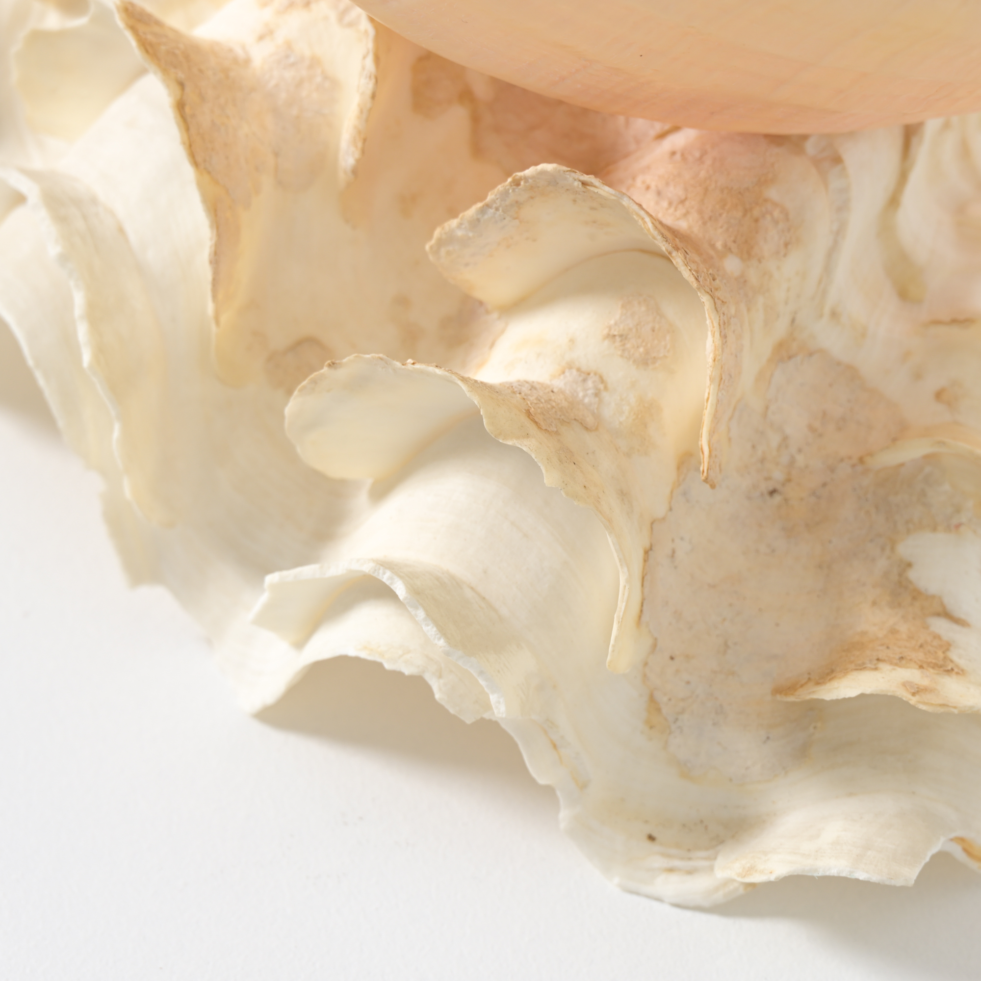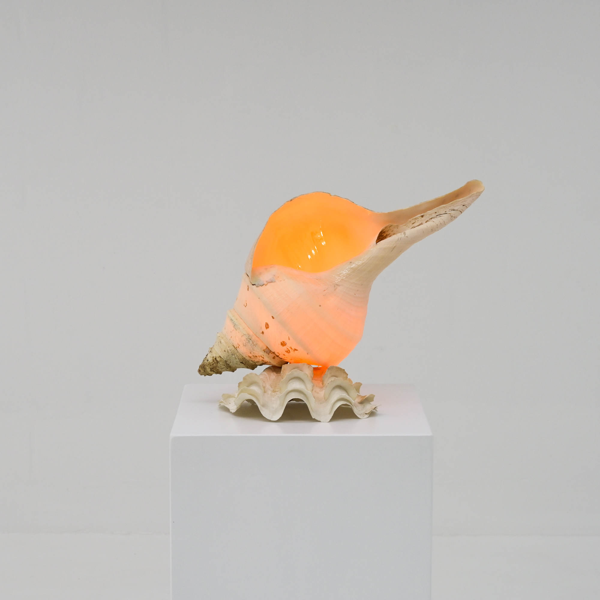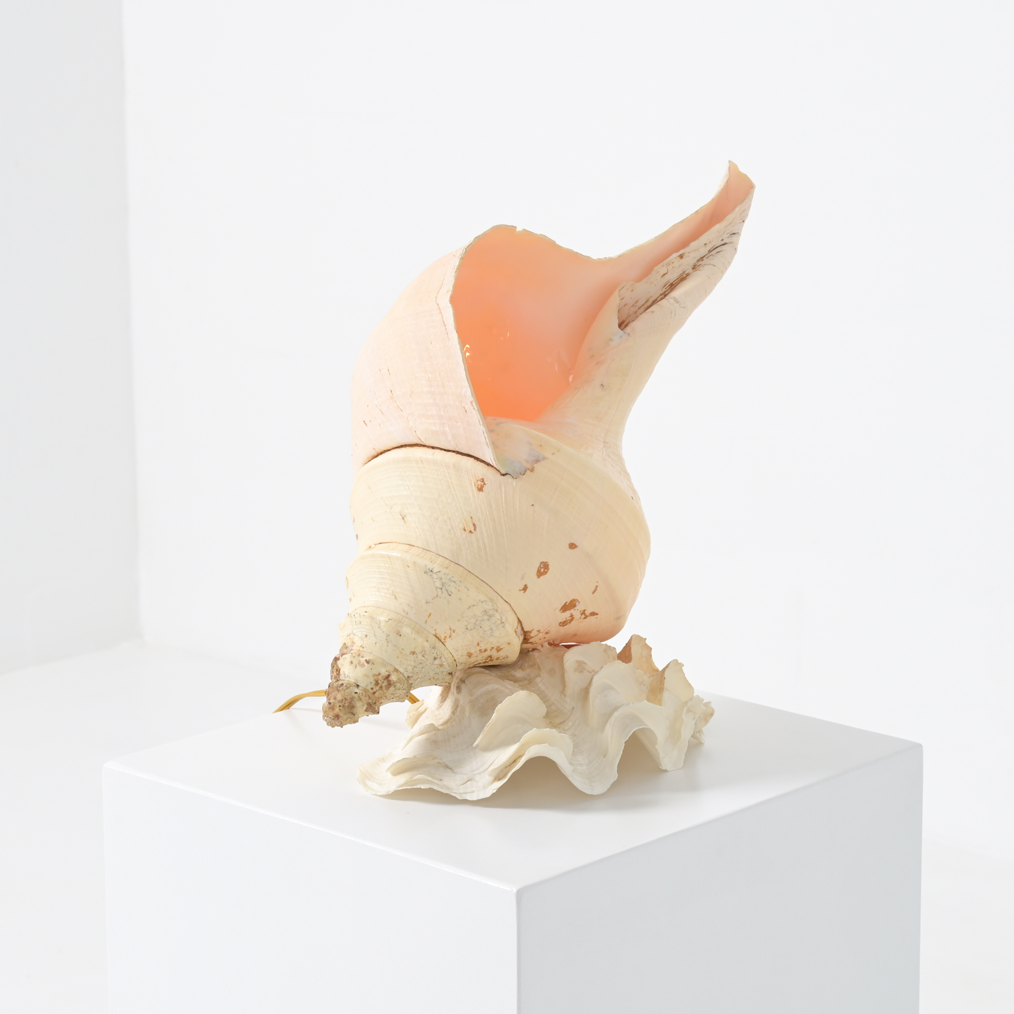 The light interacts with the organic patterns of the shells. The lamp is completely handmade.