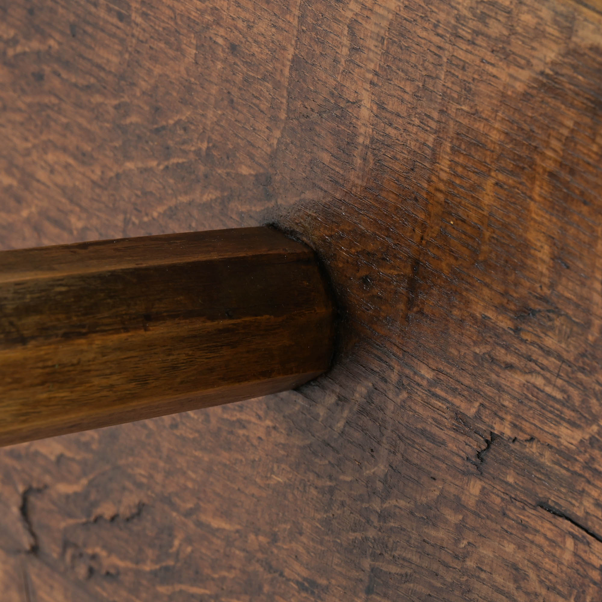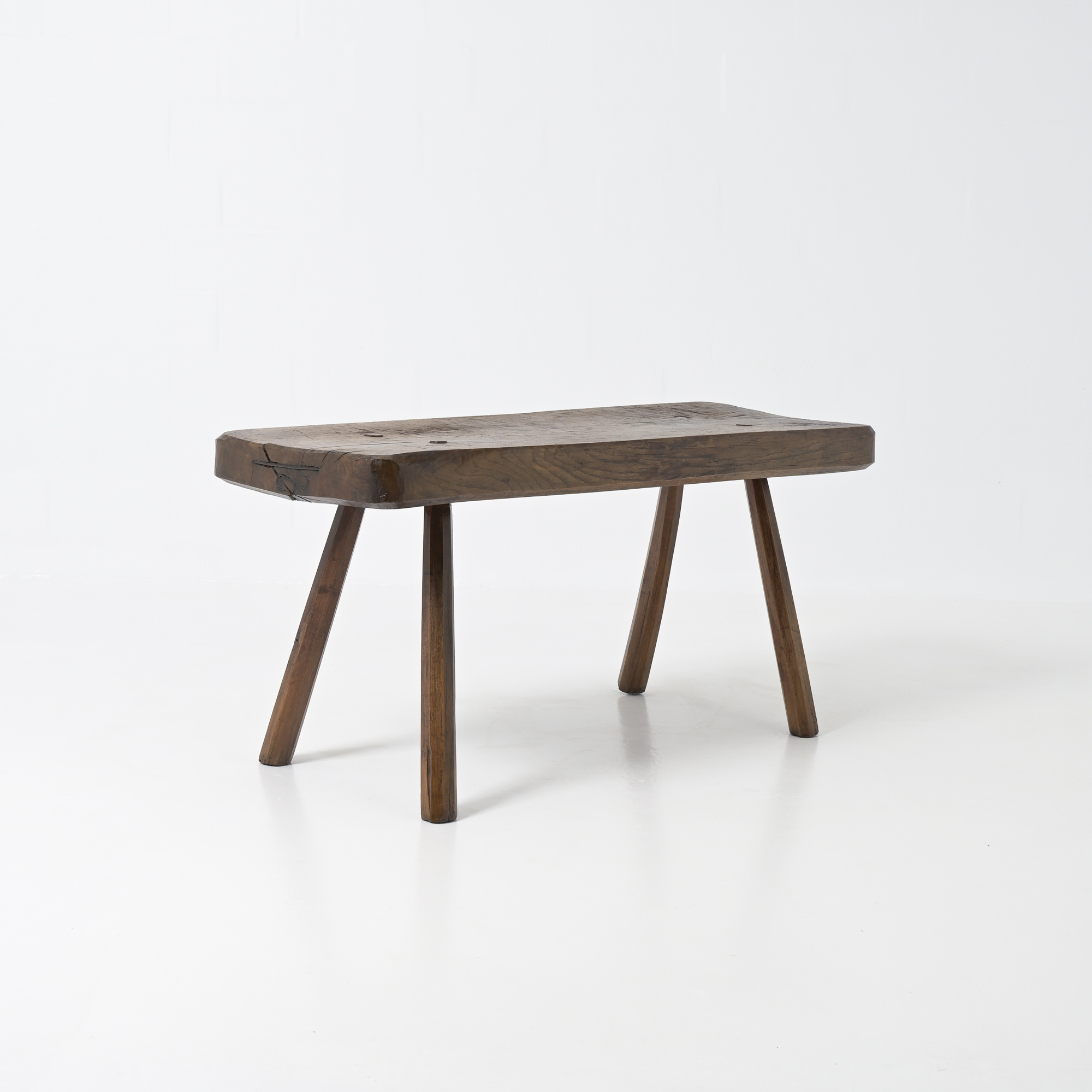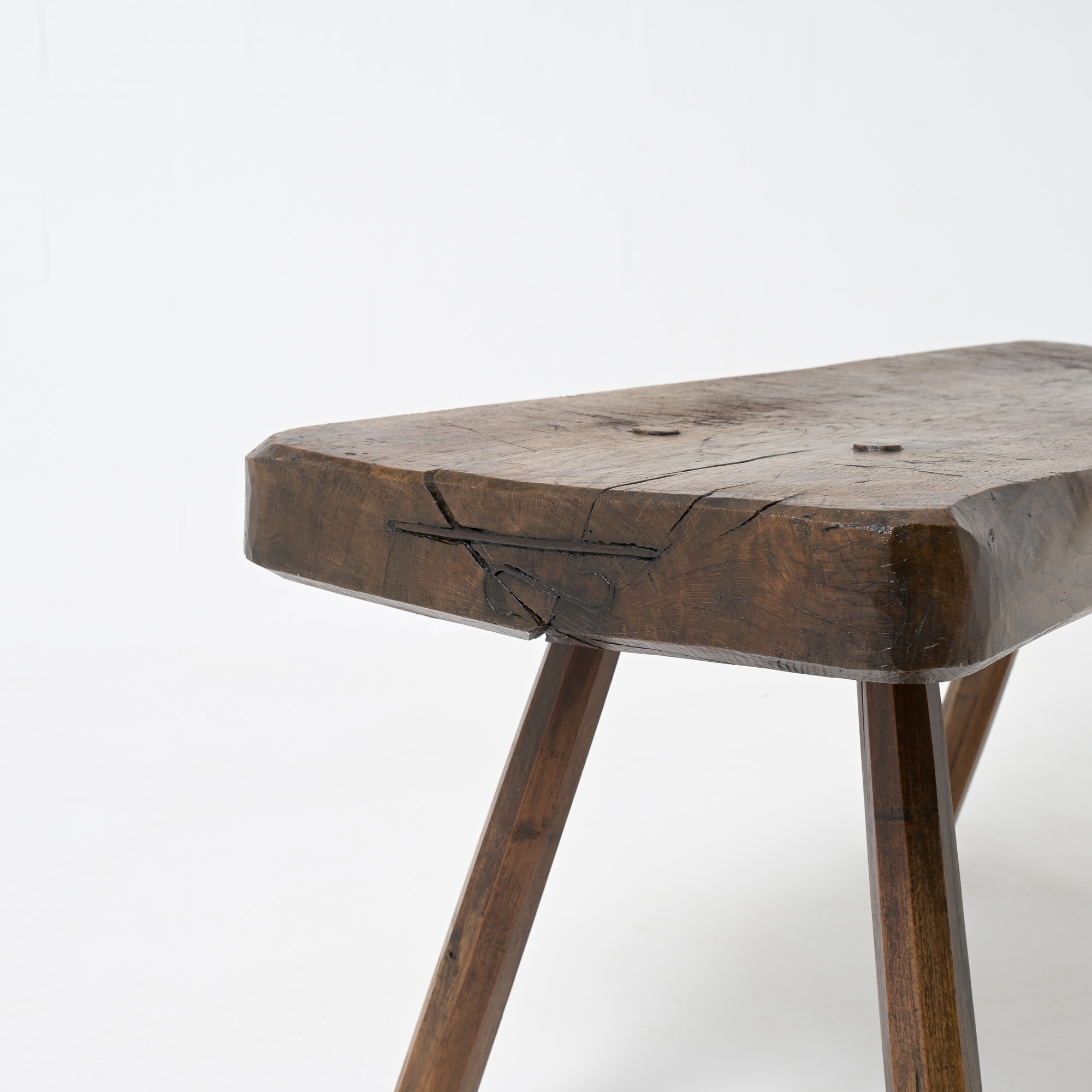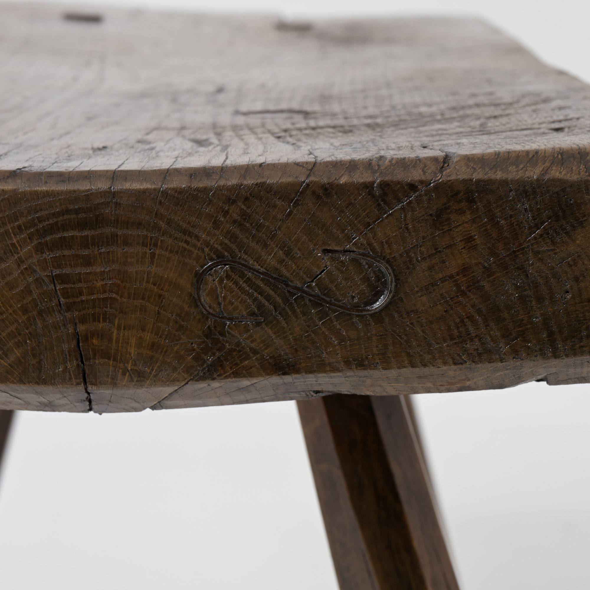 This rustic work bench is probably from France and around 1900. The legs are removable and octagonal. It is made of solid wood and is indestructible. It creates an atmosphere of modern natural living with a Wabi Sabi touch.