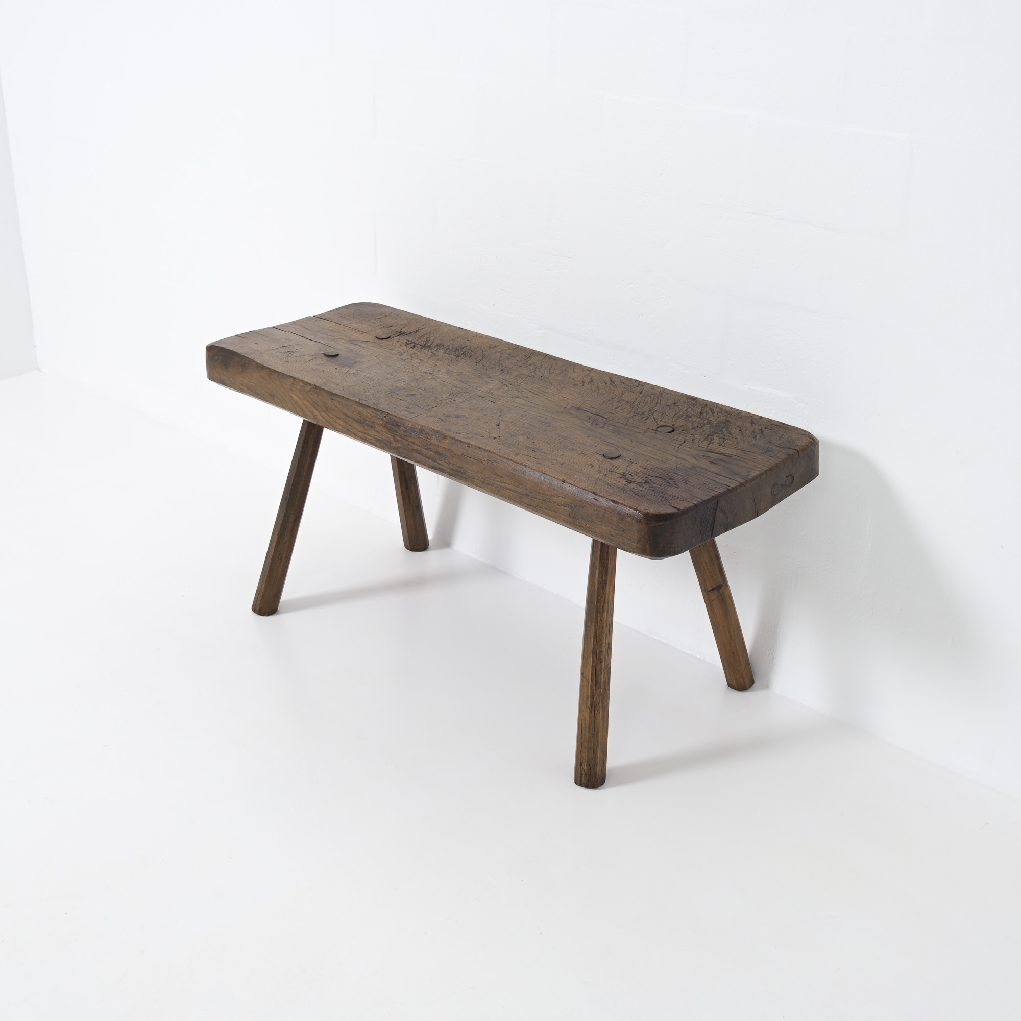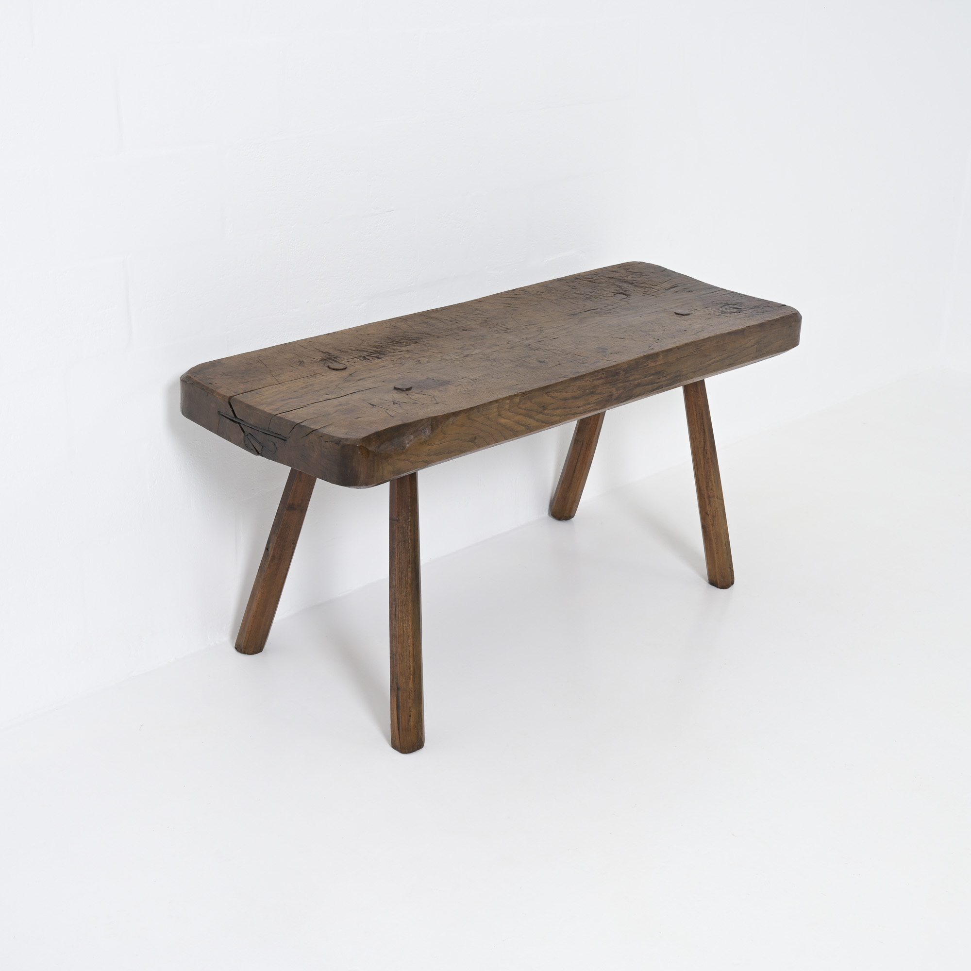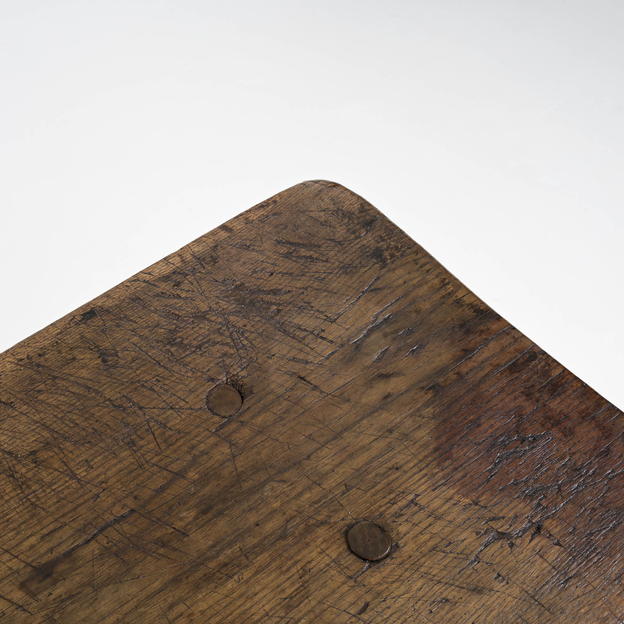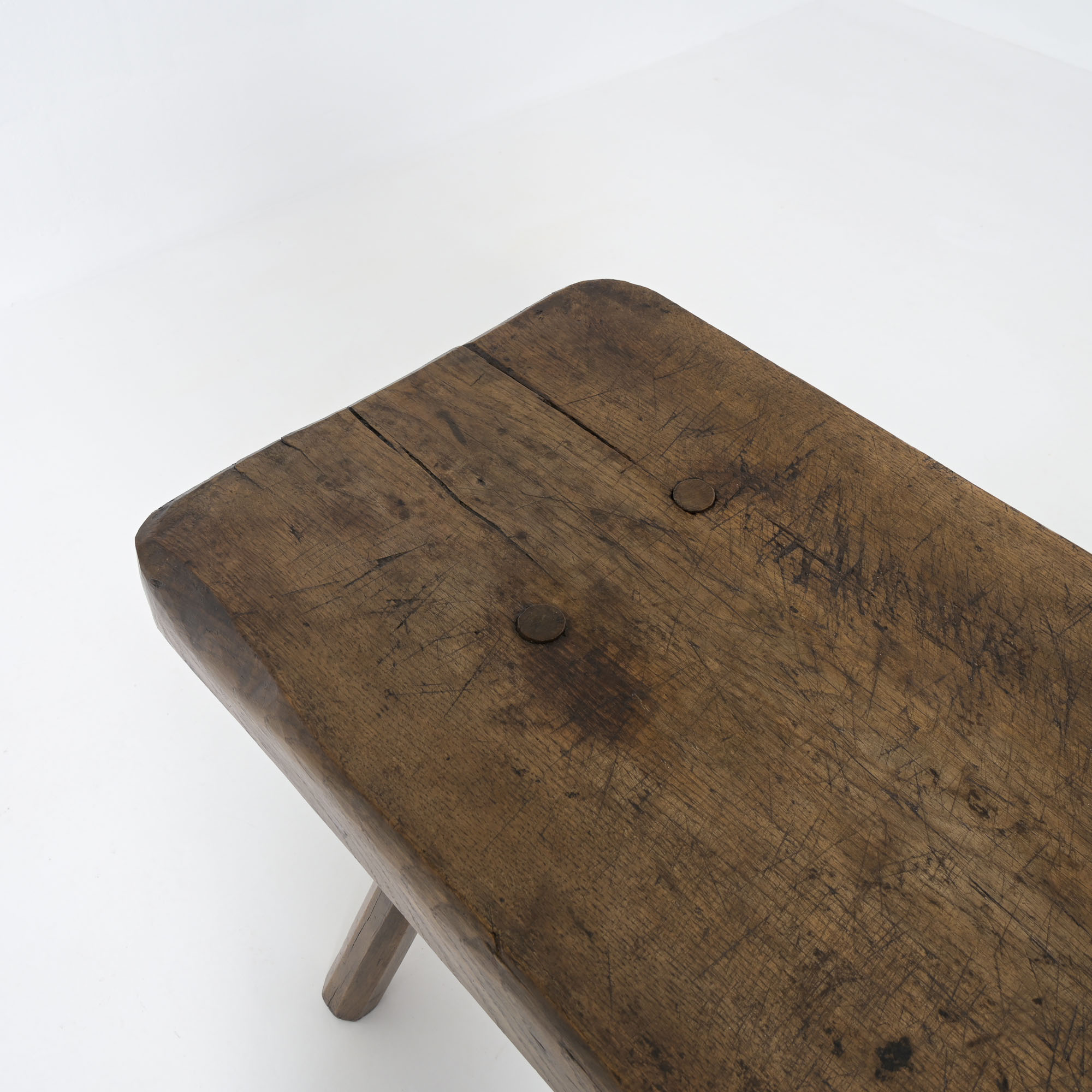 This rustic work bench is probably from France and around 1900. The legs are removable and octagonal. It is made of solid wood and is indestructible. It creates an atmosphere of modern natural living with a Wabi Sabi touch.