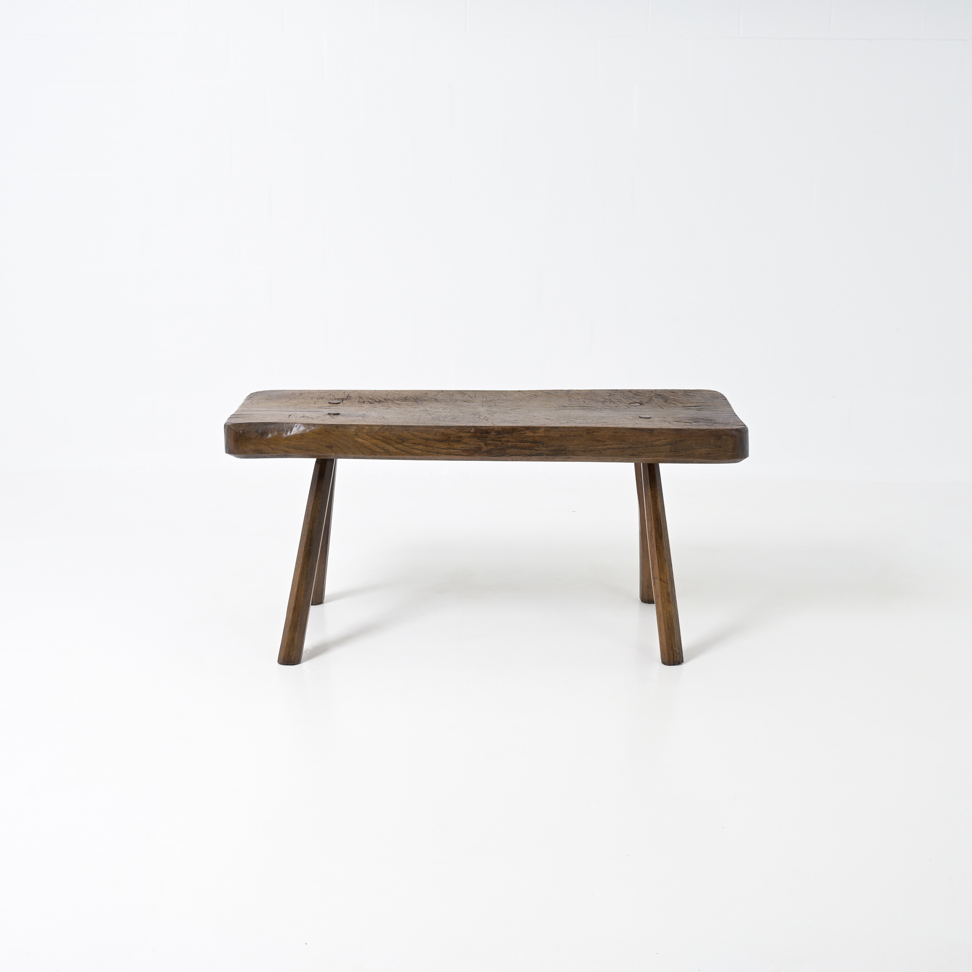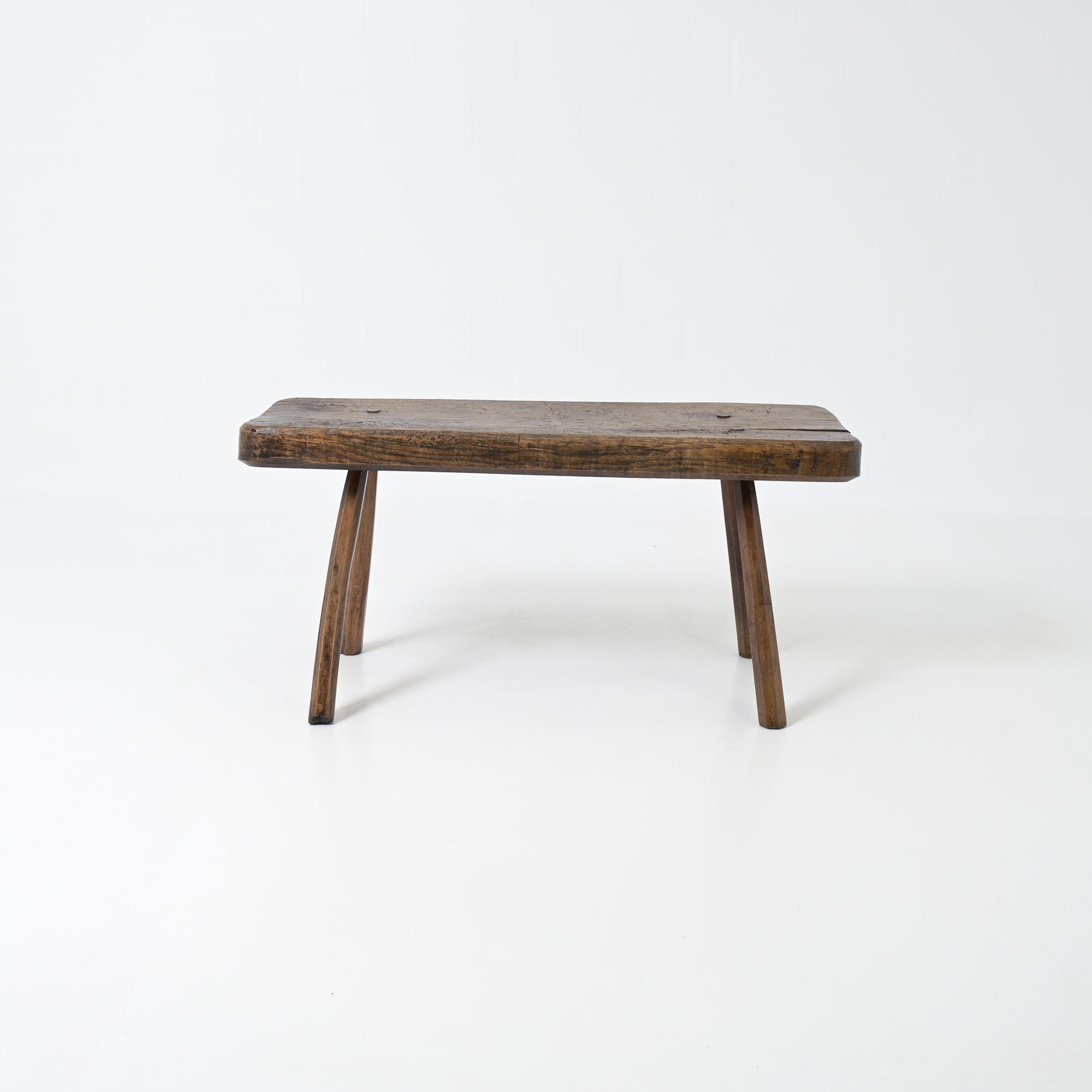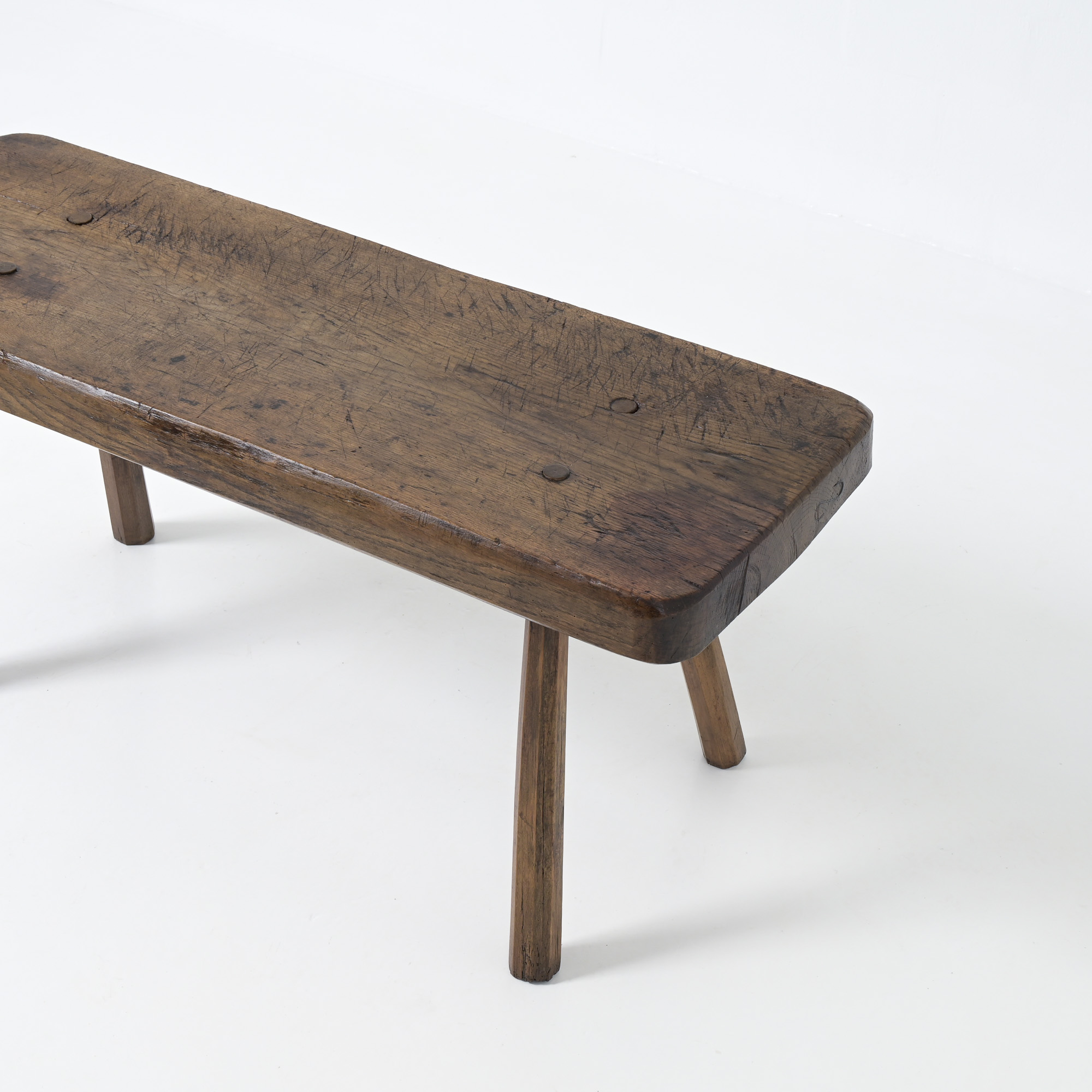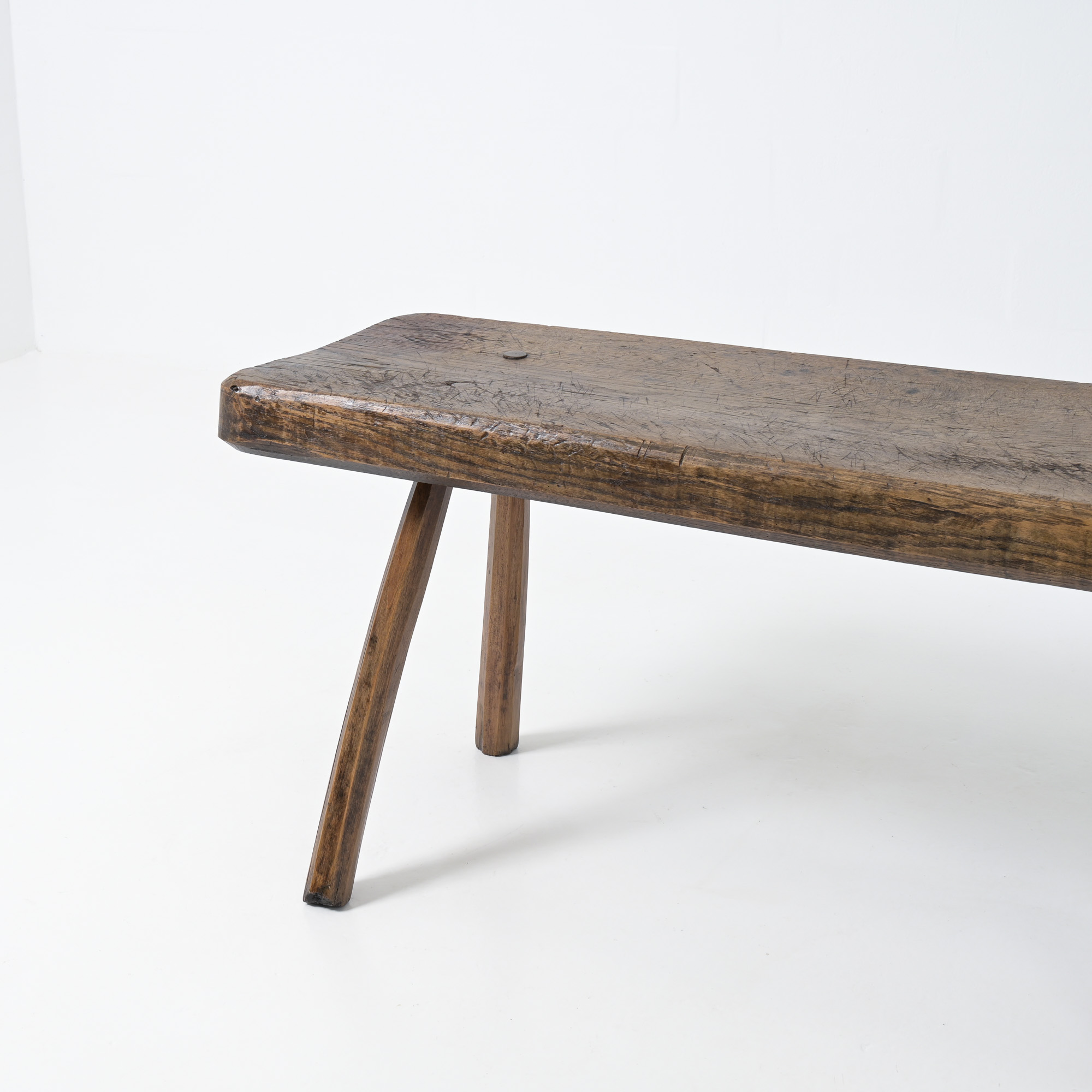 This rustic work bench is probably from France and around 1900. The legs are removable and octagonal. It is made of solid wood and is indestructible. It creates an atmosphere of modern natural living with a Wabi Sabi touch.
