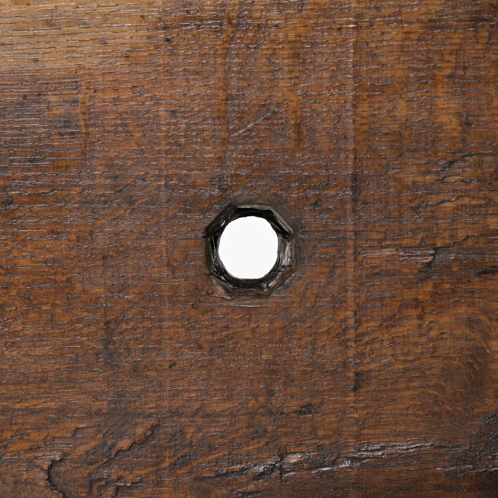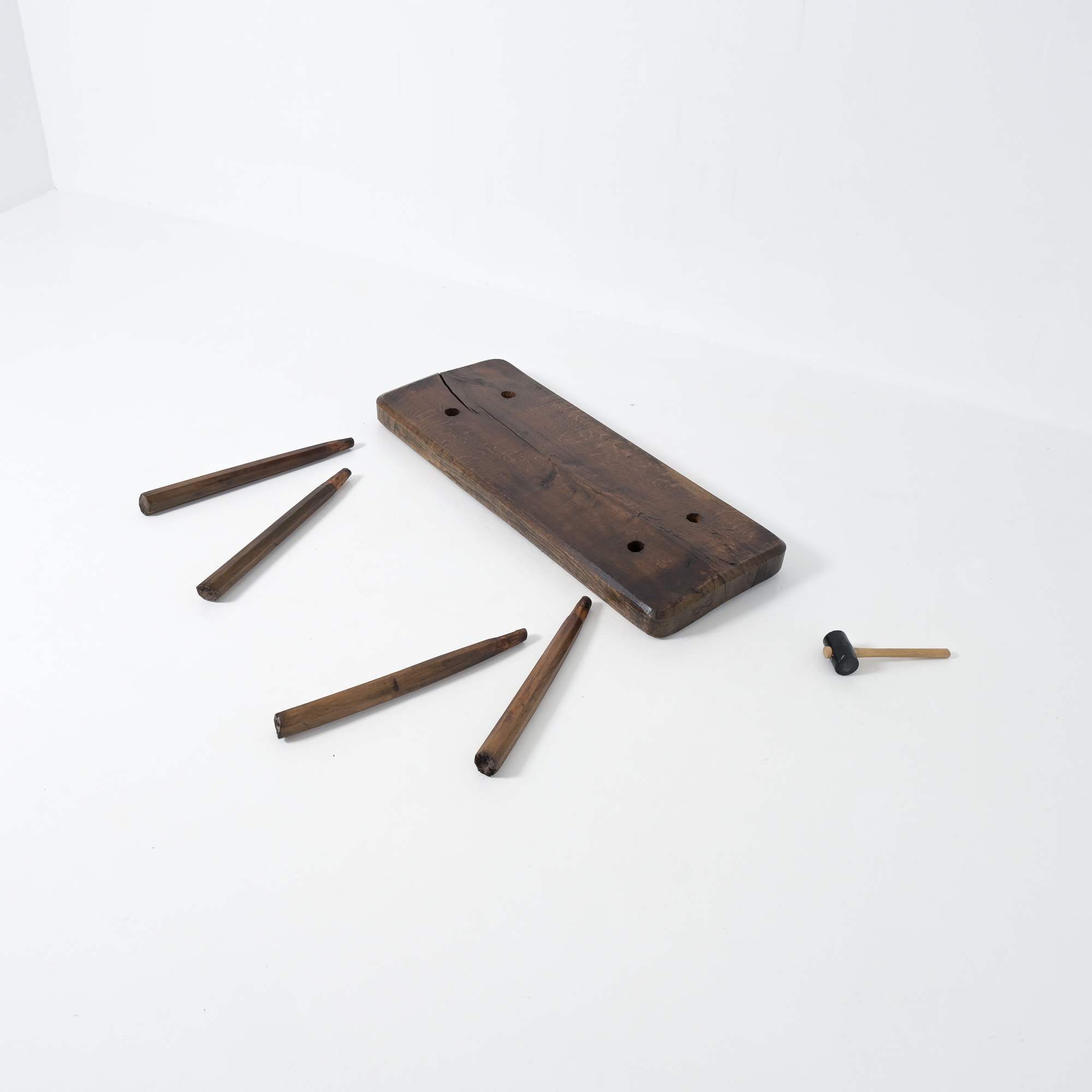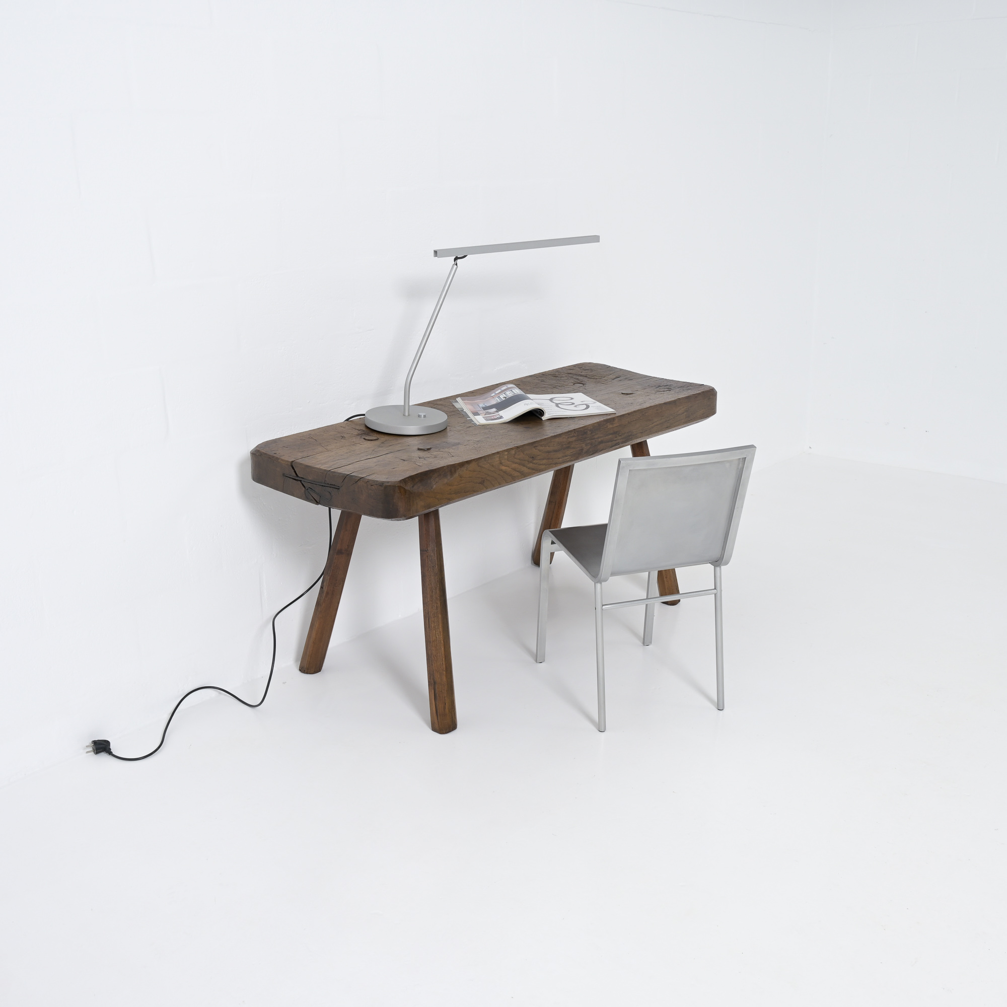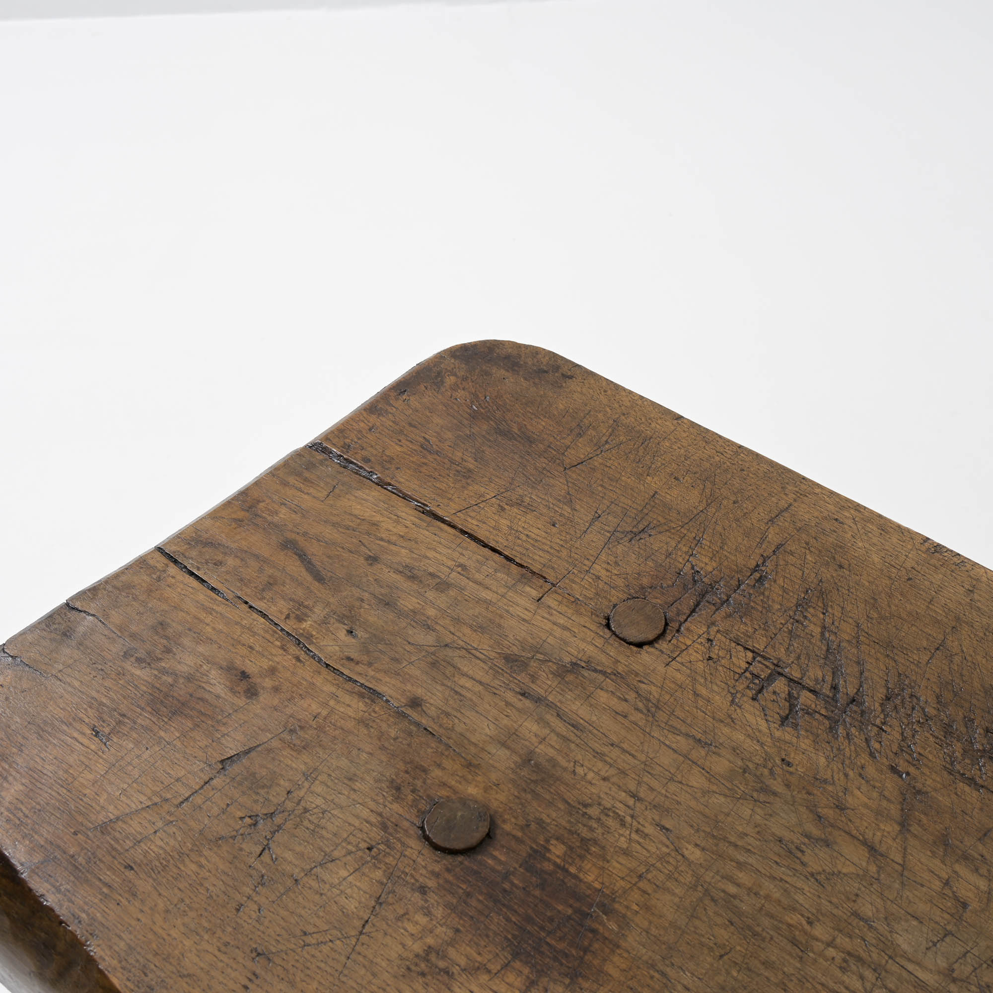 This rustic work bench is probably from France and around 1900. The legs are removable and octagonal. It is made of solid wood and is indestructible. It creates an atmosphere of modern natural living with a Wabi Sabi touch.