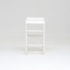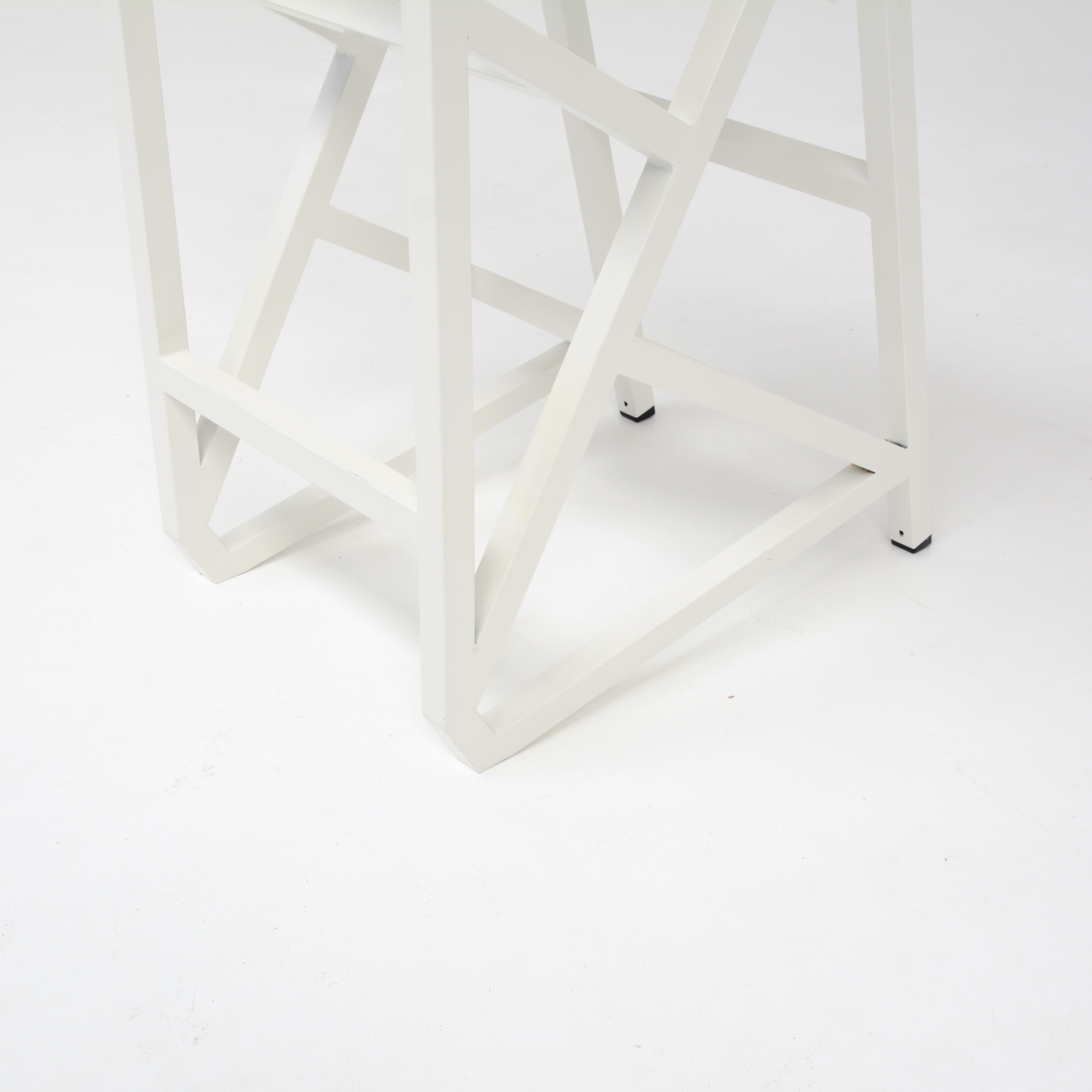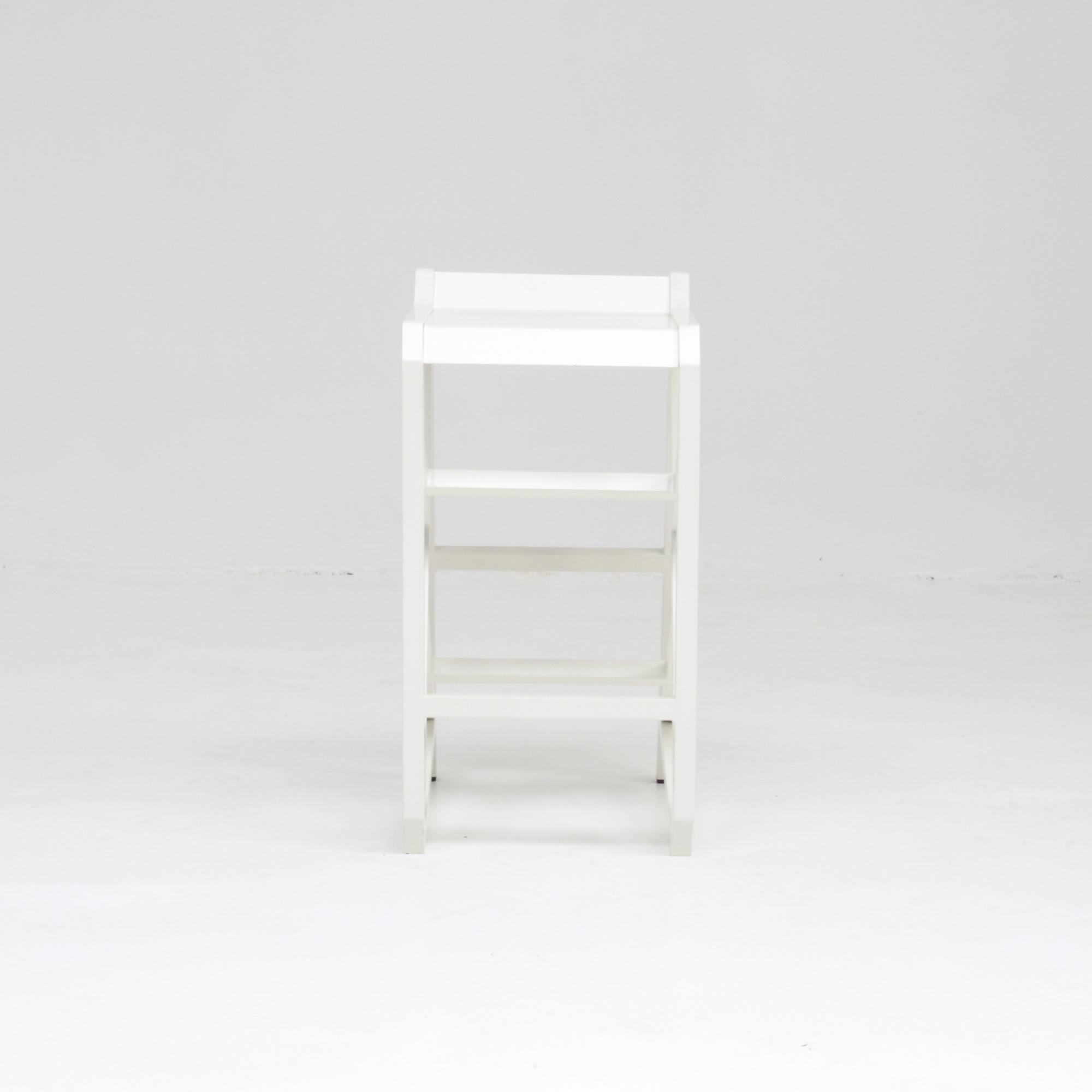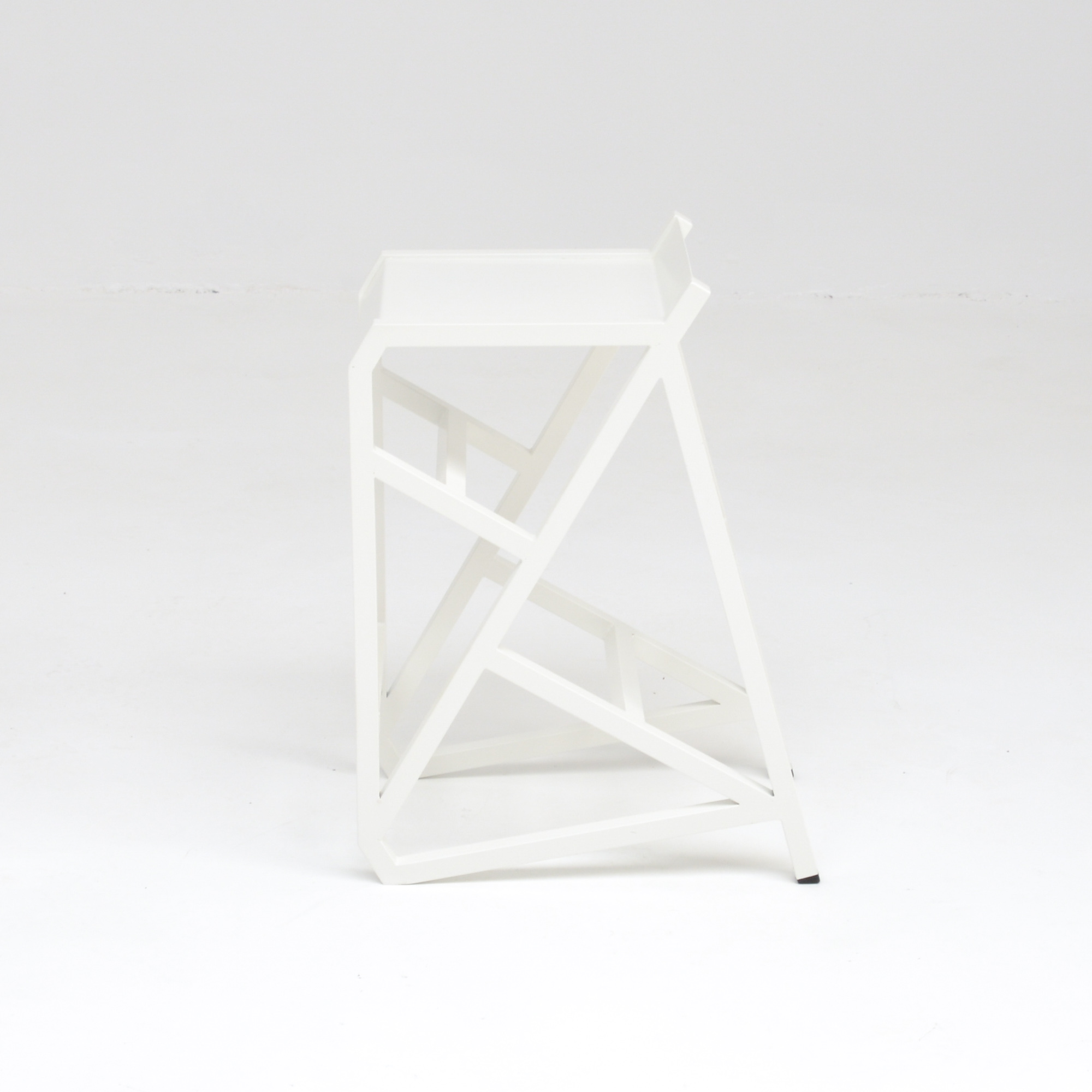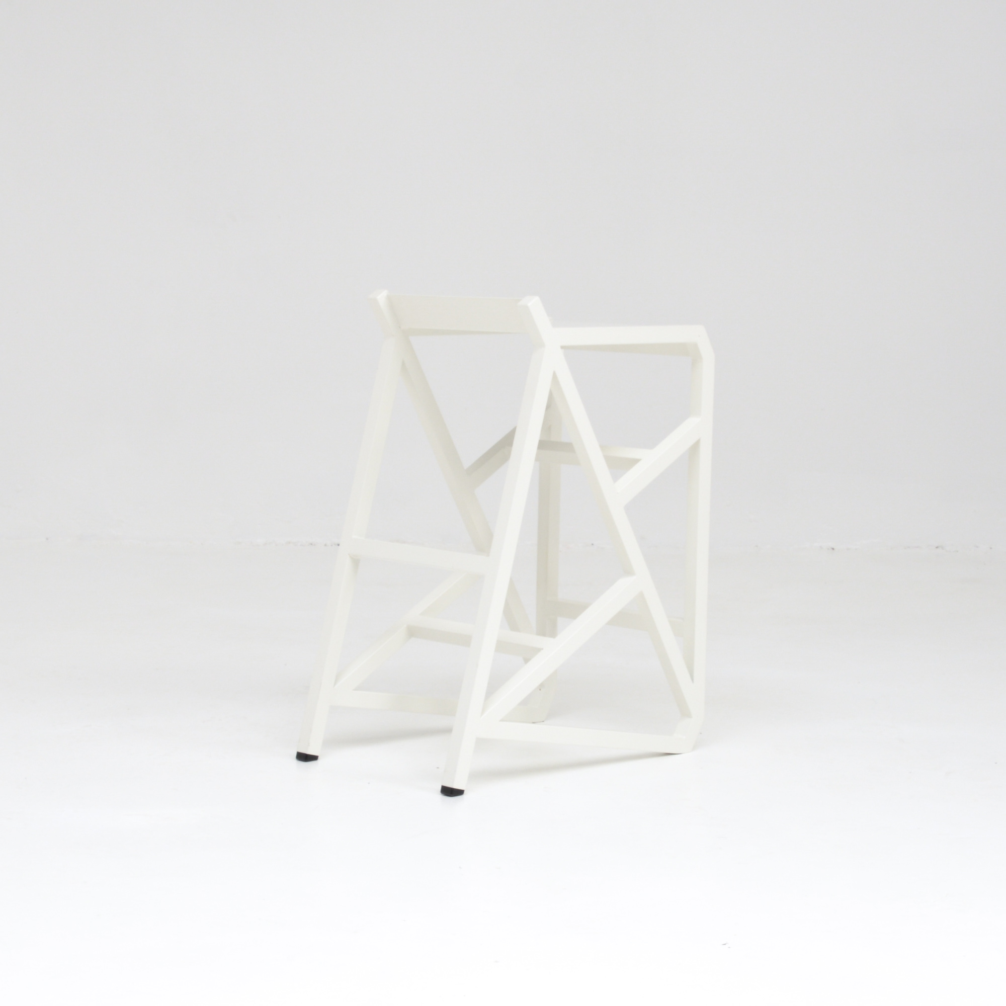 The stool is a unique piece made of white lacquered metal.