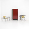It is a classic example of mid-century Belgian social furniture design: those cabinets were used in schools and factories.