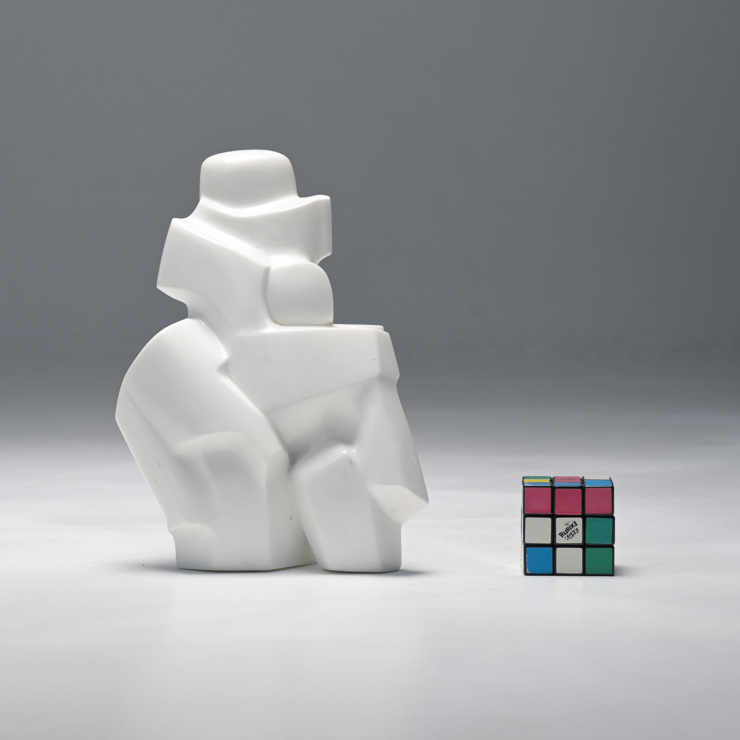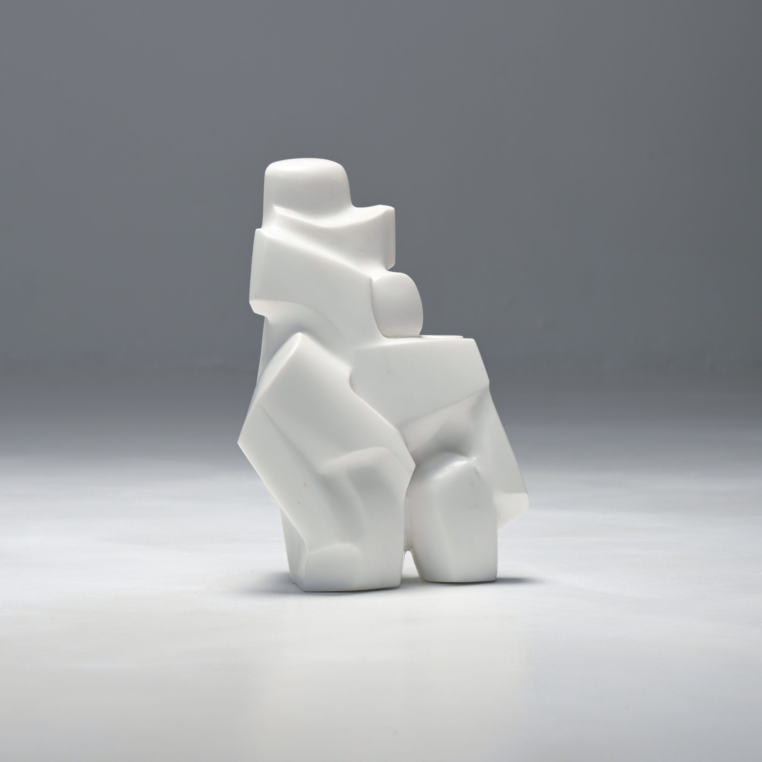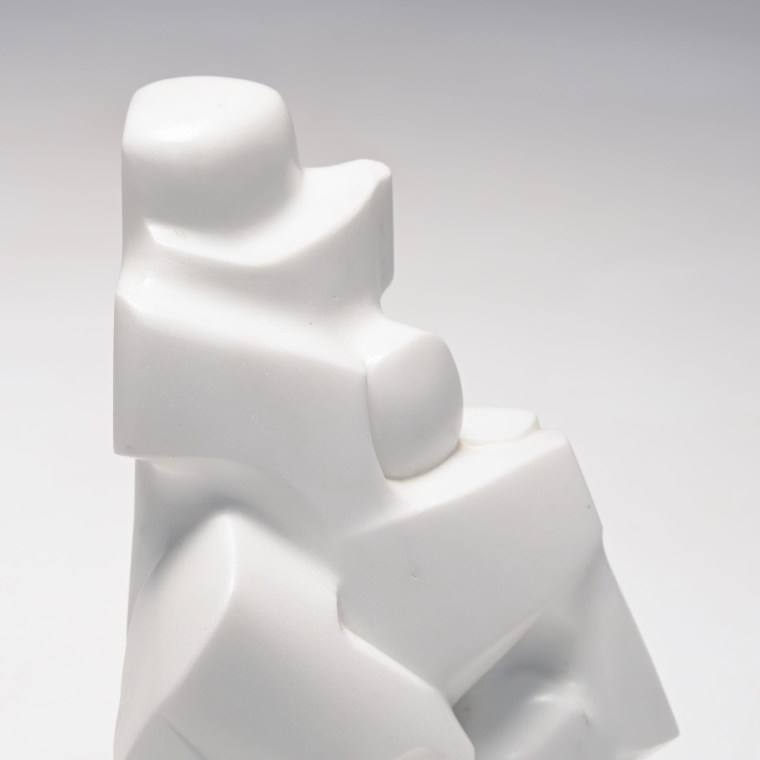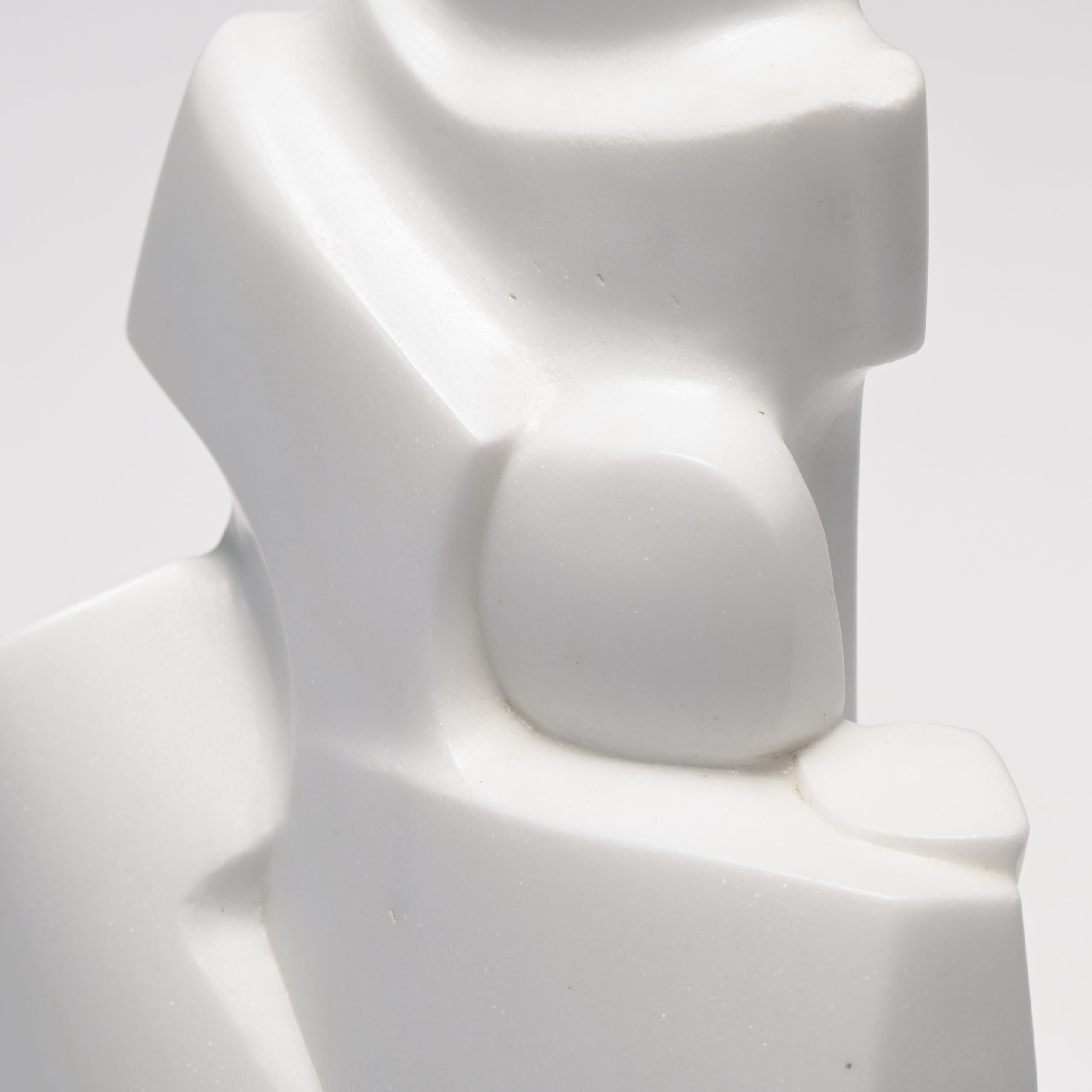 This abstract sculpture in white marble was sculpted ‘en taille directe’ by the Belgian artist Jan Keustermans.
