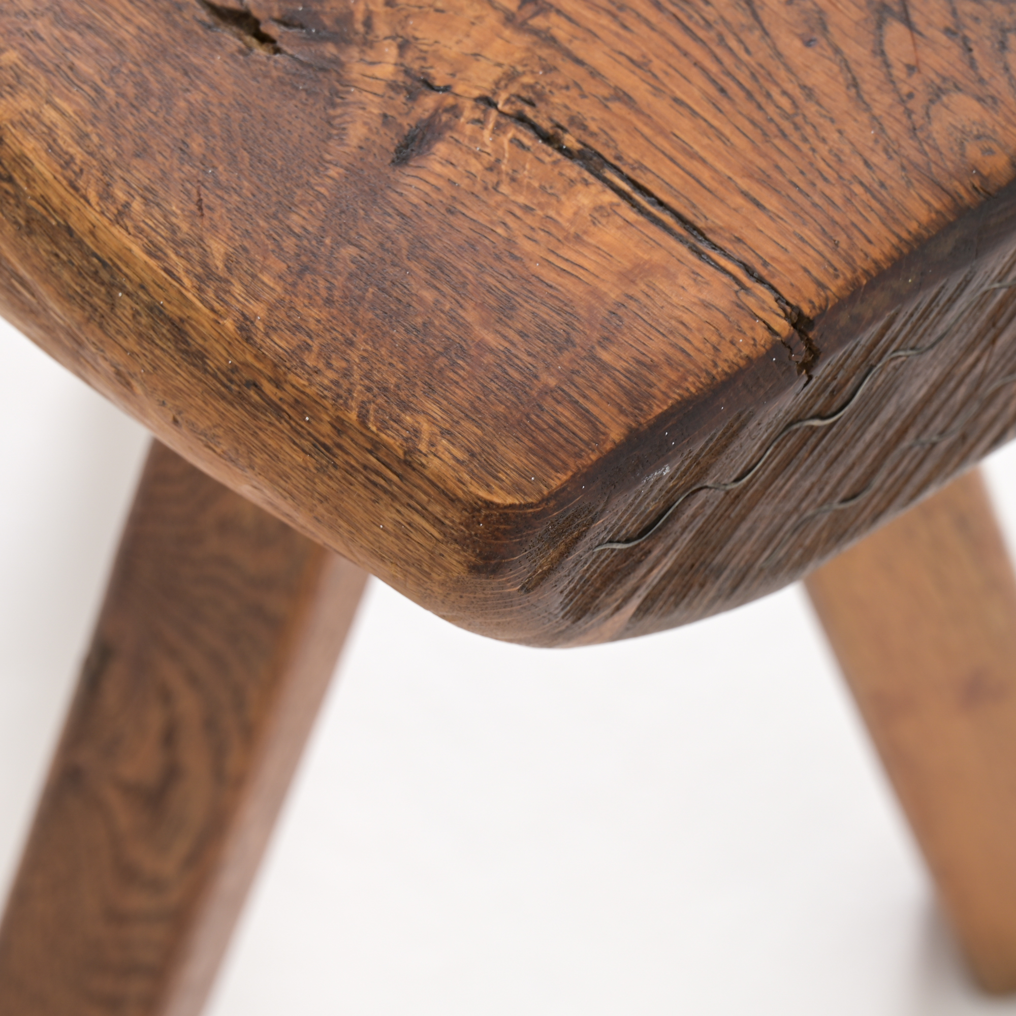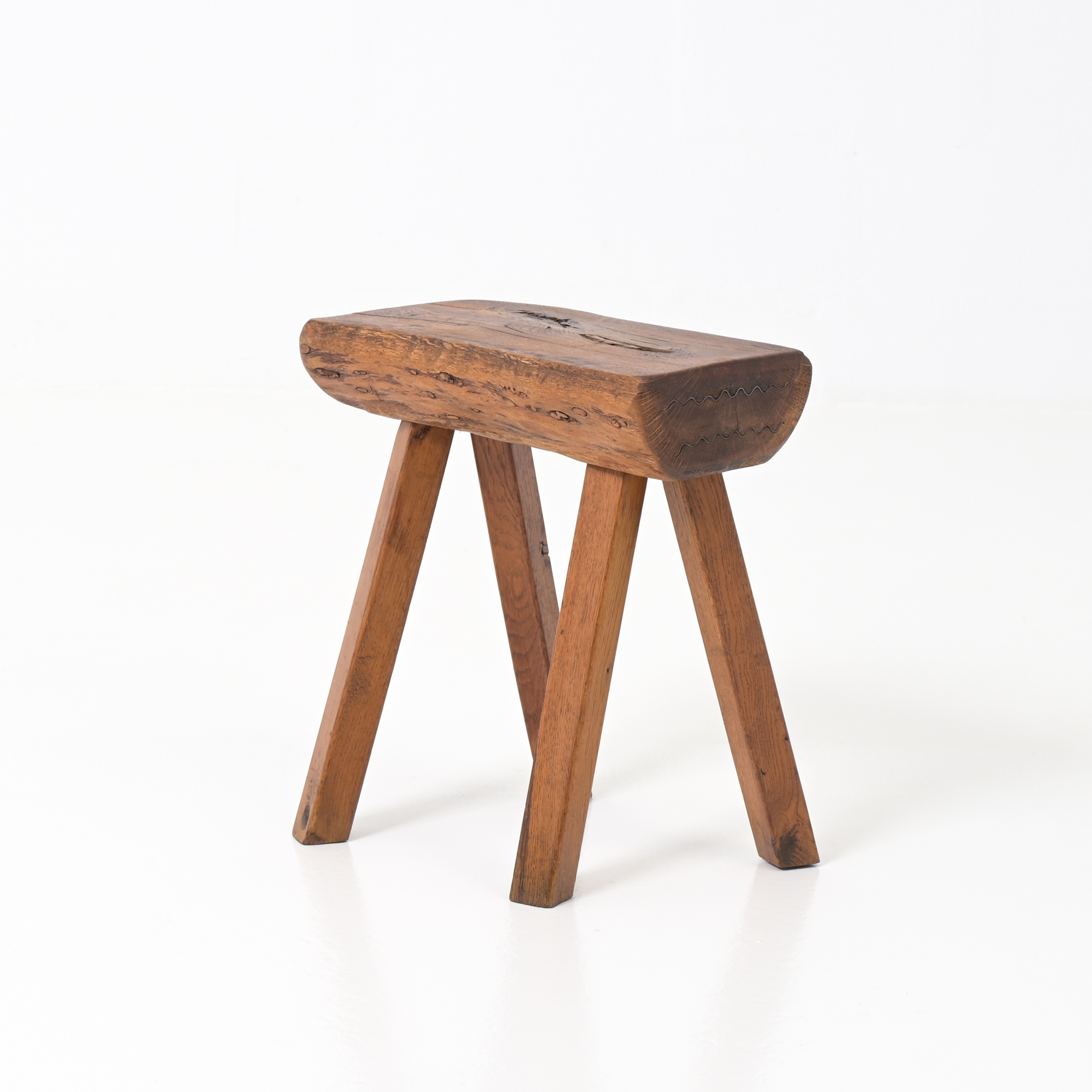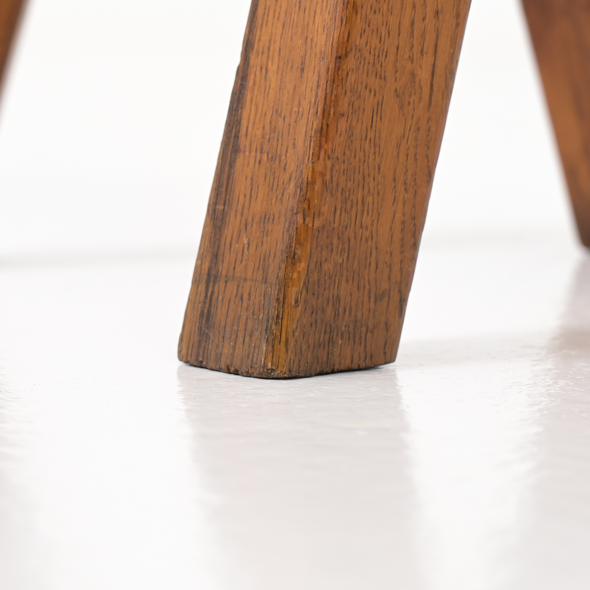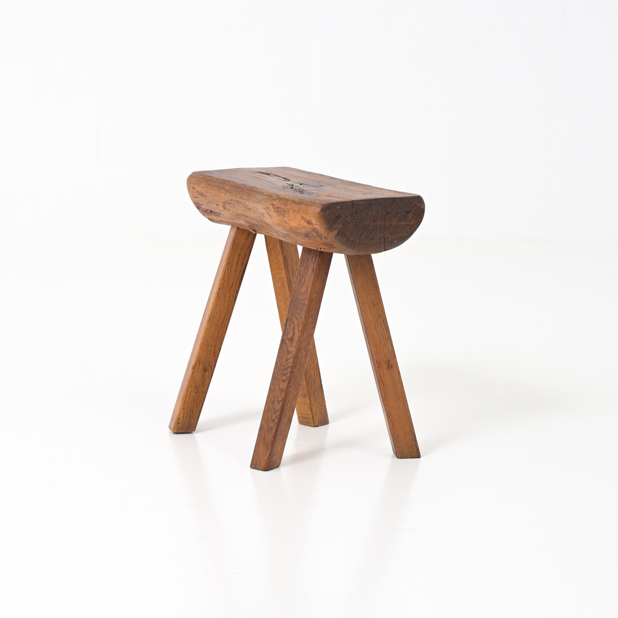 This authentic wooden stool is old and completely made of wood. It was made by Mobichalet and can be dated in the 1950s.