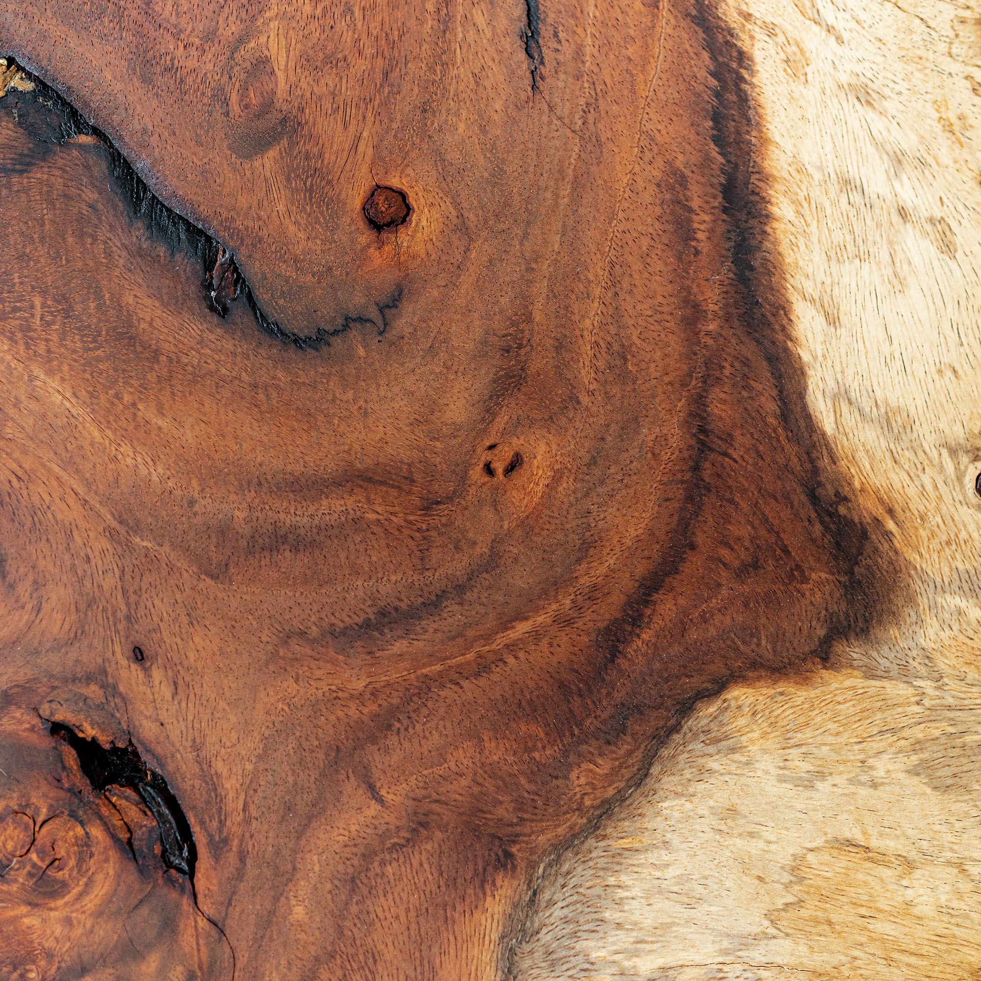 The natural Parota wooden top is made of two pieces of wood. The table is a unique piece.