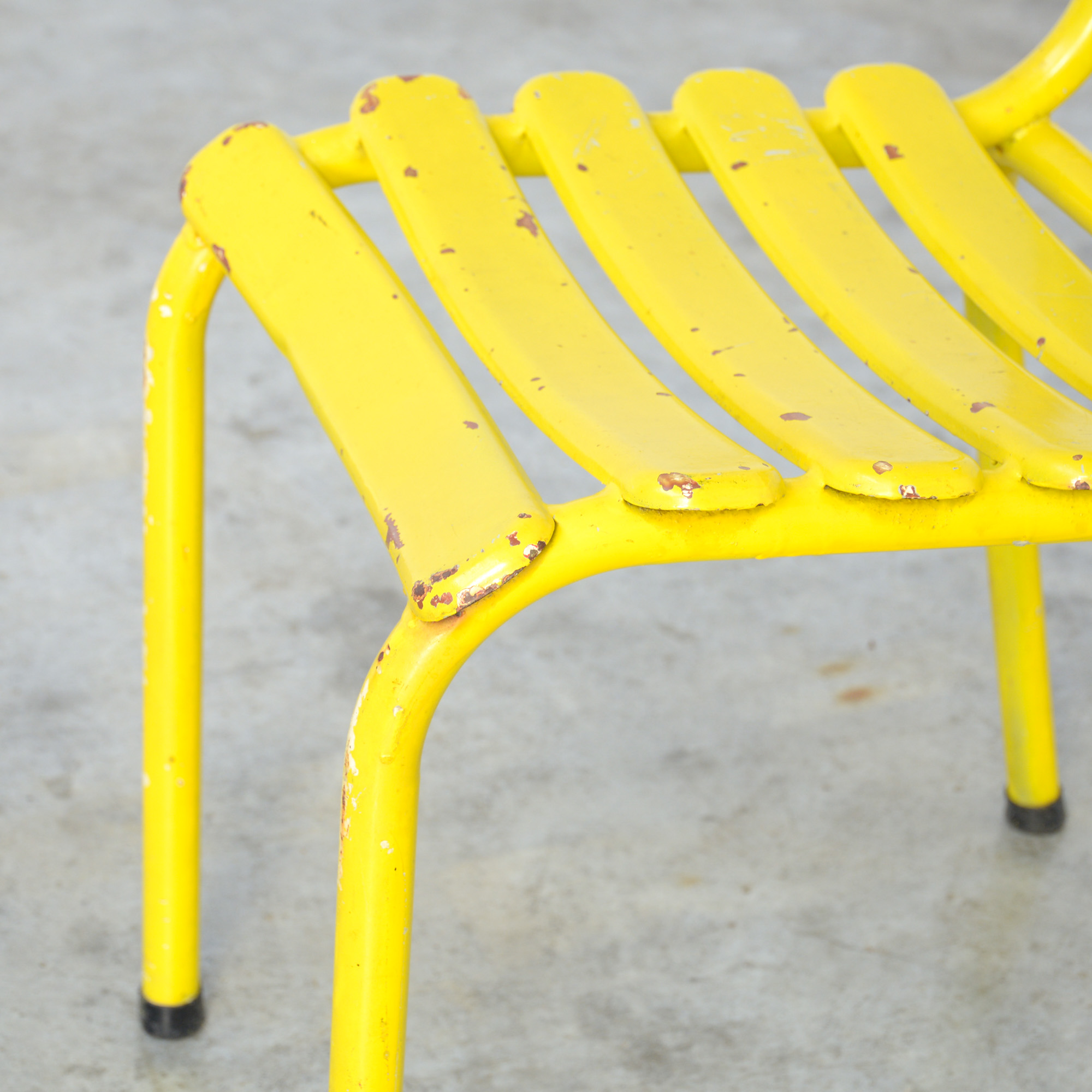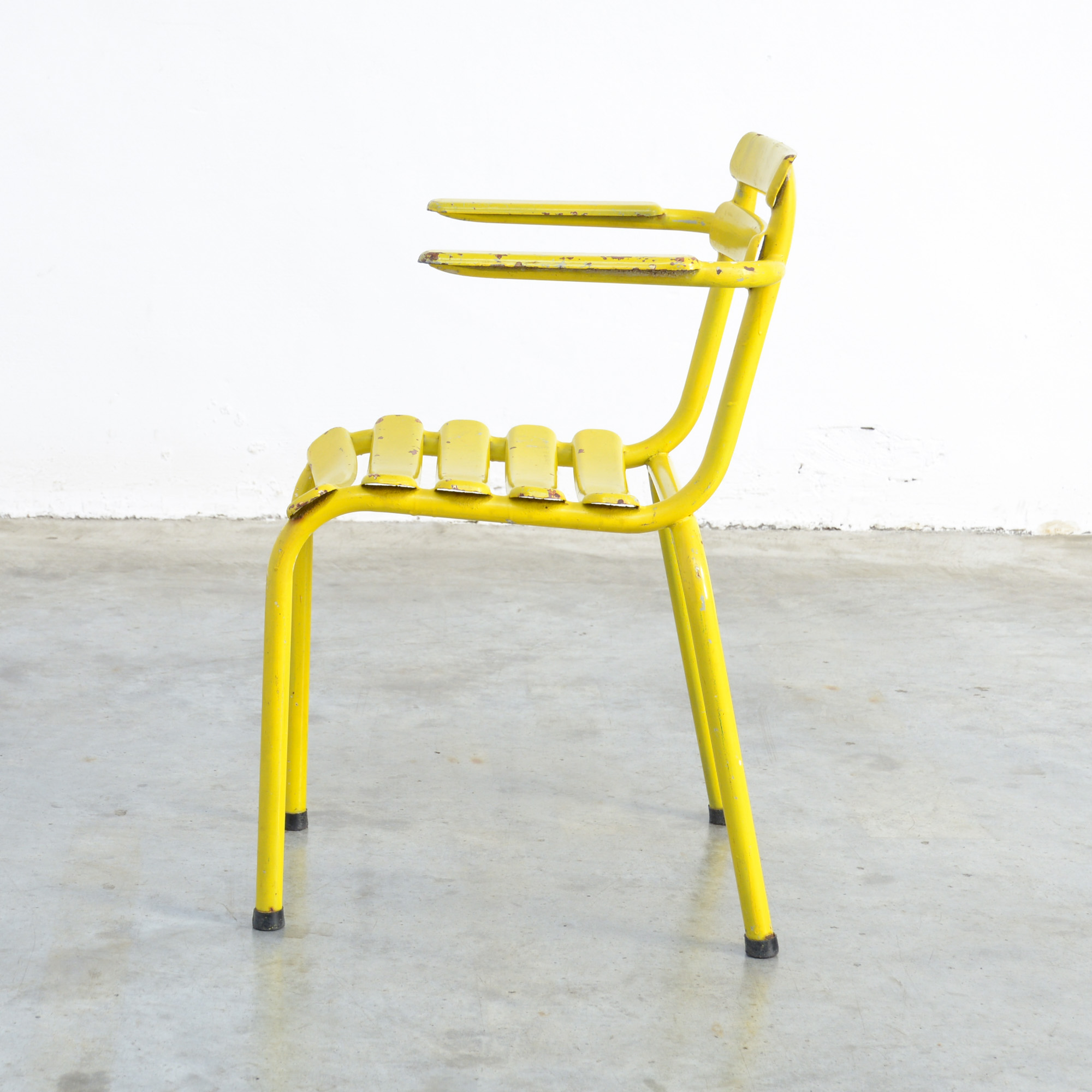 This yellow metal chair can be dated in the 1950s.