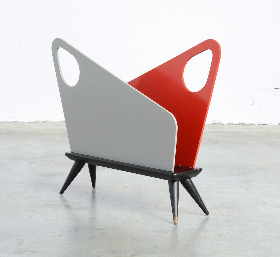 1950s Magazine Rack Bois Manu, Made in Belgium